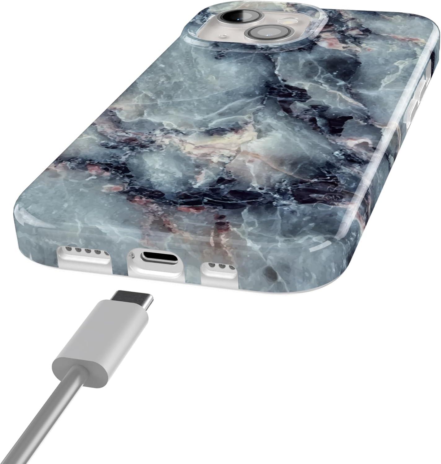 Casely iPhone 15 Case | Hanging Around | Potted Plants Floral | Compatible with MagSafe | Classic Ultra Thin Design(Deep Sea | Blue Marble)