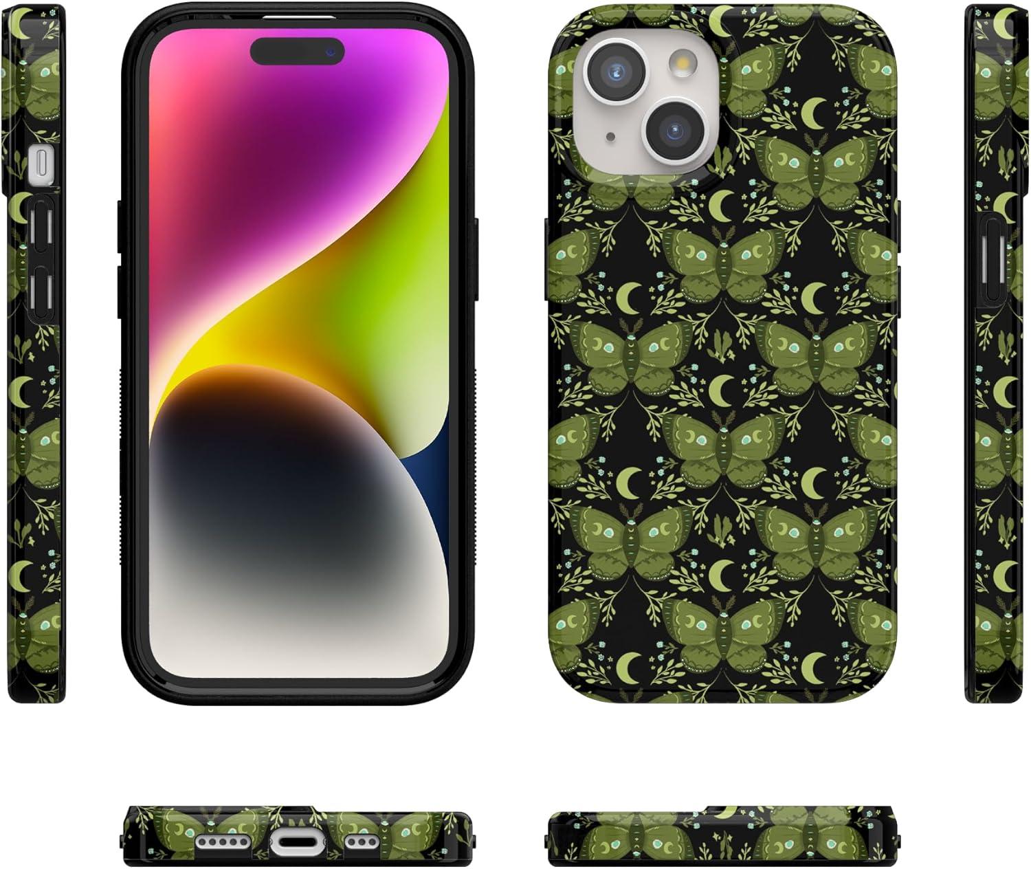 Casely iPhone 15 Case | Hanging Around | Potted Plants Floral | Compatible with MagSafe | Classic Ultra Thin Design(Mystic Moths | Green Twilight)
