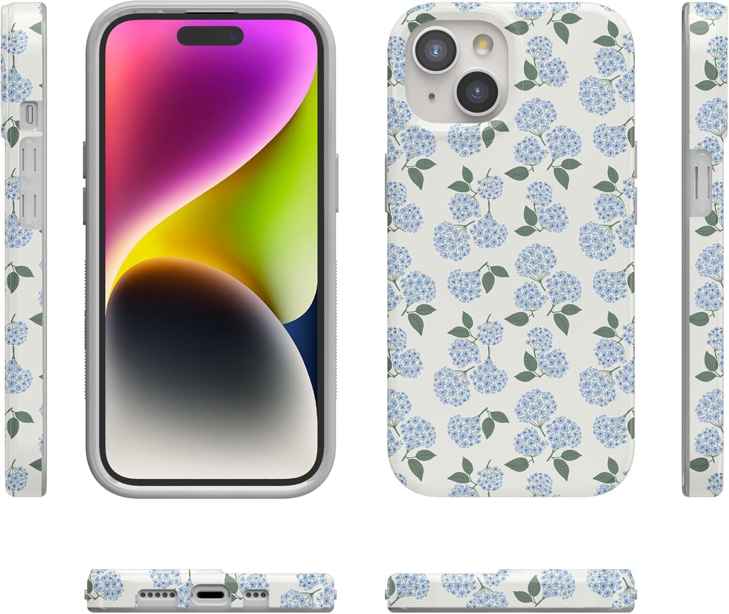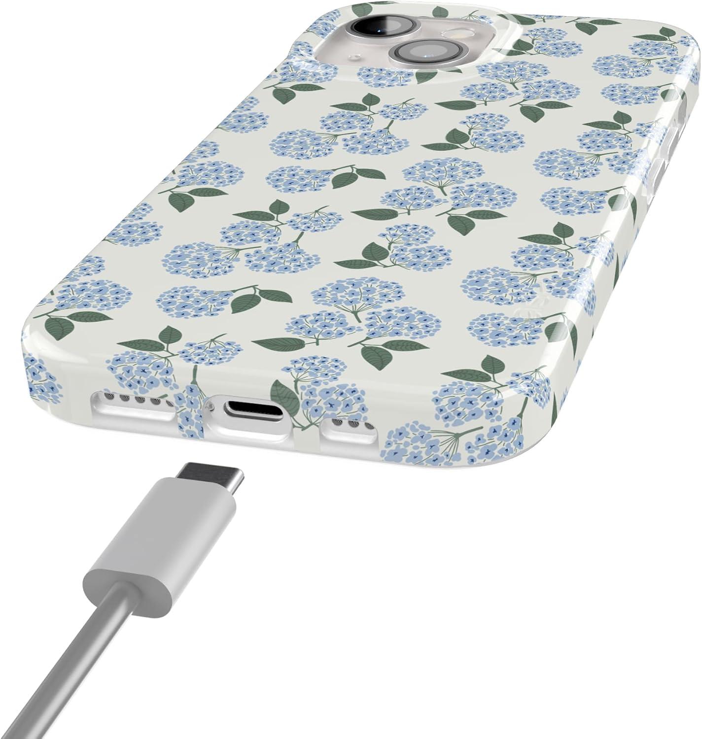 Casely iPhone 15 Case | Hanging Around | Potted Plants Floral | Compatible with MagSafe | Classic Ultra Thin Design(Nantucket Cottage | Blue Hydrangea)