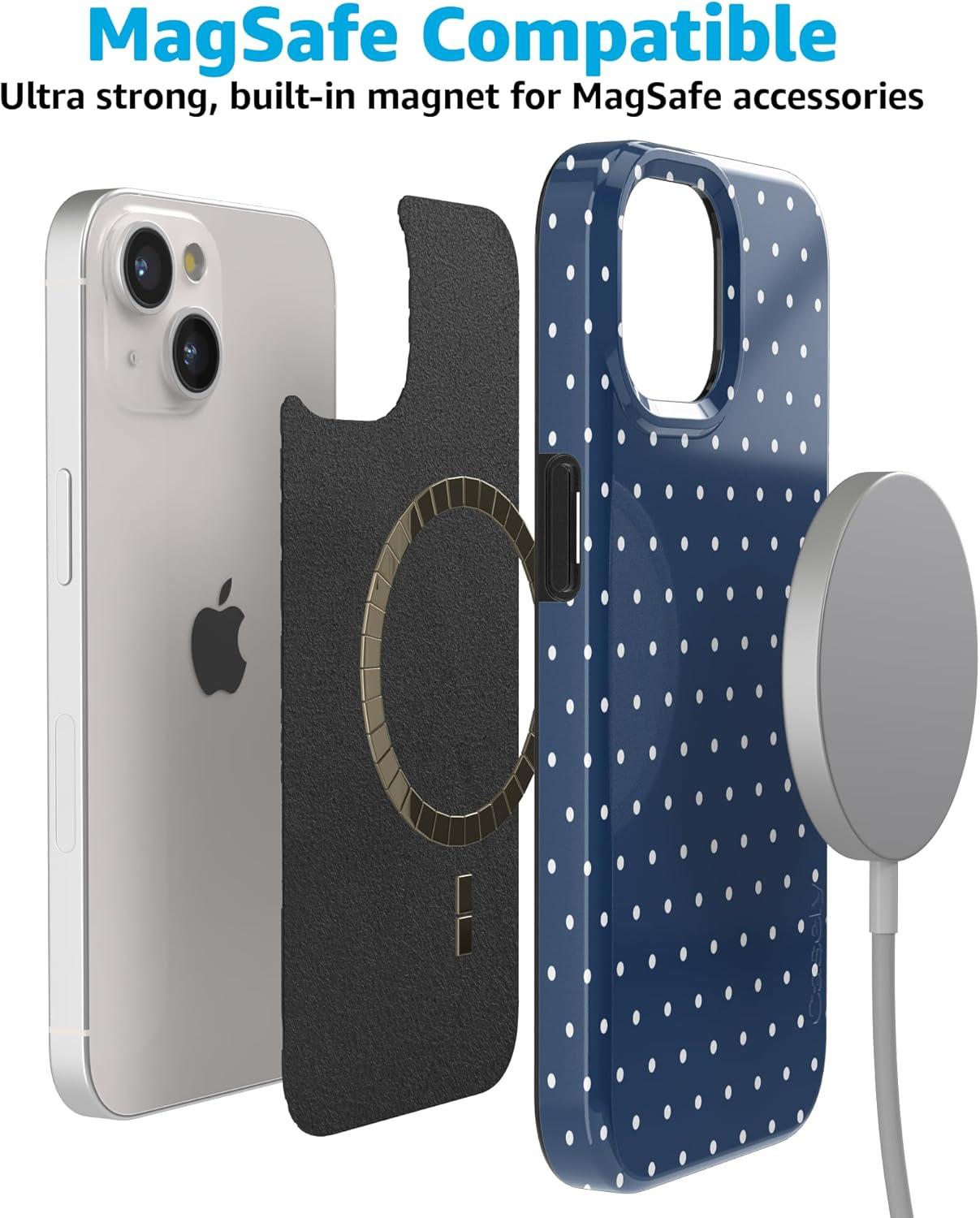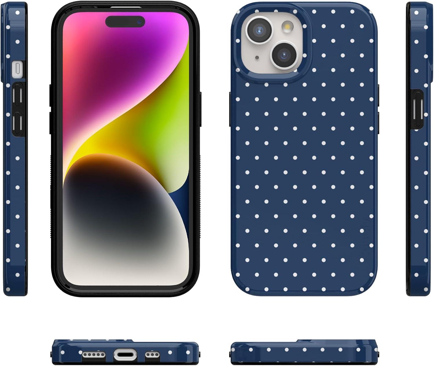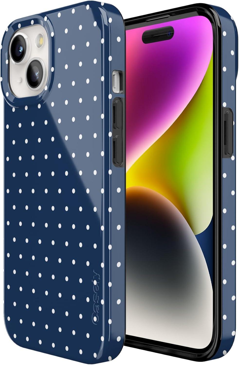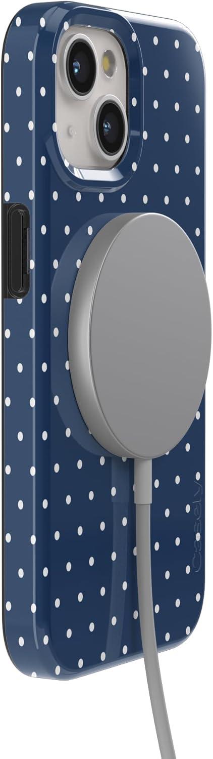 Casely iPhone 15 Case | Hanging Around | Potted Plants Floral | Compatible with MagSafe | Classic Ultra Thin Design(On the Dot | Navy Polka Dot)