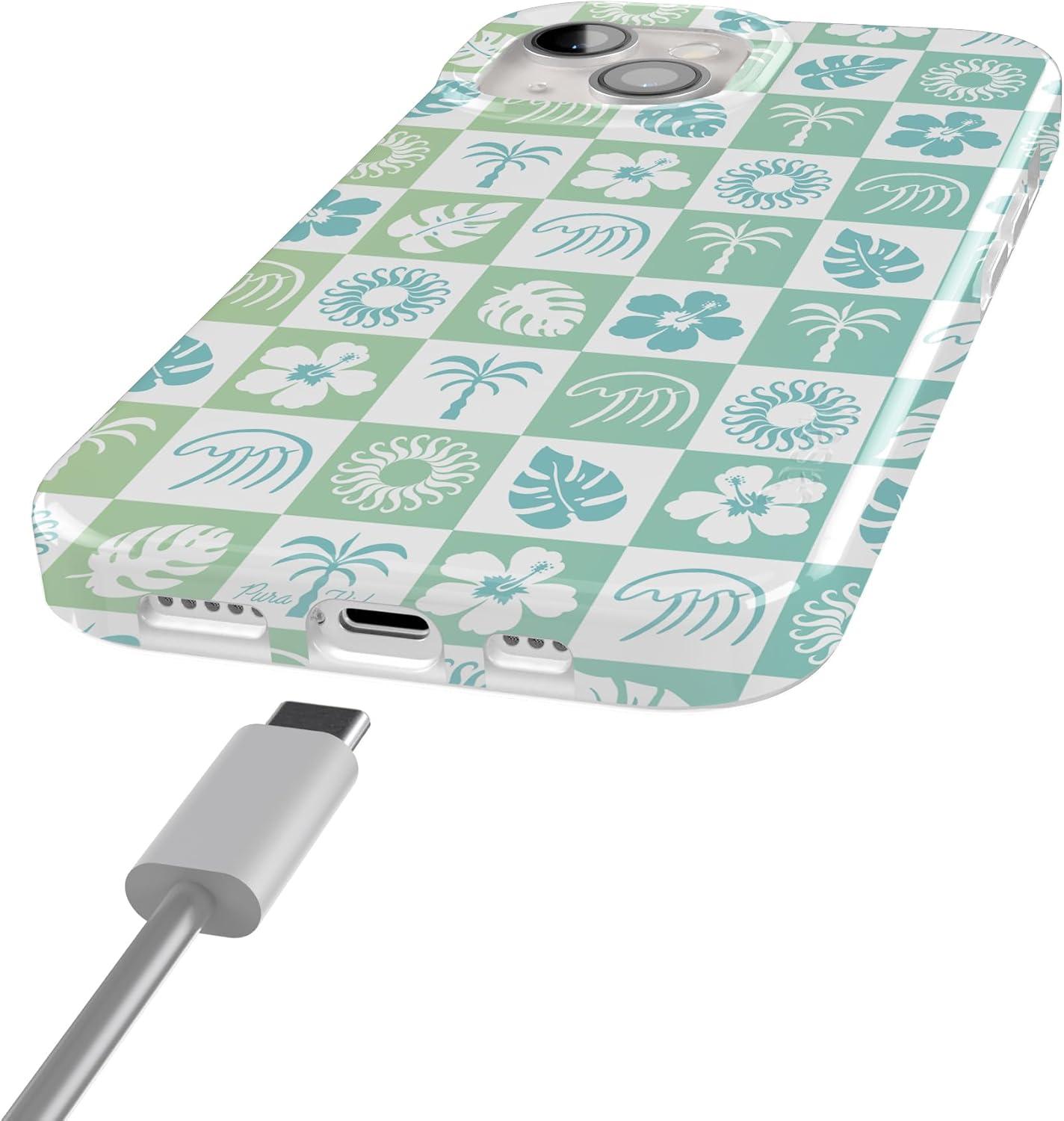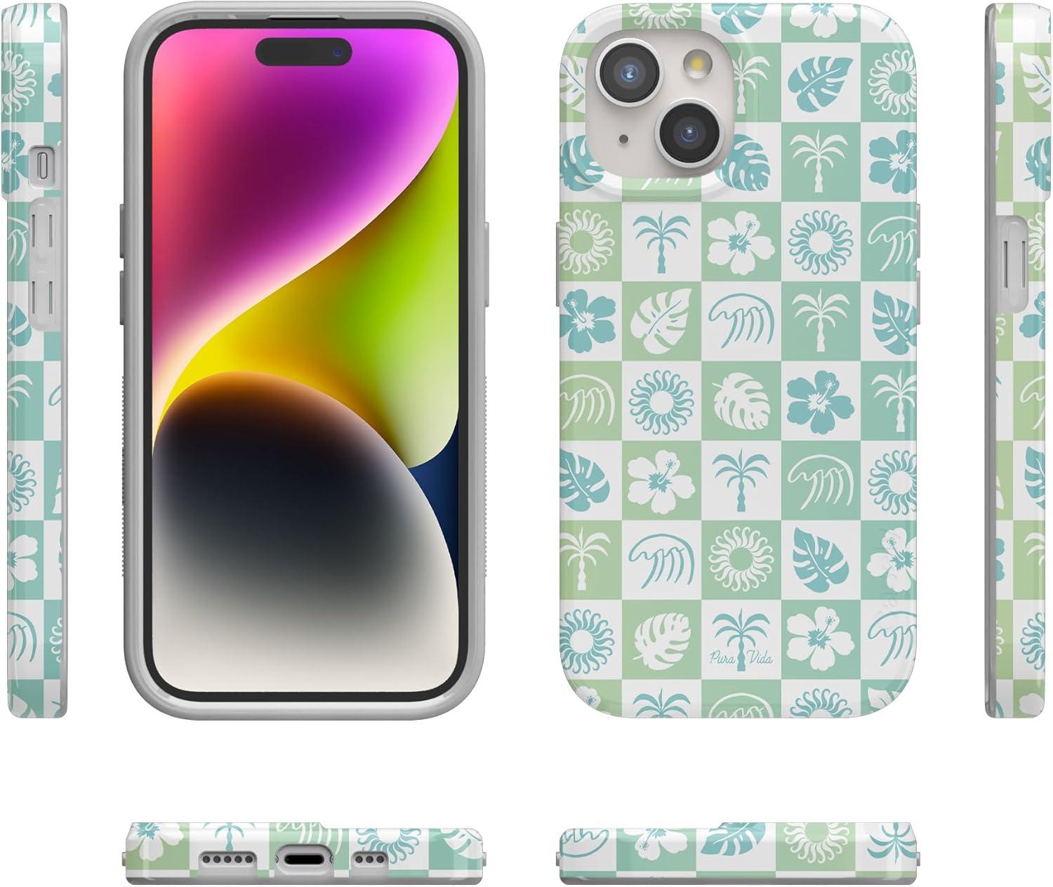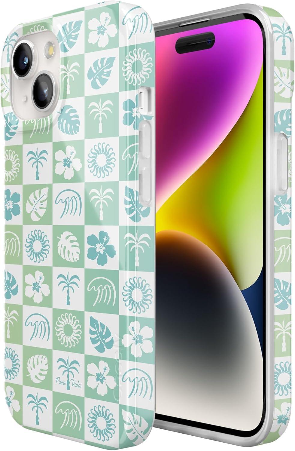Casely iPhone 15 Case | Hanging Around | Potted Plants Floral | Compatible with MagSafe | Classic Ultra Thin Design(Pura Vida | Coastal Checkers)