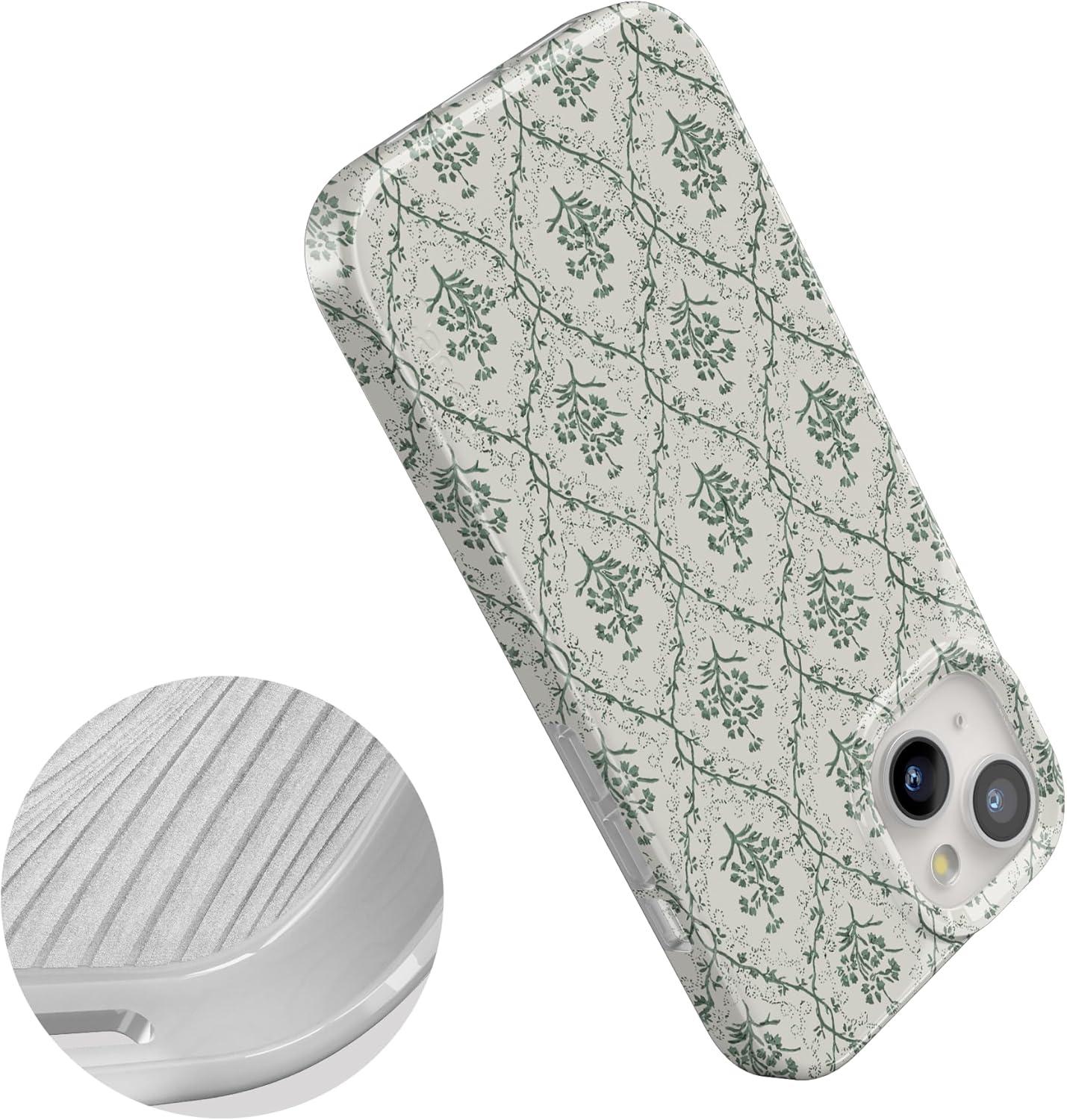 Casely iPhone 15 Case | Hanging Around | Potted Plants Floral | Compatible with MagSafe | Classic Ultra Thin Design(Sage Tapestry | Floral Vines)