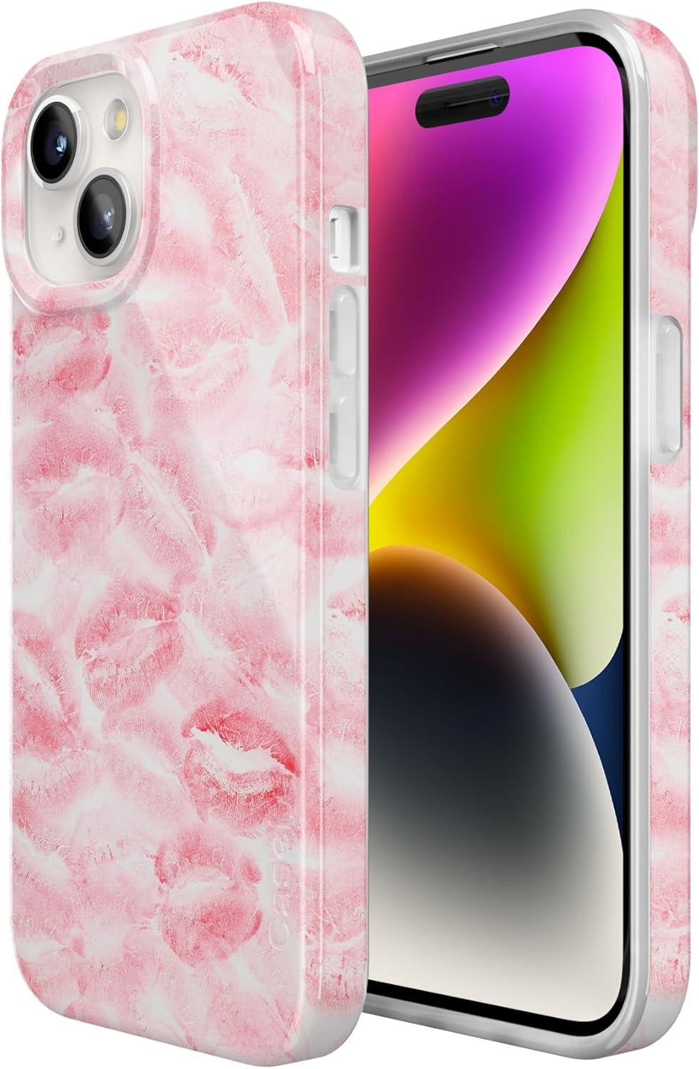 Casely iPhone 15 Case | Hanging Around | Potted Plants Floral | Compatible with MagSafe | Classic Ultra Thin Design(Sealed with a Kiss | Pink Lipstick)