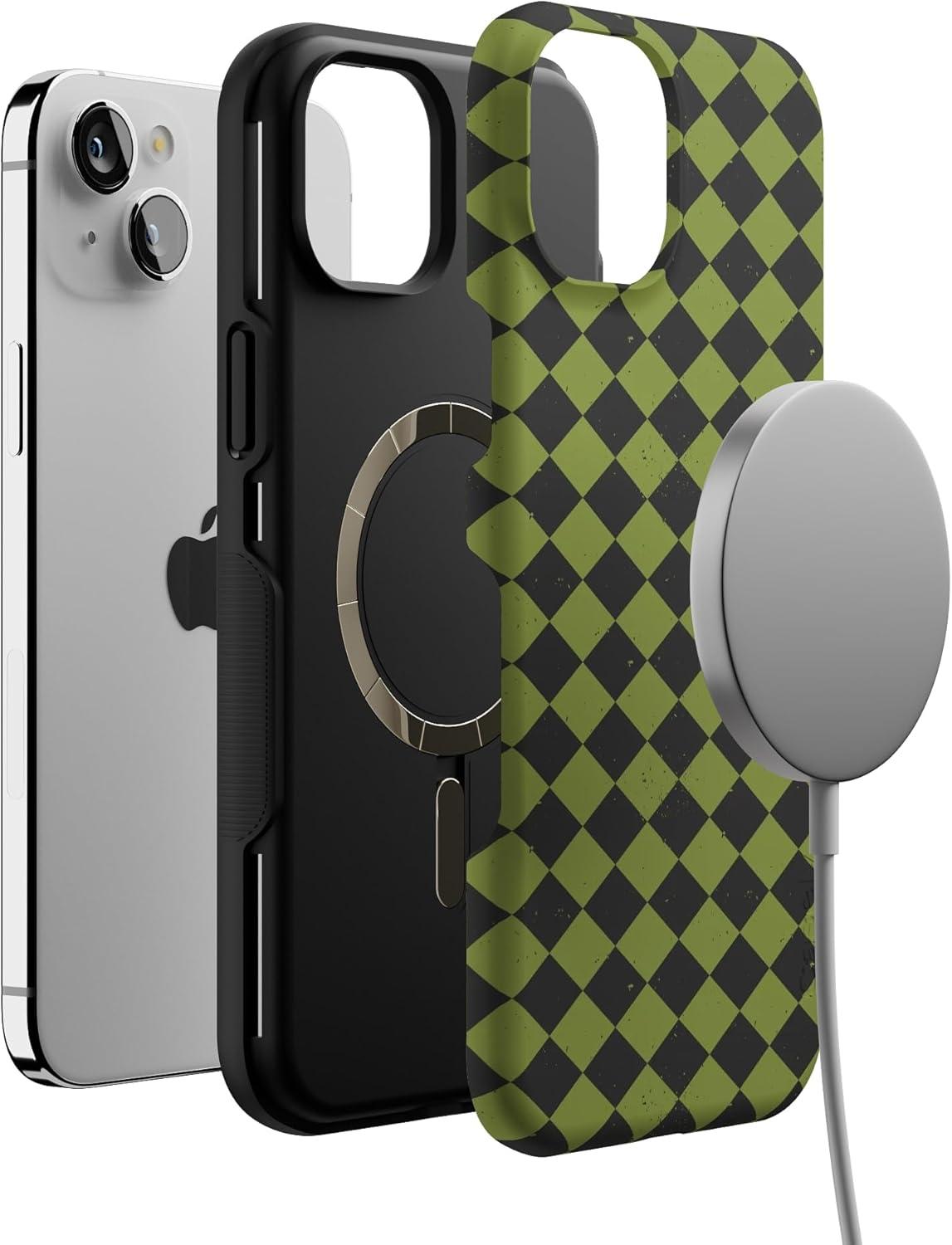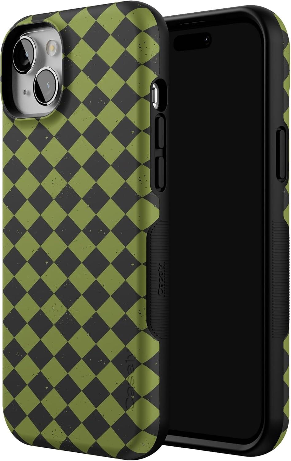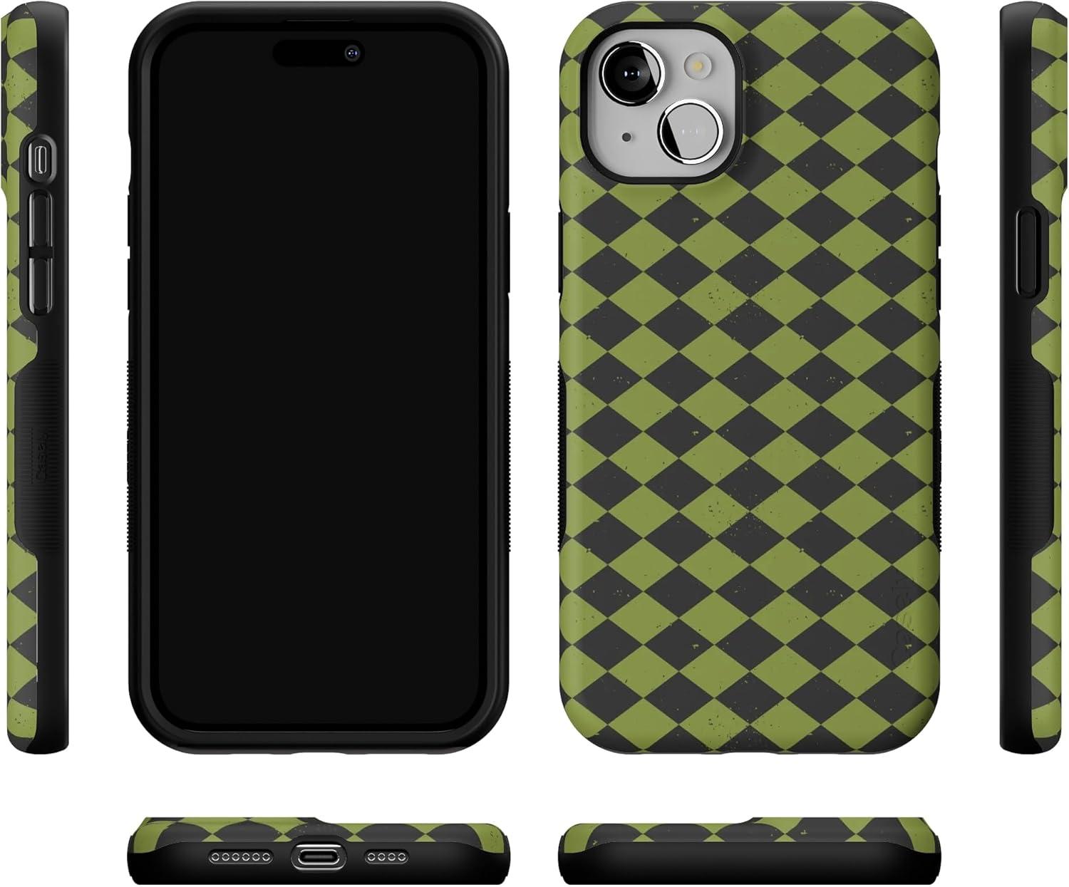 Casely iPhone 15 Case | Harlequin Wicked Diamond | Black and Green | Bold Protective Design | MagSafe Compatible Design