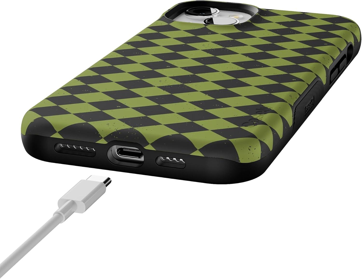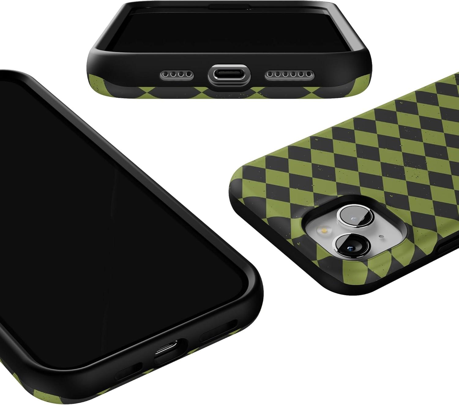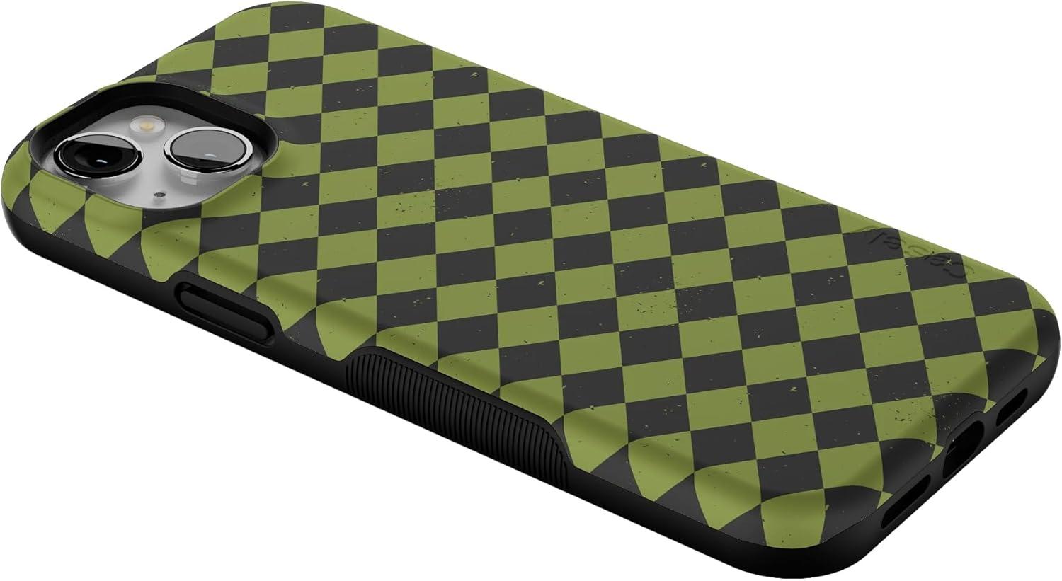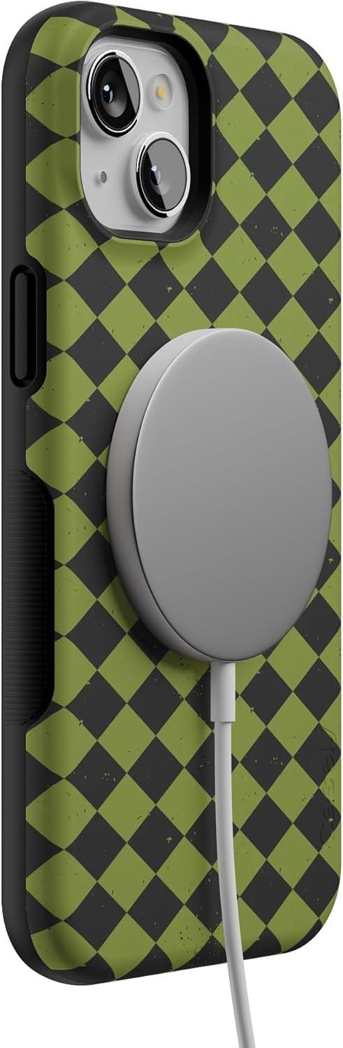 Casely iPhone 15 Case | Harlequin Wicked Diamond | Black and Green | Bold Protective Design | MagSafe Compatible Design