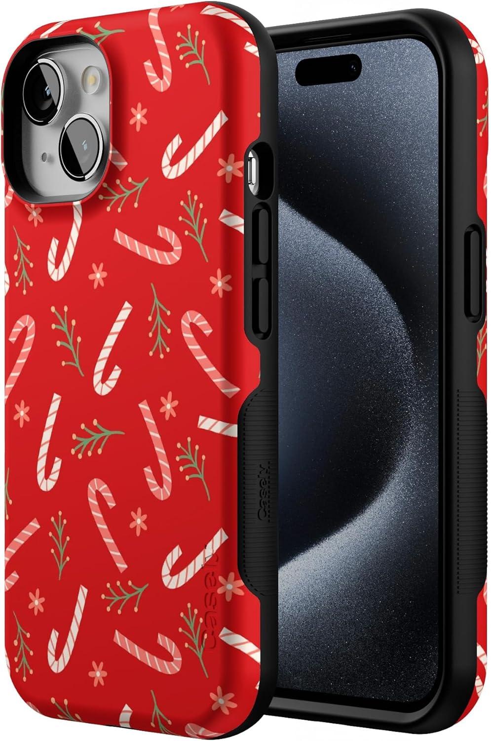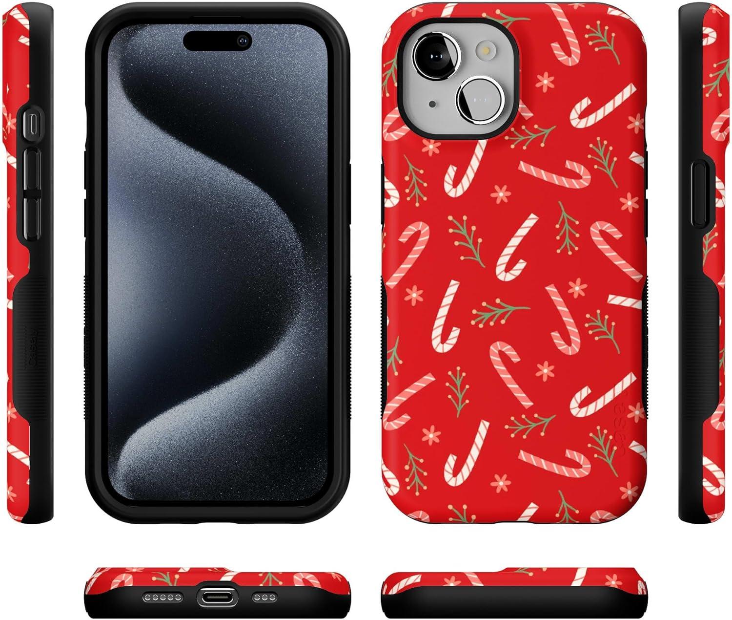 Casely iPhone 15 Case | Peppermint Kiss | Candy Cane | Bold Protective Design | MagSafe Compatible Design