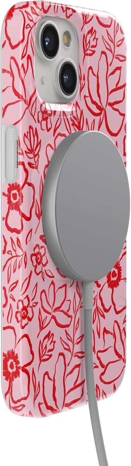 Casely iPhone 15 Case | Powder Pups | Dog Sled | Compatible with MagSafe | Classic Ultra Thin Design(Blush Garden | Floral Doodle)