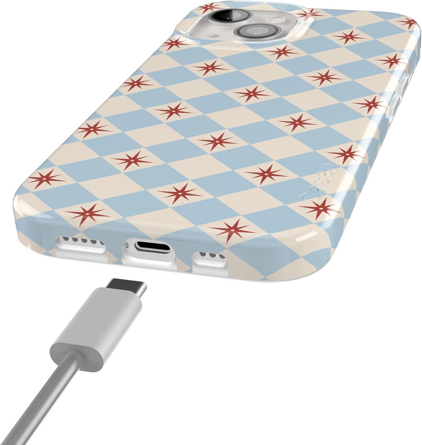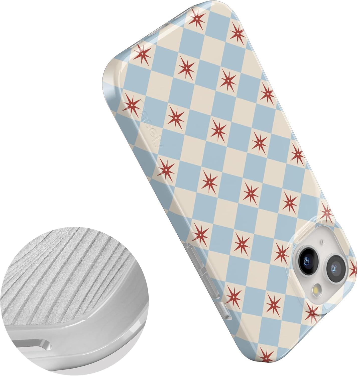 Casely iPhone 15 Case | Powder Pups | Dog Sled | Compatible with MagSafe | Classic Ultra Thin Design(Chelsea Checker | Starlight Tiles)