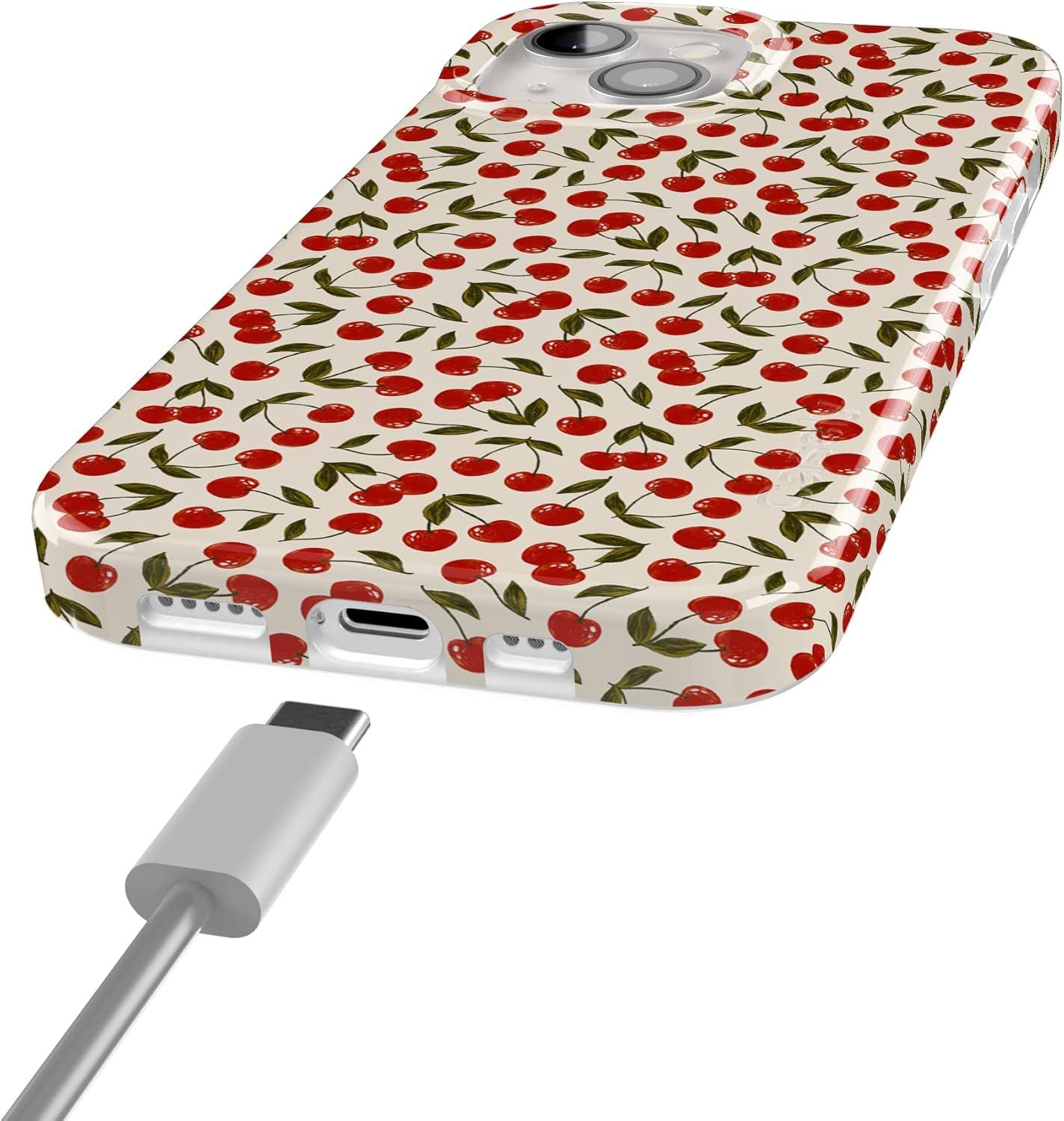 Casely iPhone 15 Case | Powder Pups | Dog Sled | Compatible with MagSafe | Classic Ultra Thin Design(Cherry on Top | Red Cherries)