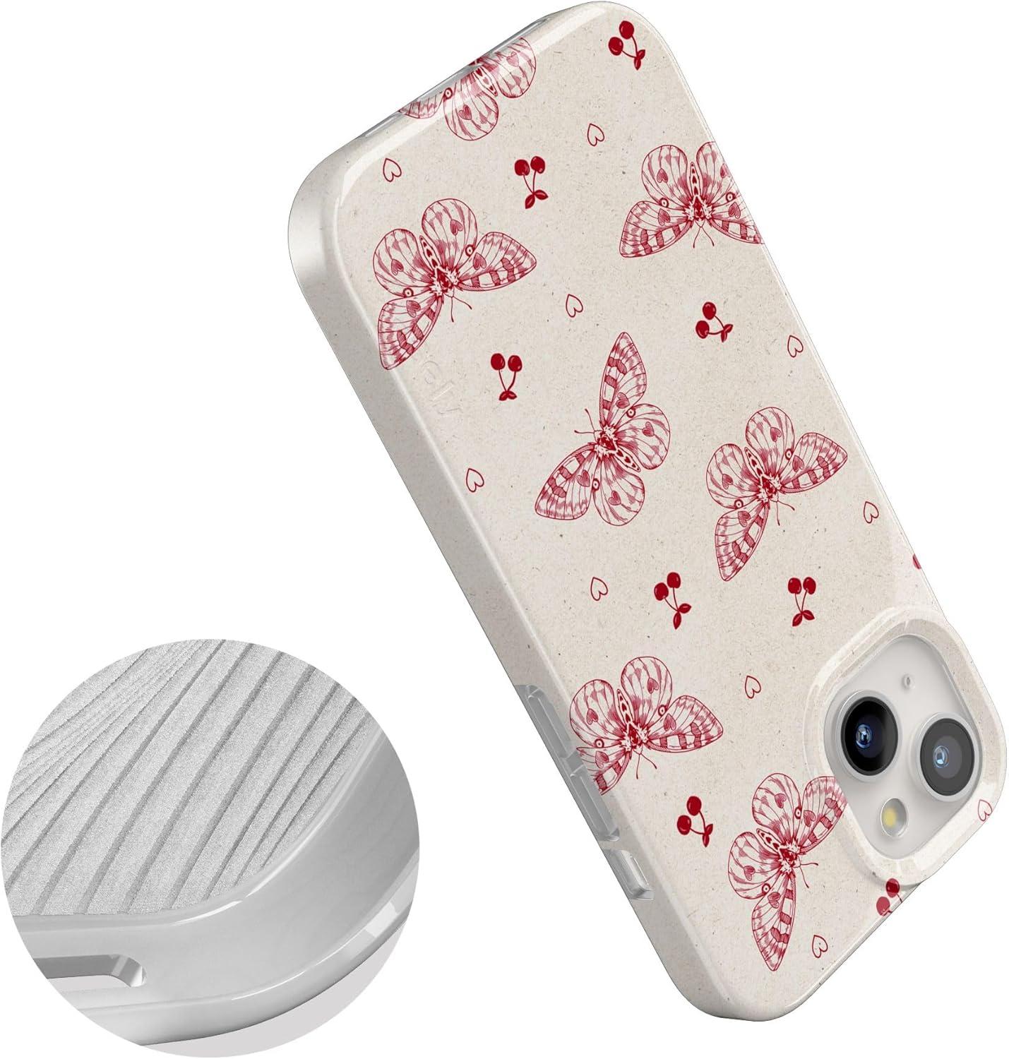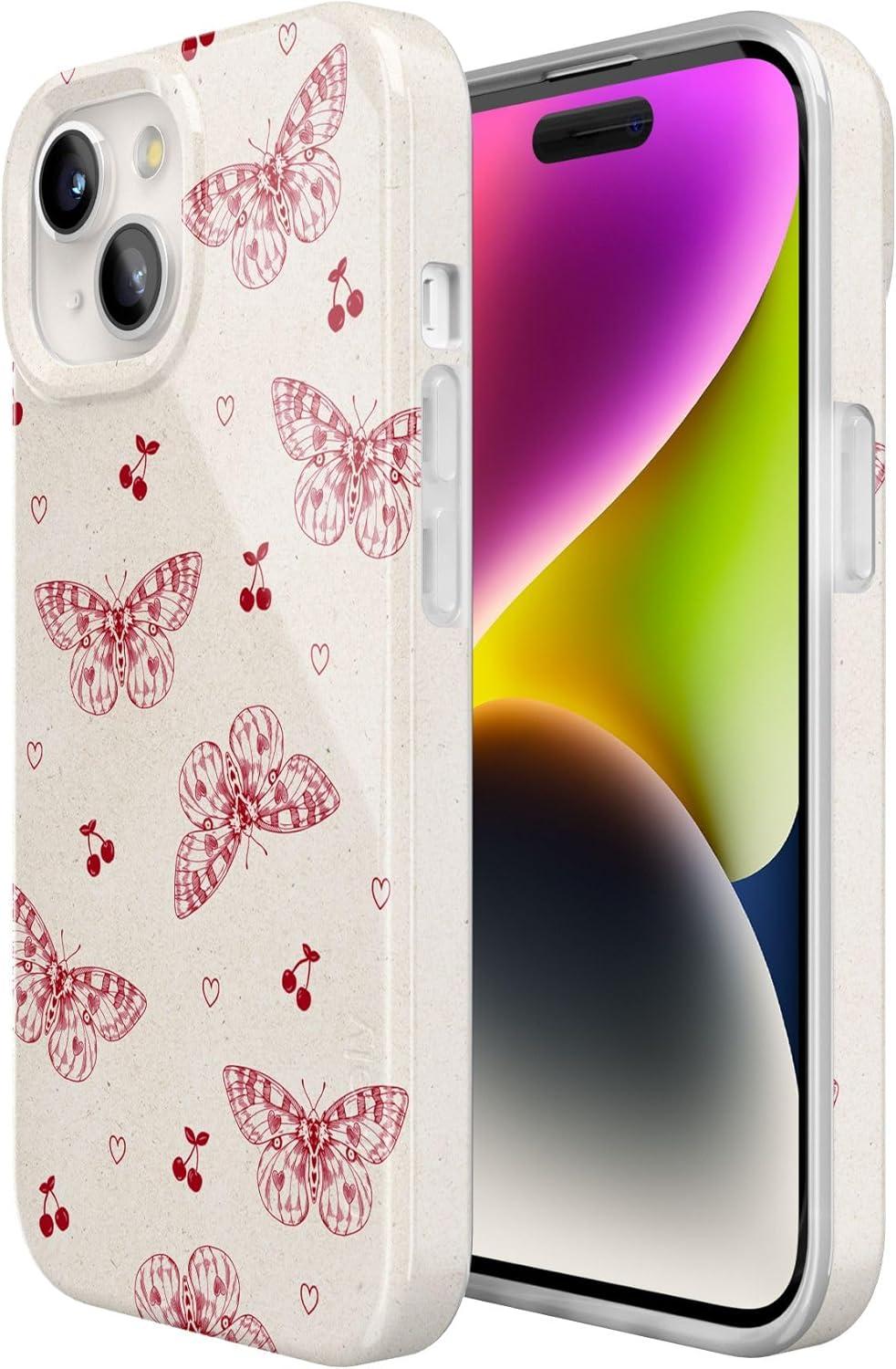 Casely iPhone 15 Case | Powder Pups | Dog Sled | Compatible with MagSafe | Classic Ultra Thin Design(Heart Flutters | Butterfly)