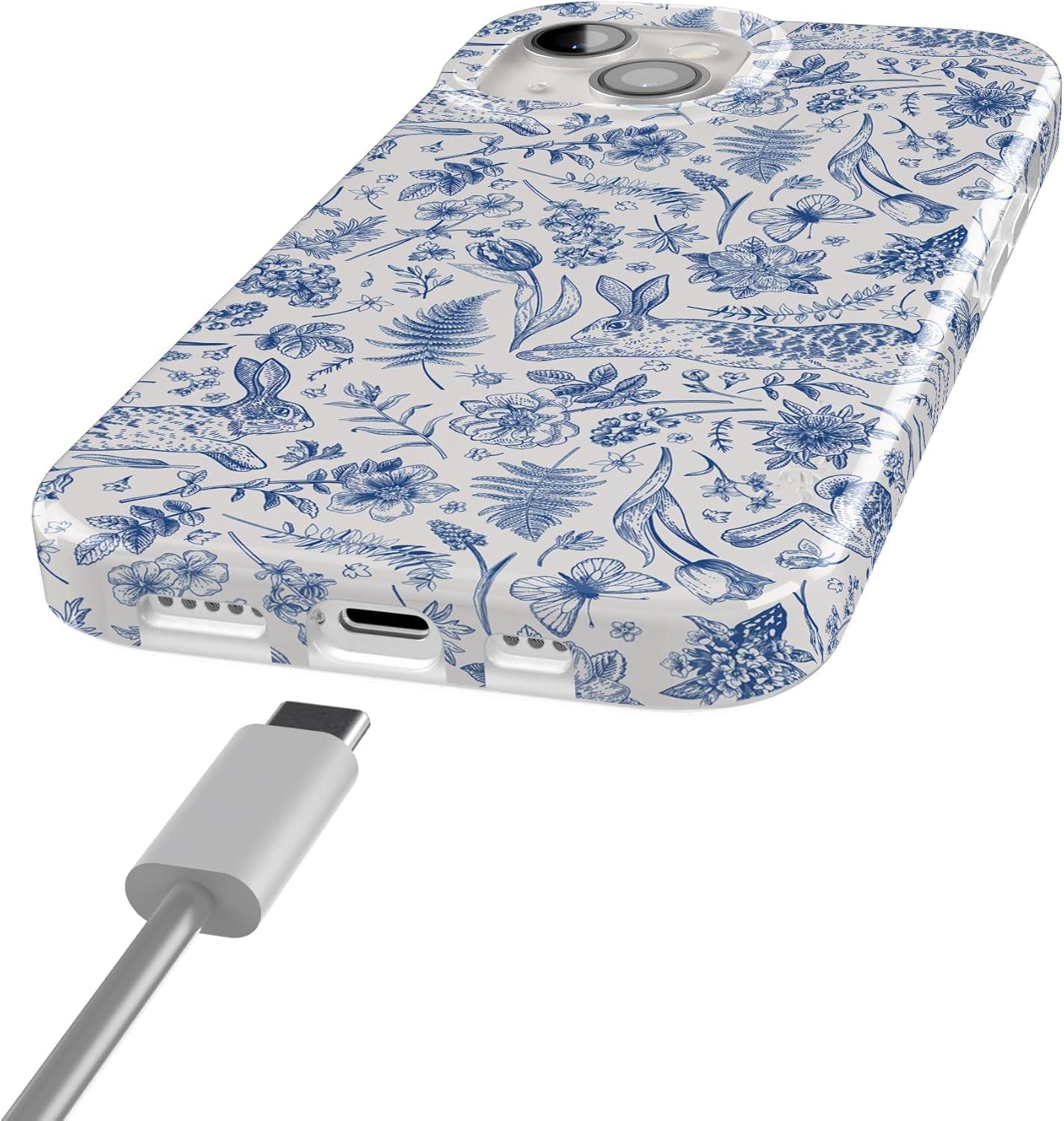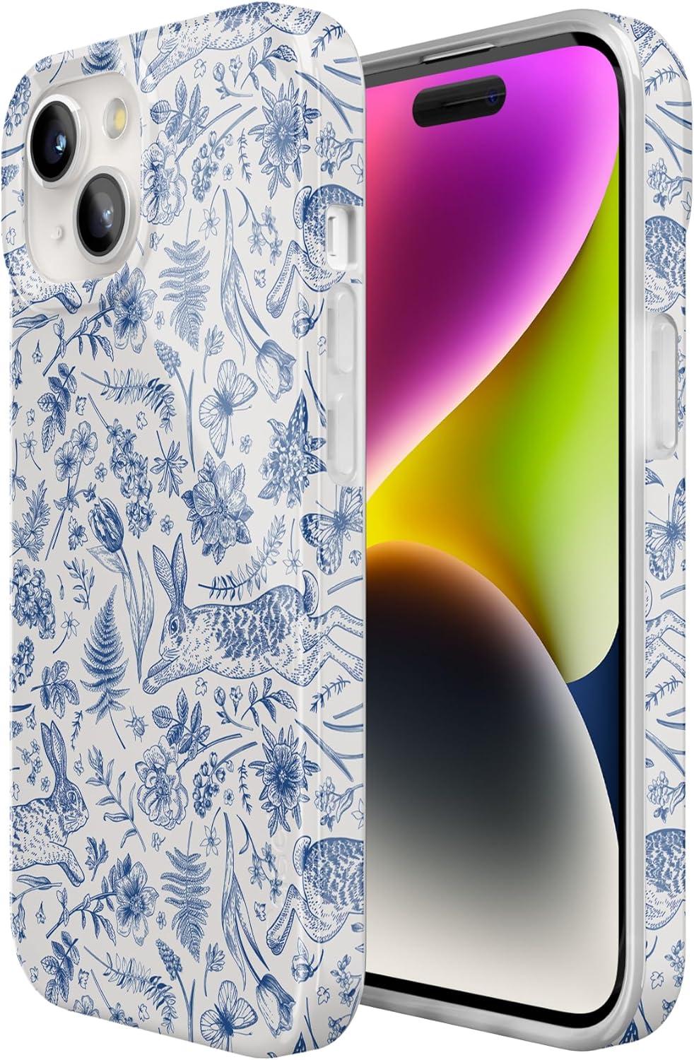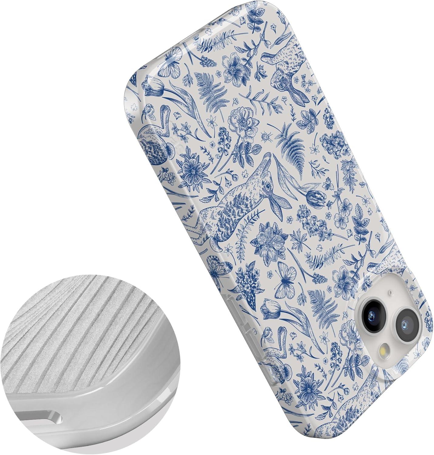 Casely iPhone 15 Case | Powder Pups | Dog Sled | Compatible with MagSafe | Classic Ultra Thin Design(Hop & Bloom | Bunny Toile)