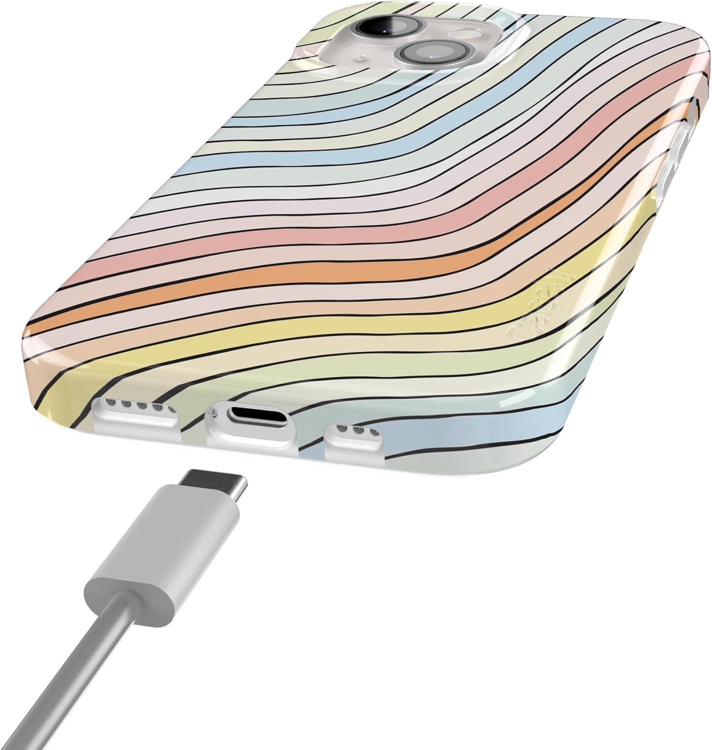 Casely iPhone 15 Case | Powder Pups | Dog Sled | Compatible with MagSafe | Classic Ultra Thin Design(Ride The Wave | Pastel Rainbow Lined)