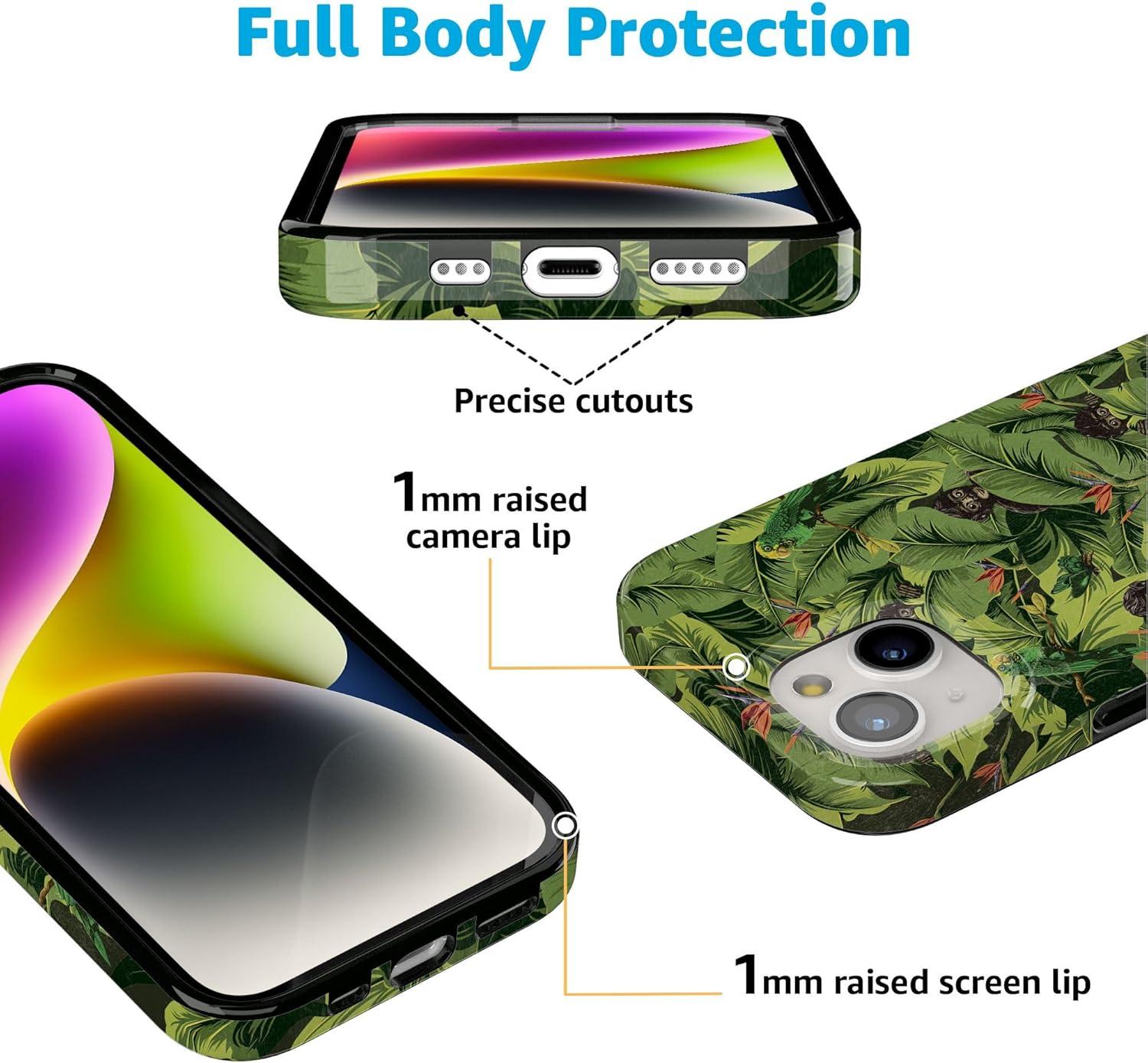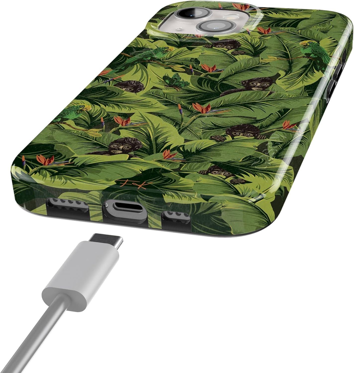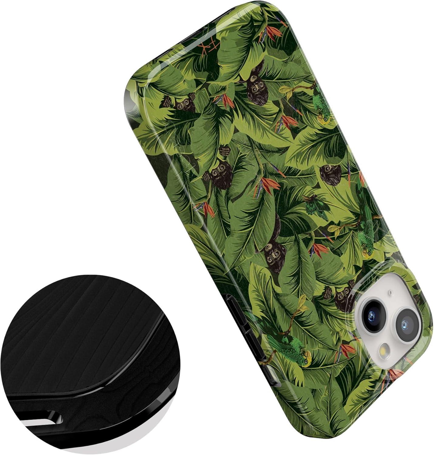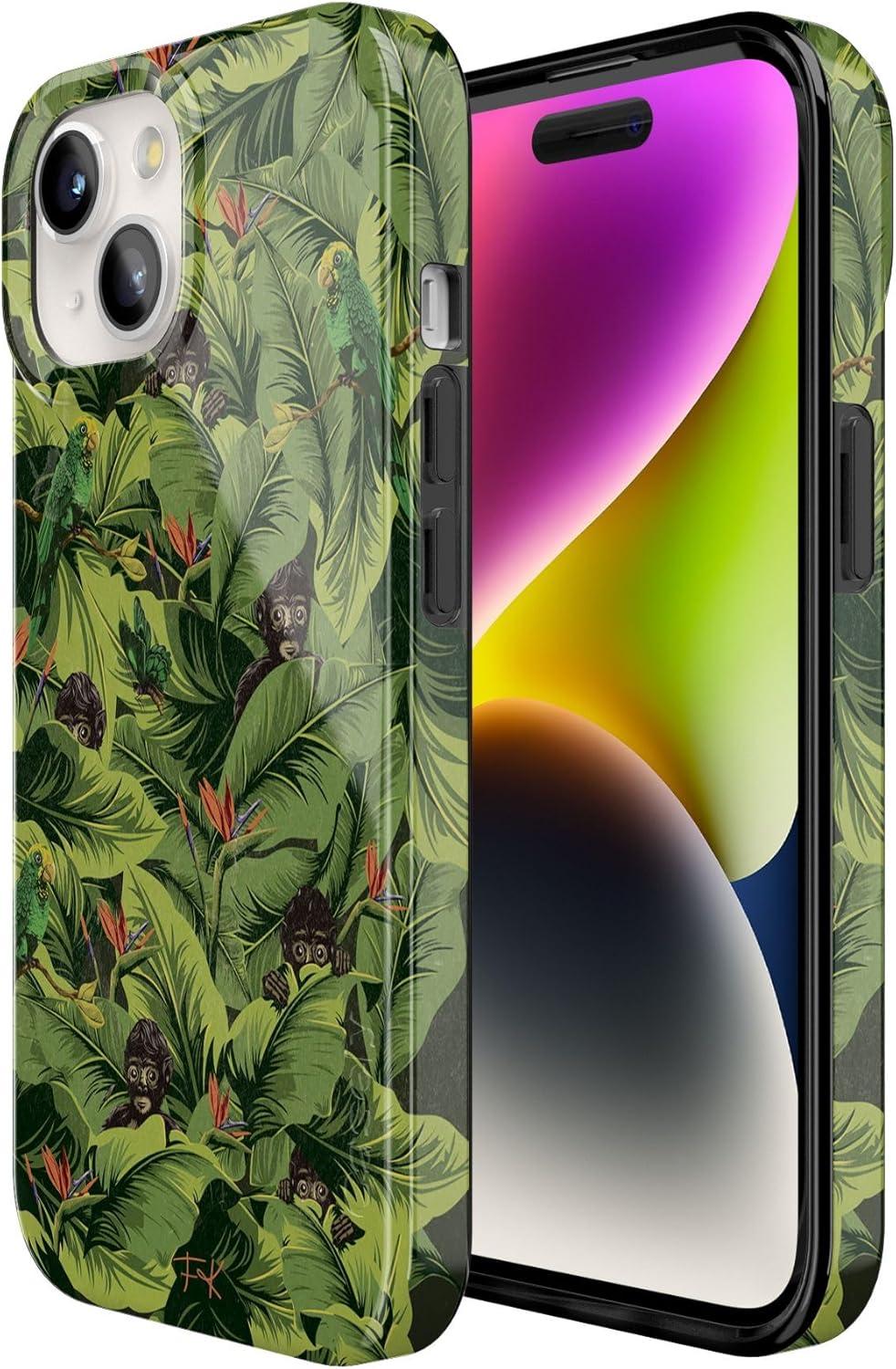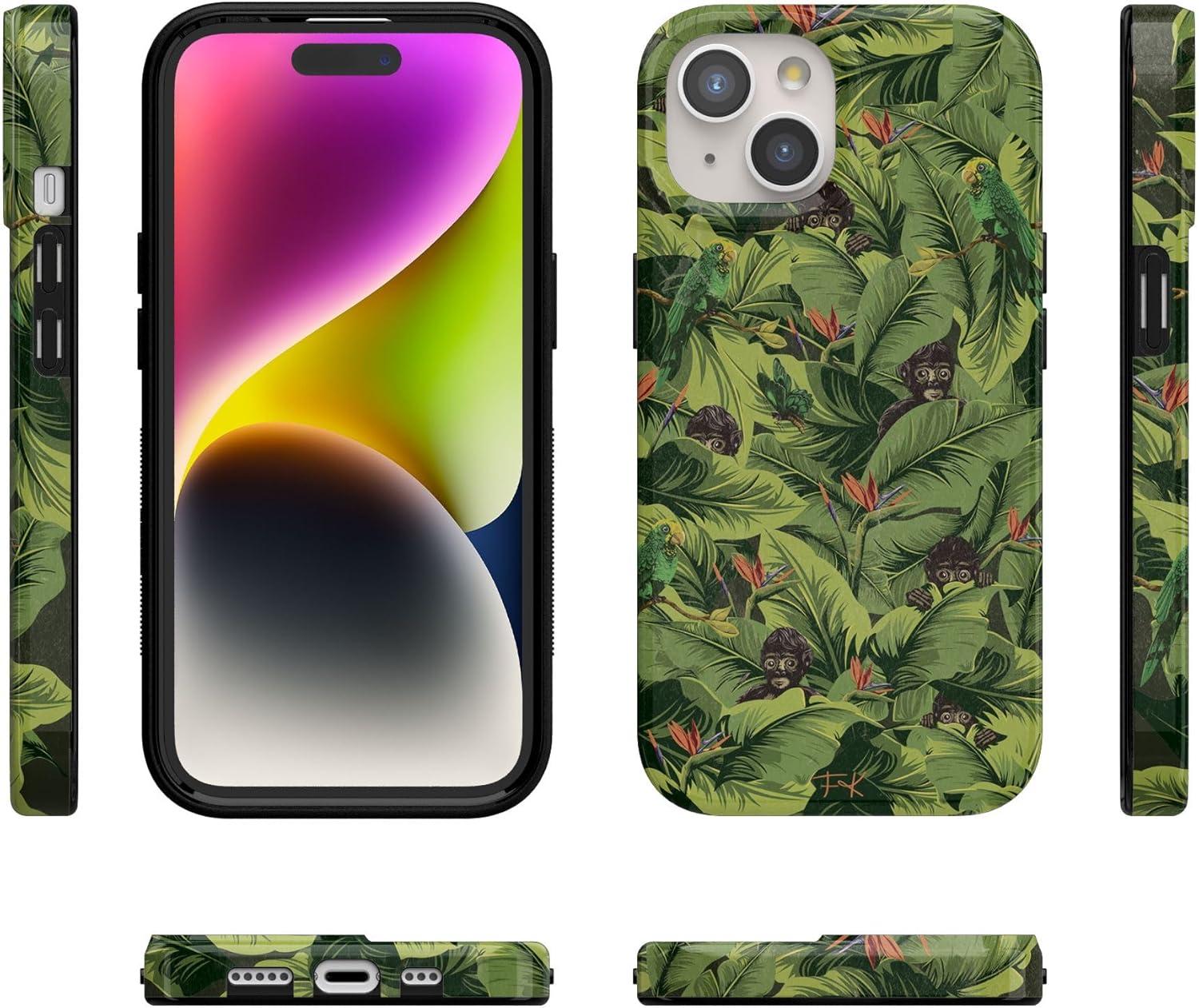 Casely iPhone 15 Case | Powder Pups | Dog Sled | Compatible with MagSafe | Classic Ultra Thin Design(Sneaky Monkeys | Frida Kahlo Jungle Floral)