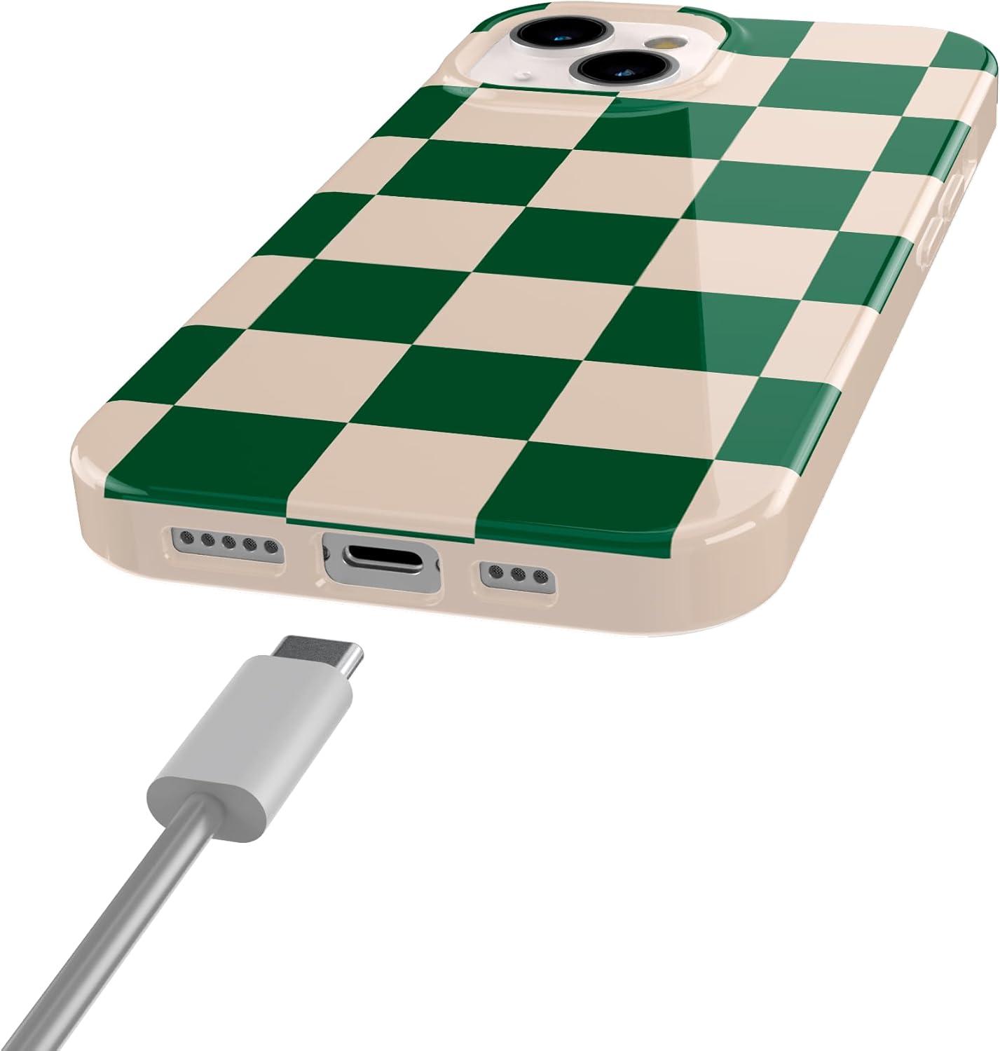 Casely iPhone 15 Case | Sneaky Monkeys | Frida Kahlo Jungle Floral | Compatible with MagSafe | Classic Ultra Thin Design(Fit Check | Green Checkerboard)