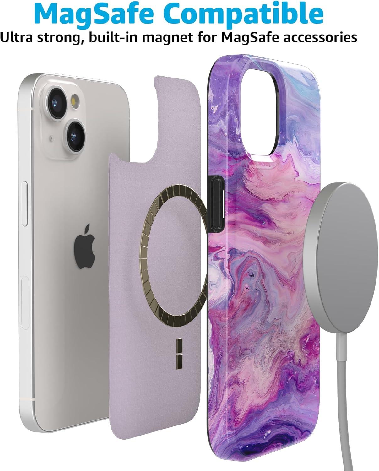 Casely iPhone 15 Case | Sneaky Monkeys | Frida Kahlo Jungle Floral | Compatible with MagSafe | Classic Ultra Thin Design(Tie Dying Over You | Purple Marble)