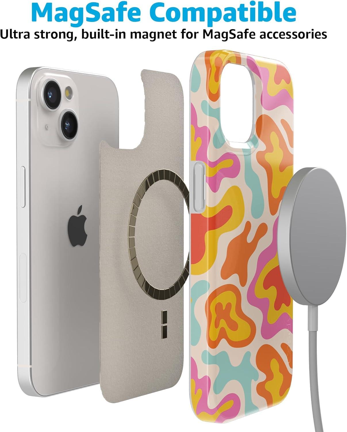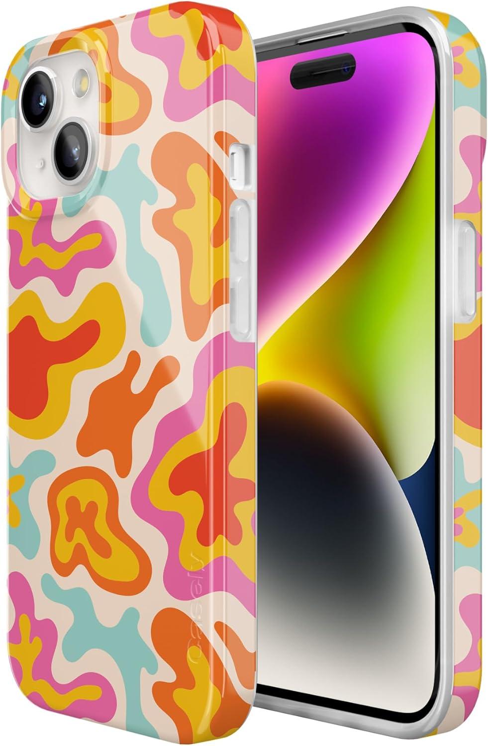 Casely iPhone 15 Case | Sneaky Monkeys | Frida Kahlo Jungle Floral | Compatible with MagSafe | Classic Ultra Thin Design(Tropical Color Splash | Abstract Retro)