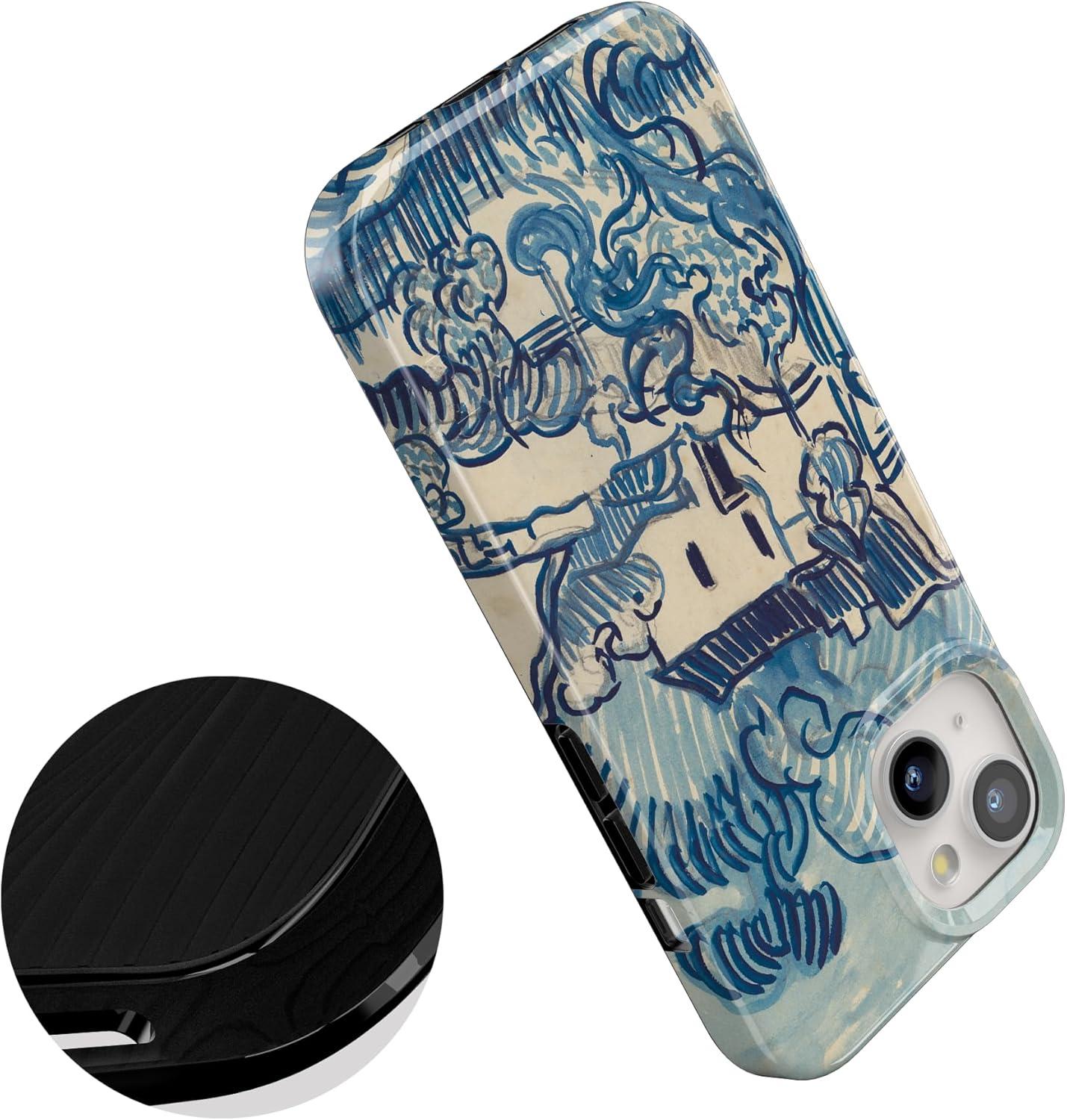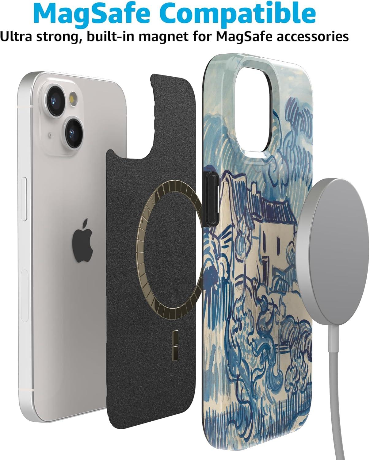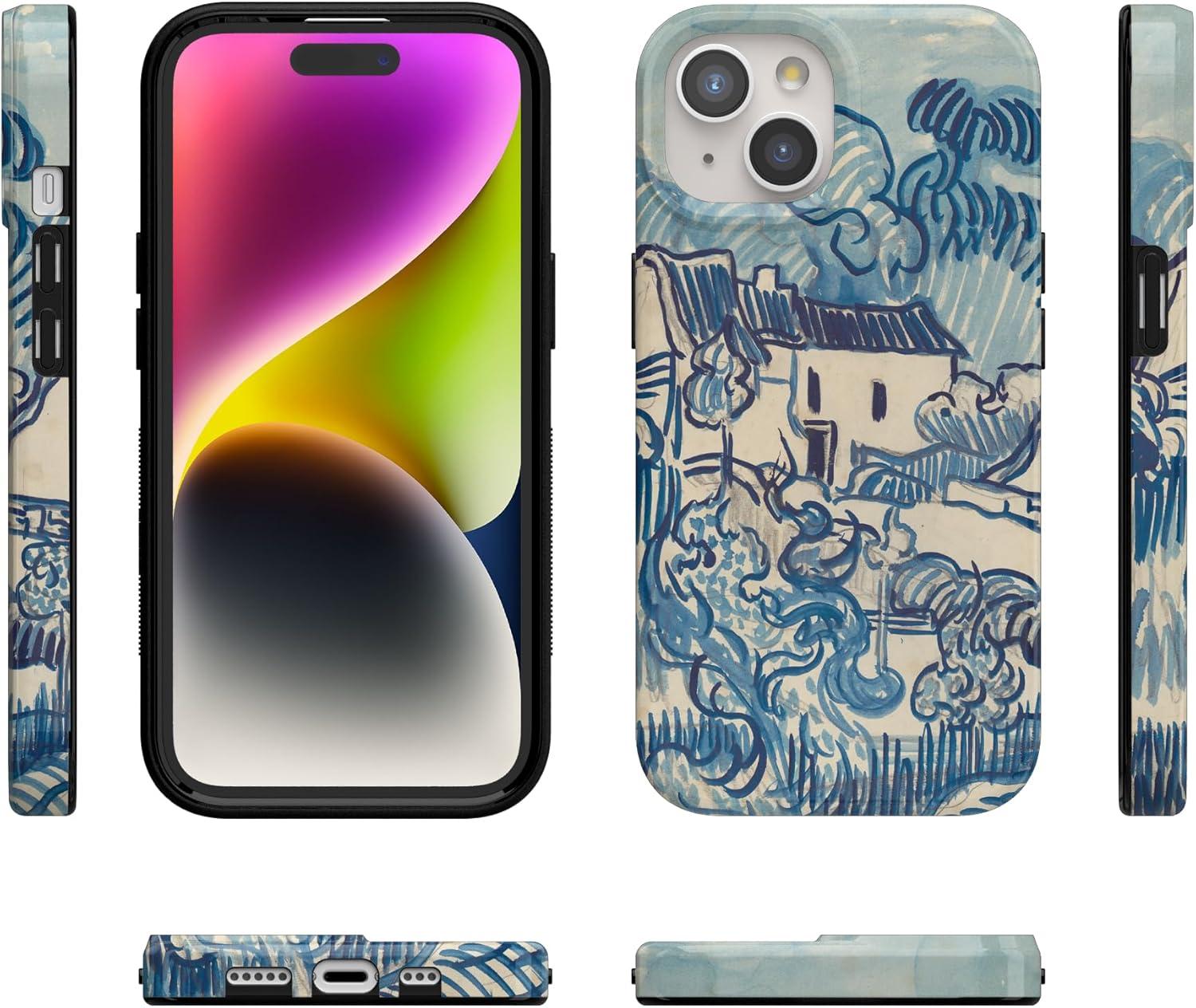 Casely iPhone 15 Case | Sneaky Monkeys | Frida Kahlo Jungle Floral | Compatible with MagSafe | Classic Ultra Thin Design(Van Gogh | Landscape With Houses)
