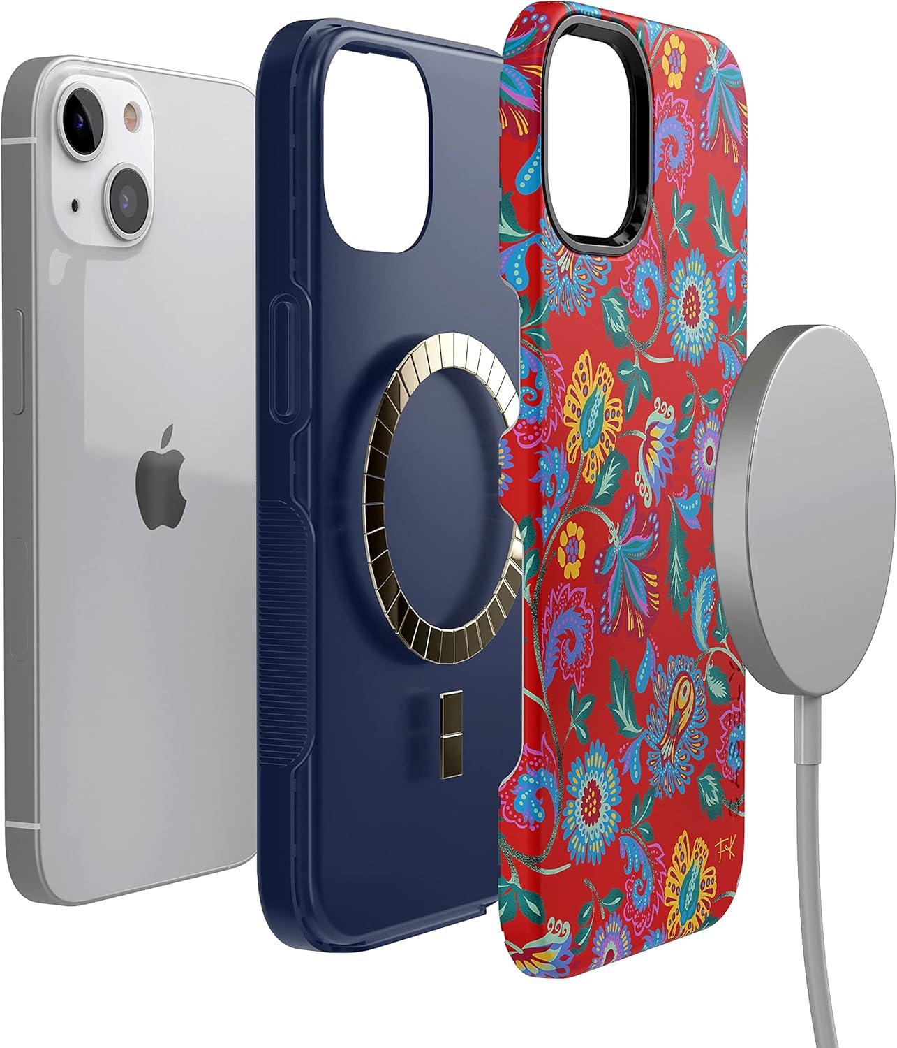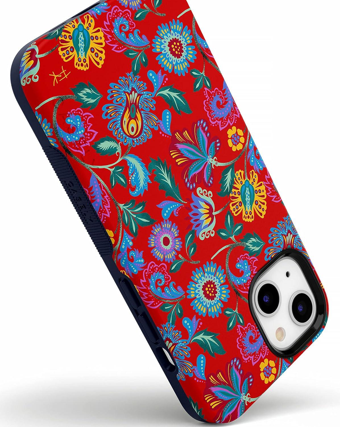Casely iPhone 15 Case | Twilight Flora | Moody Monochrome | Bold Protective Design | Compatible with MagSafe(11 Frida Kahlo | Painted Flowers | Floral)
