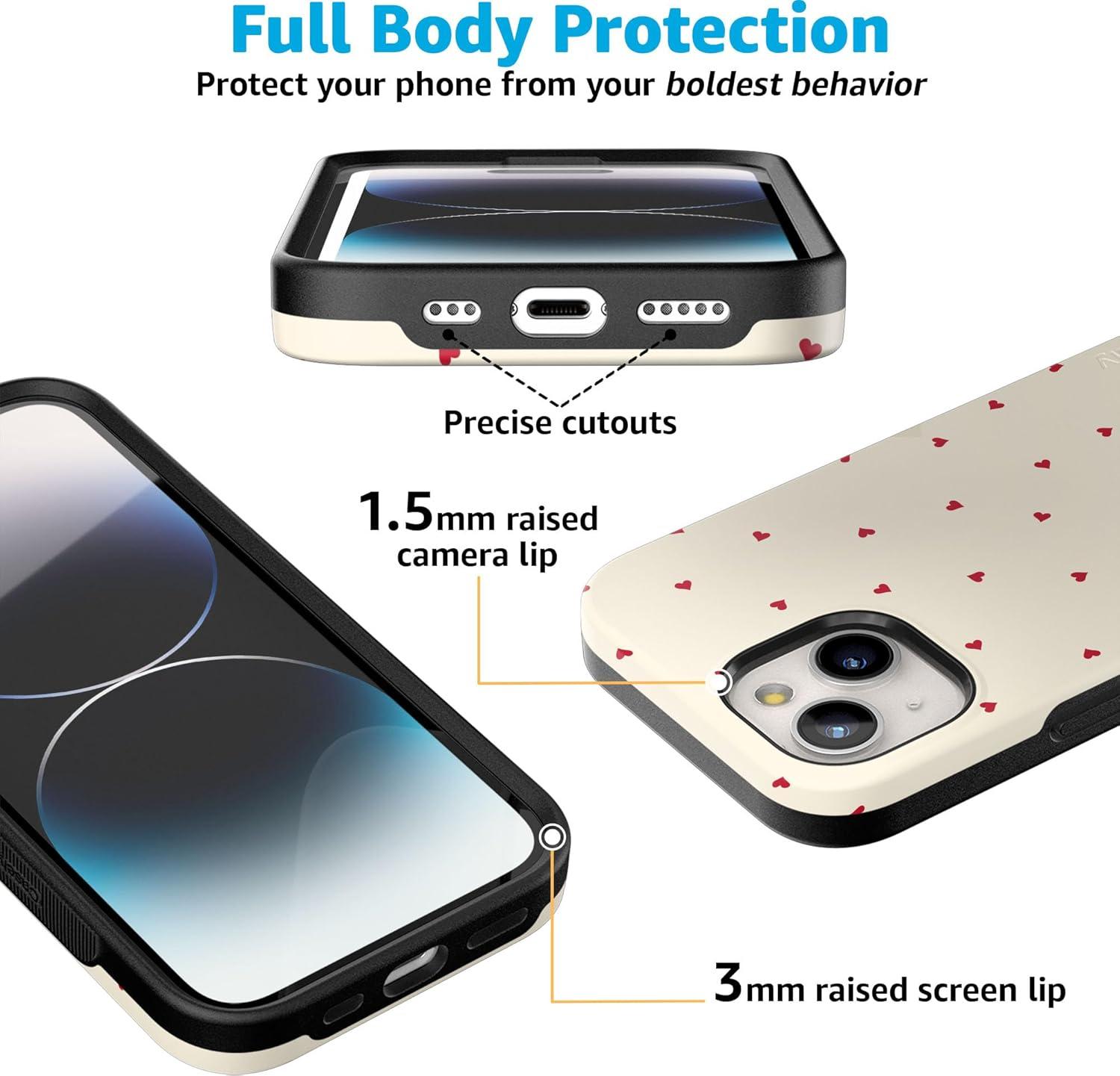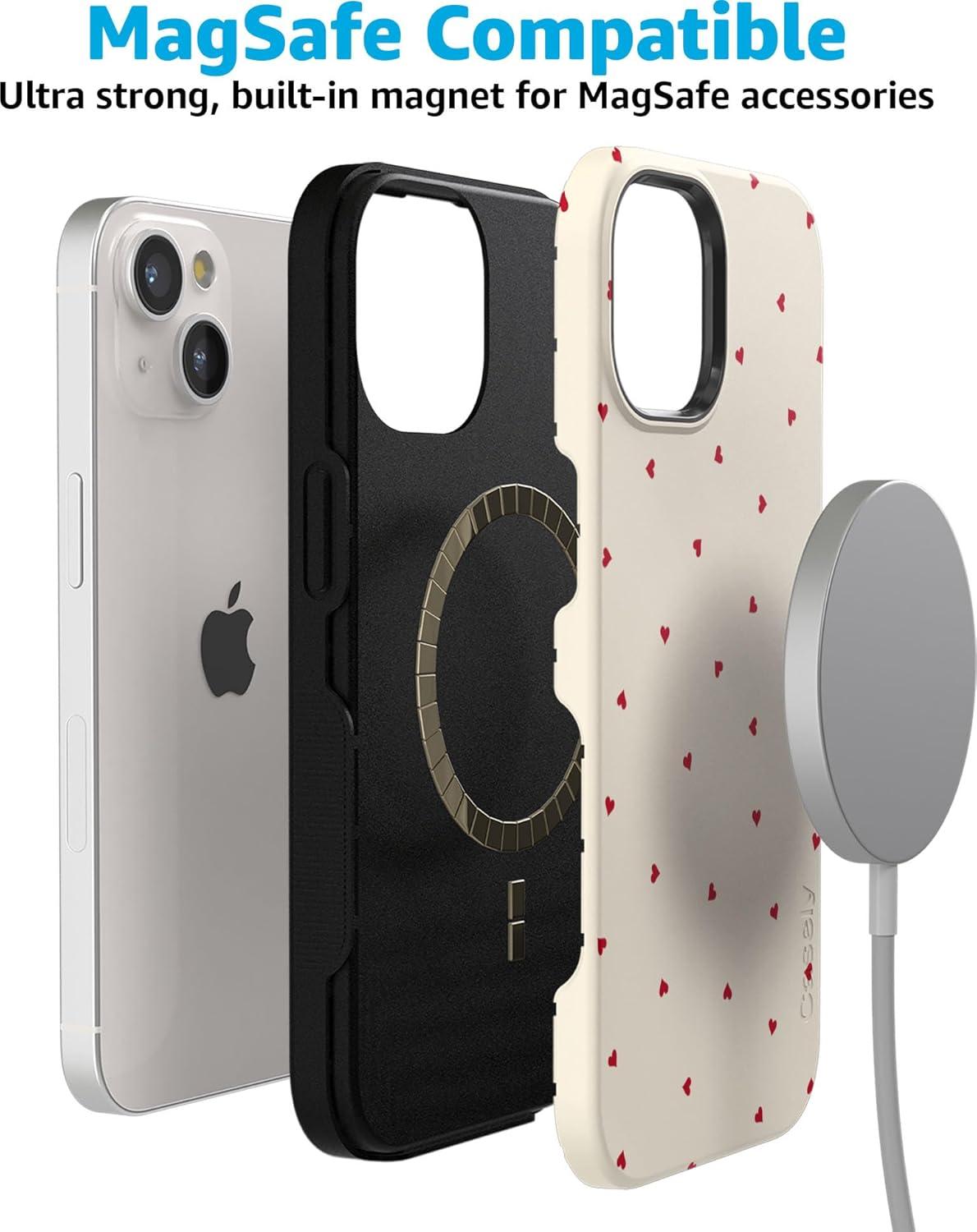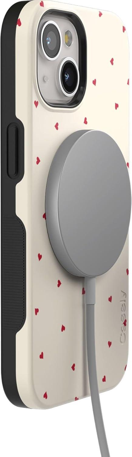 Casely iPhone 15 Case | Twilight Flora | Moody Monochrome | Bold Protective Design | Compatible with MagSafe(Be Mine | Tiny Hearts)