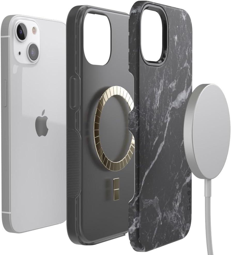 Casely iPhone 15 Case | Twilight Flora | Moody Monochrome | Bold Protective Design | Compatible with MagSafe(Black Pearl Marble)