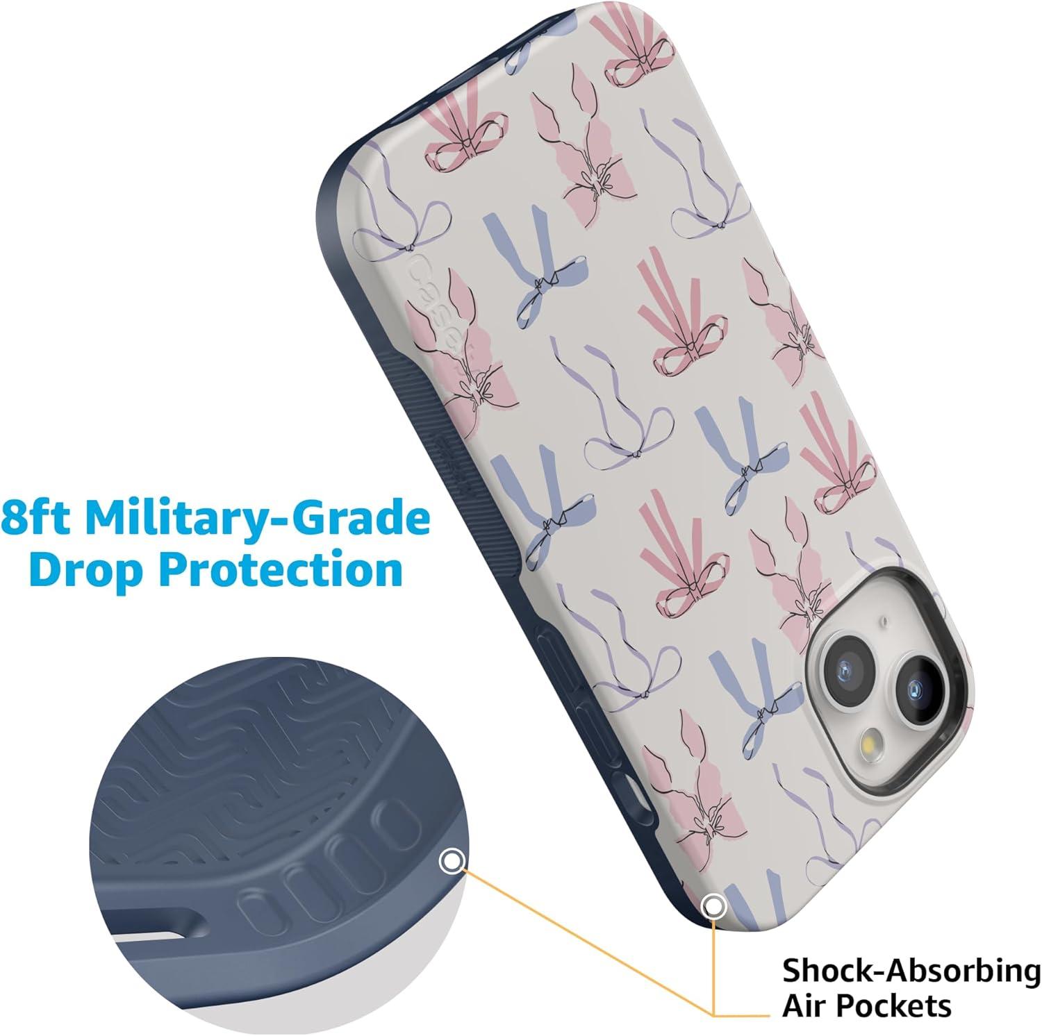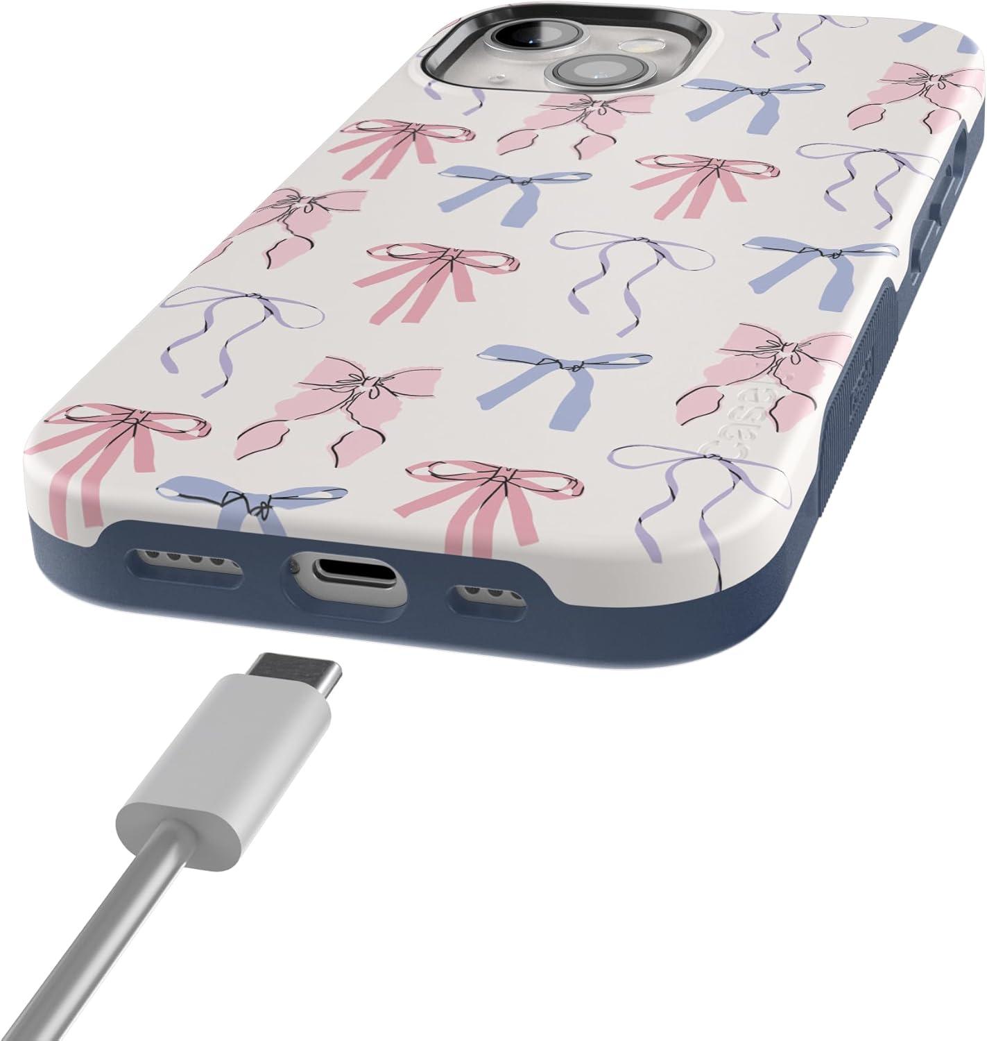 Casely iPhone 15 Case | Twilight Flora | Moody Monochrome | Bold Protective Design | Compatible with MagSafe(Coquette Girlie | Pastel Bows)
