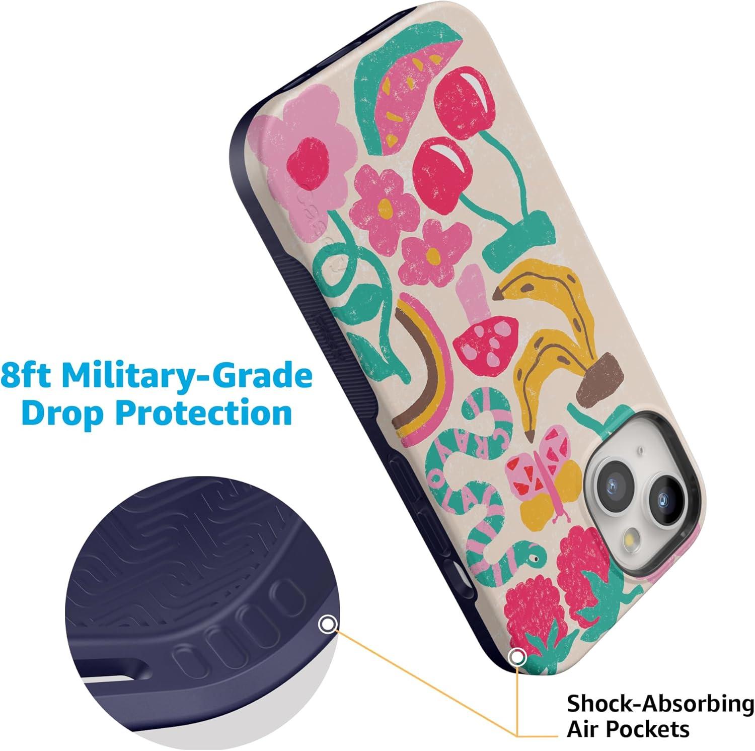 Casely iPhone 15 Case | Twilight Flora | Moody Monochrome | Bold Protective Design | Compatible with MagSafe(Doodle Bug | Crayola Crayon)
