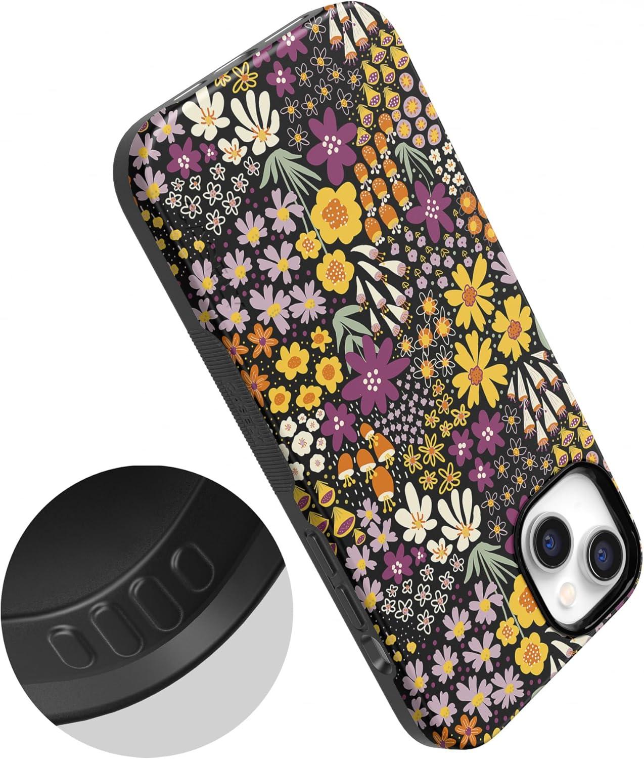 Casely iPhone 15 Case | Twilight Flora | Moody Monochrome | Bold Protective Design | Compatible with MagSafe(Falling for You | Plum Floral)