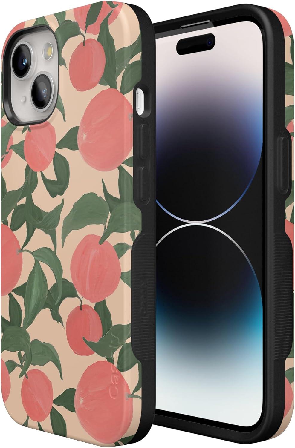 Casely iPhone 15 Case | Twilight Flora | Moody Monochrome | Bold Protective Design | Compatible with MagSafe(Feeling Peachy | Blush Vines)