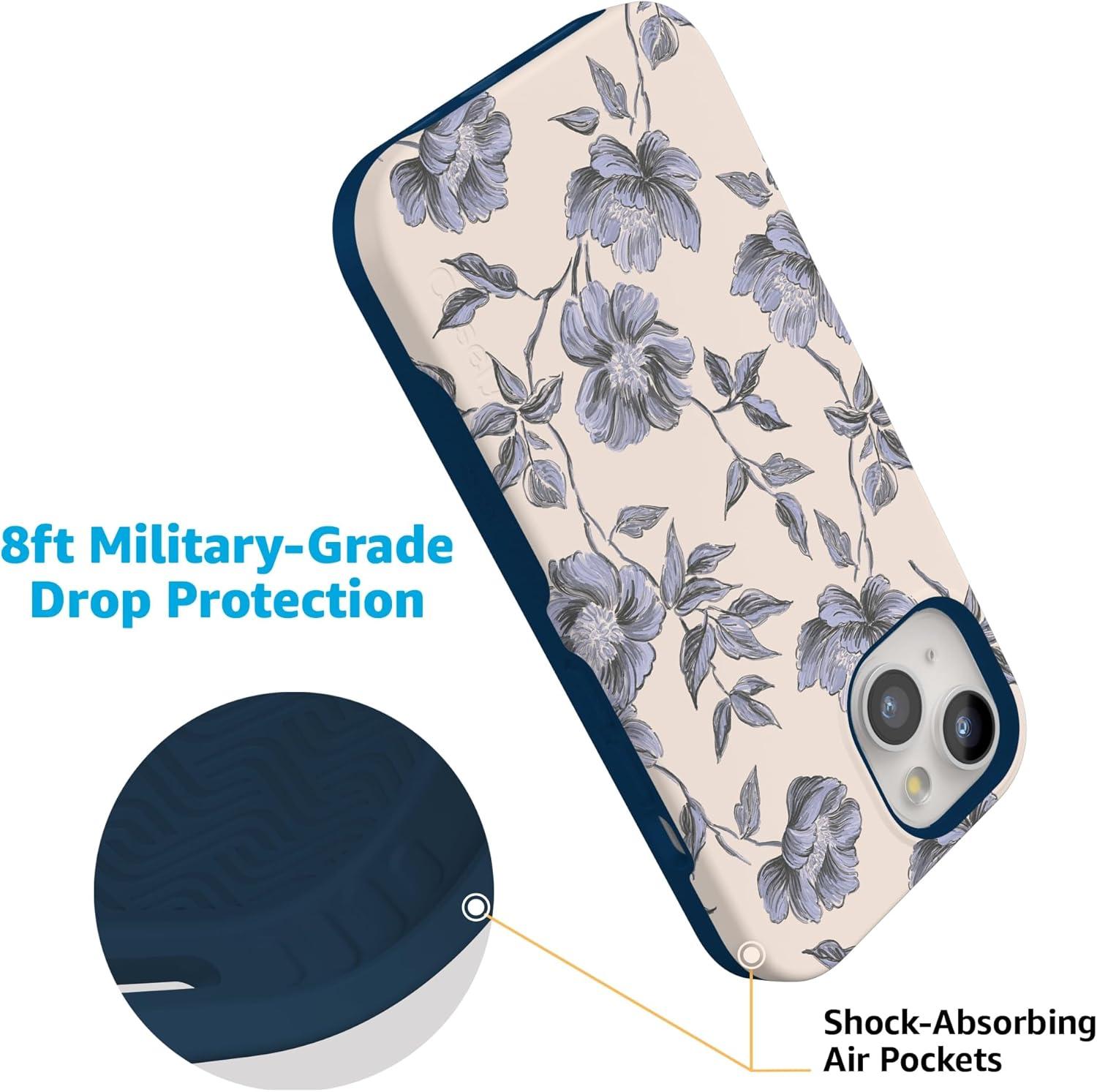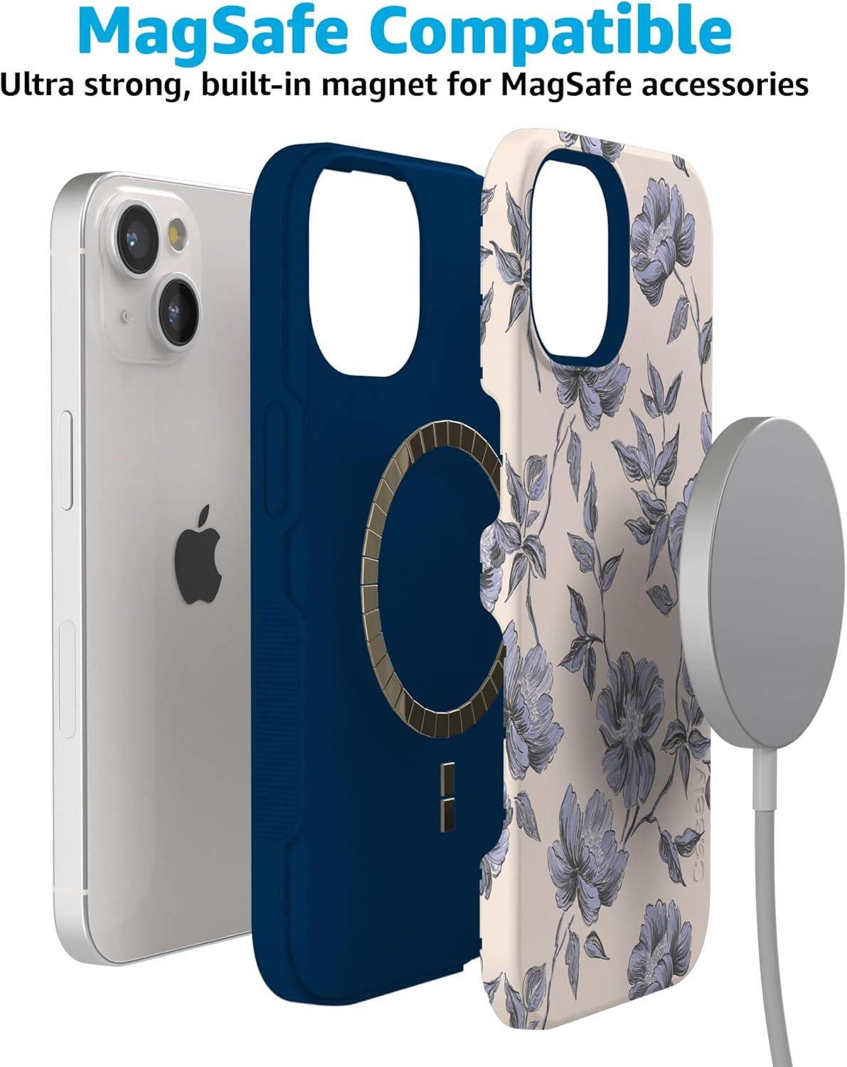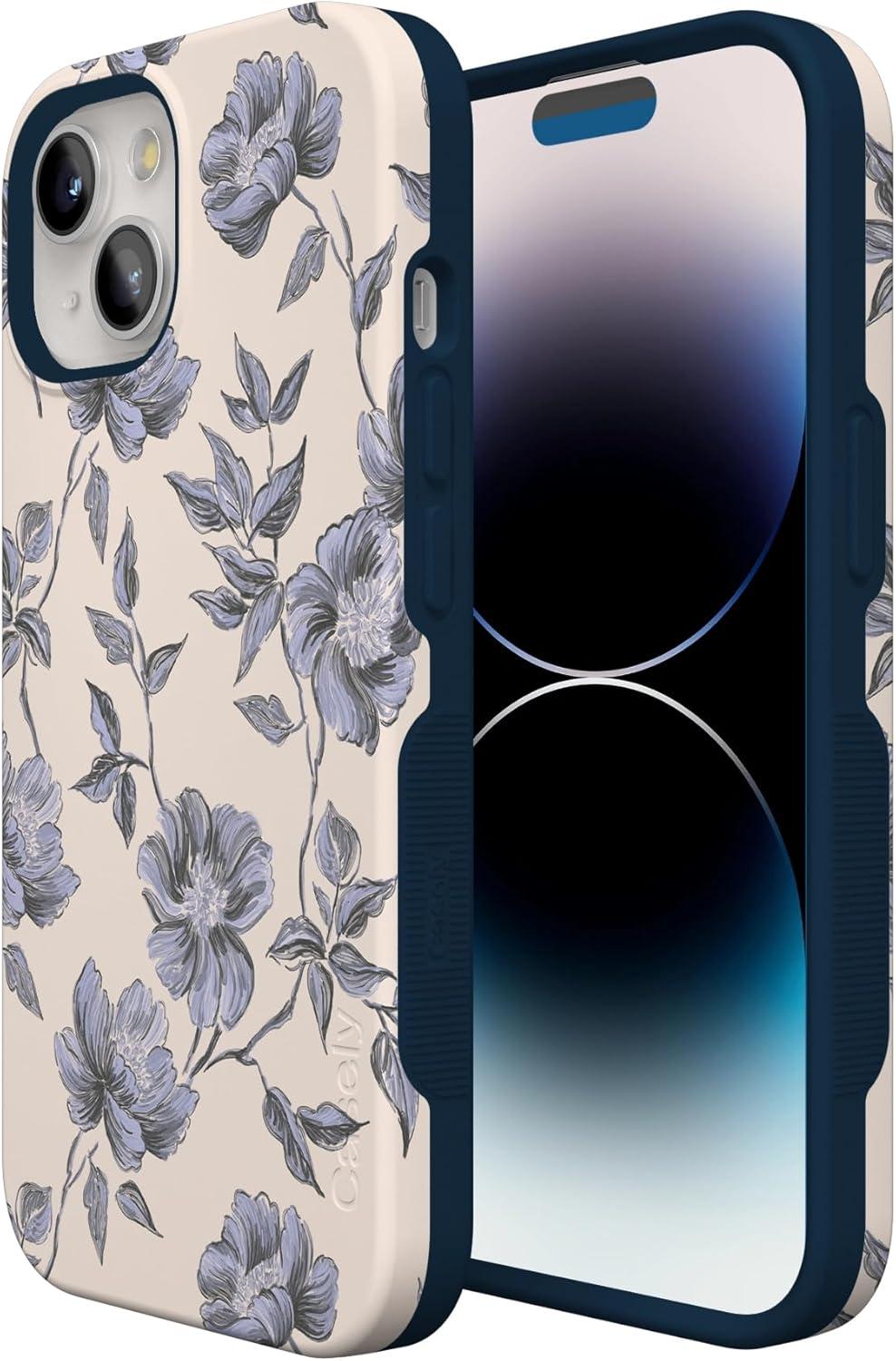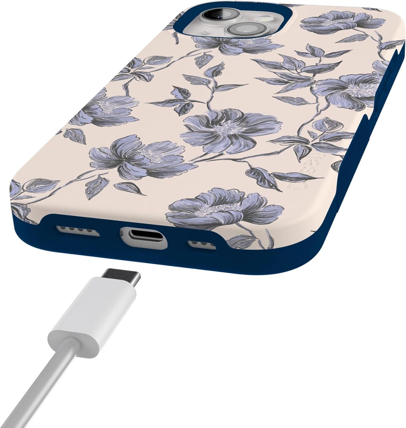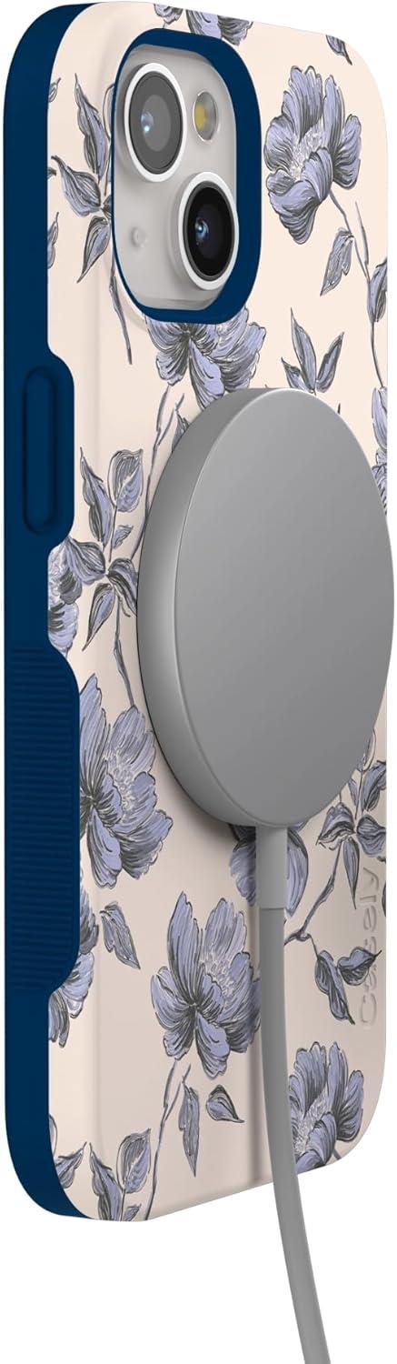 Casely iPhone 15 Case | Twilight Flora | Moody Monochrome | Bold Protective Design | Compatible with MagSafe(Ink & Iris | Vintage Floral)