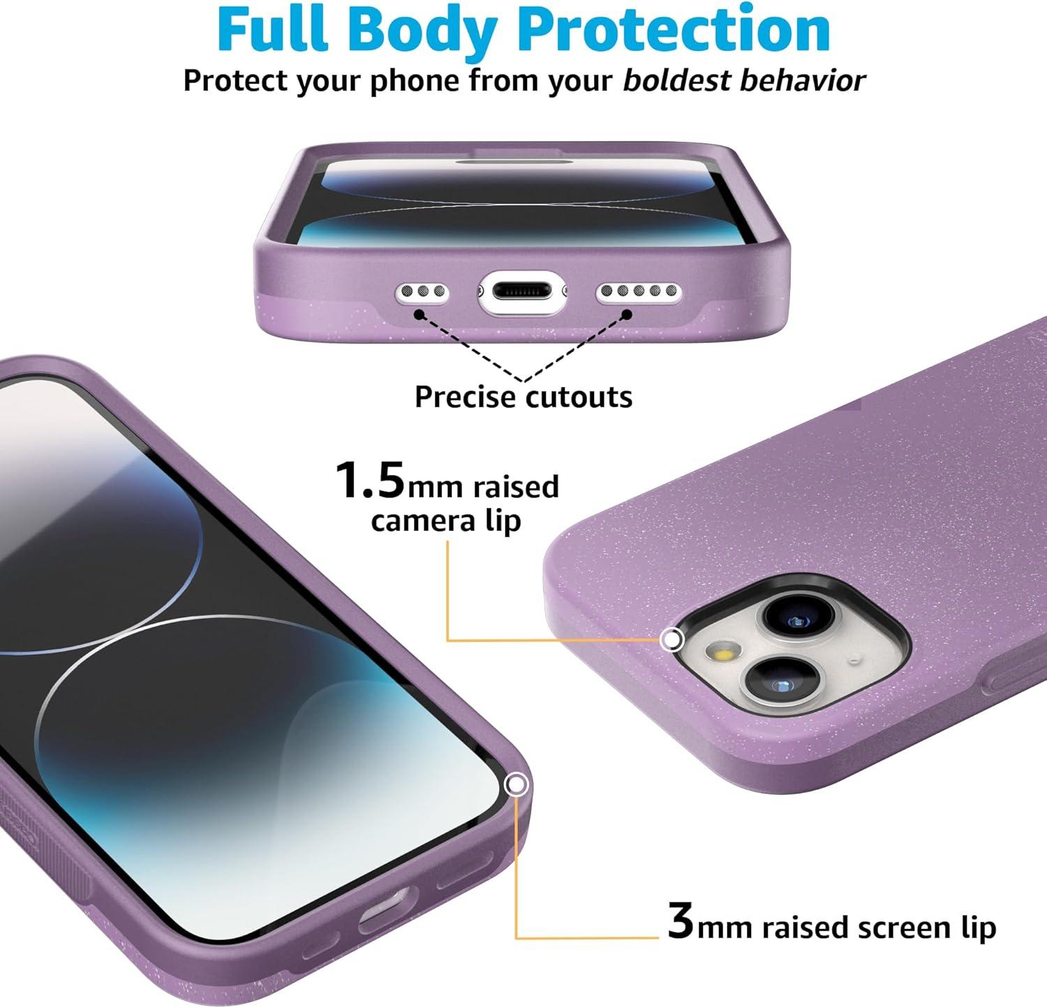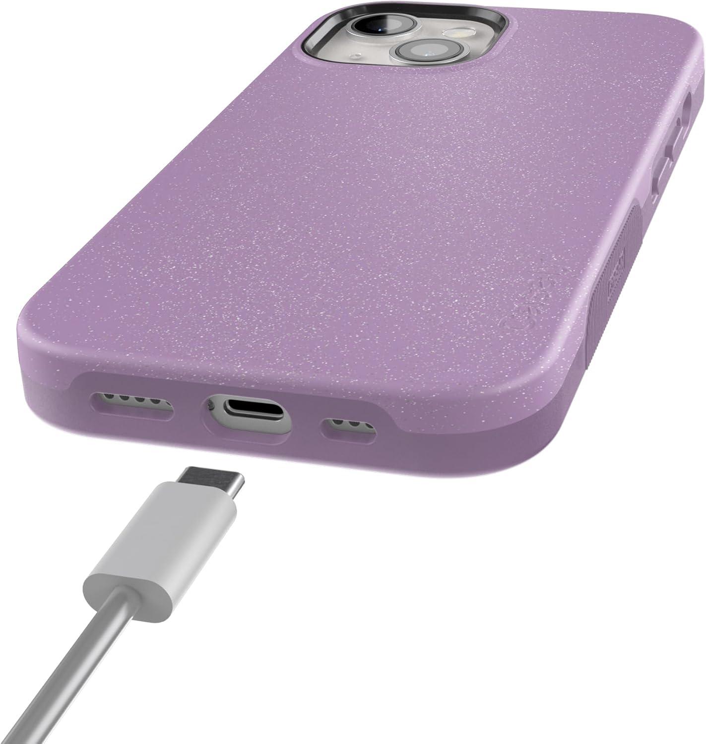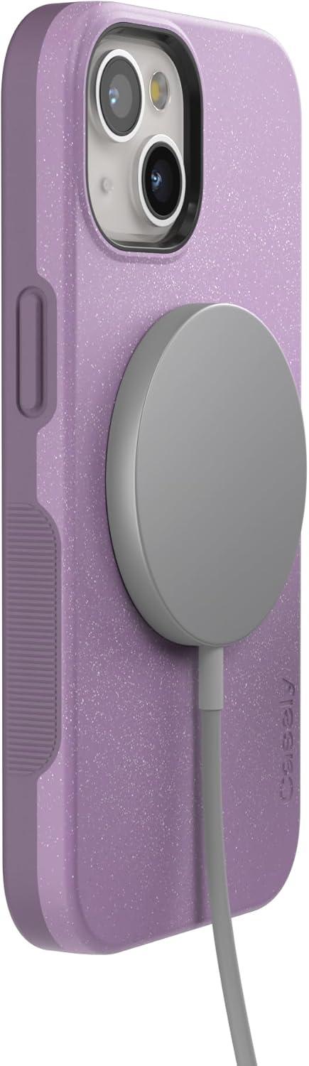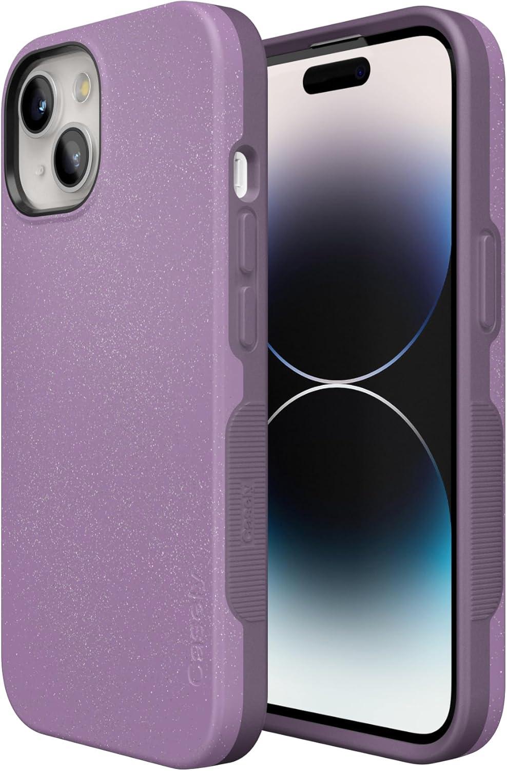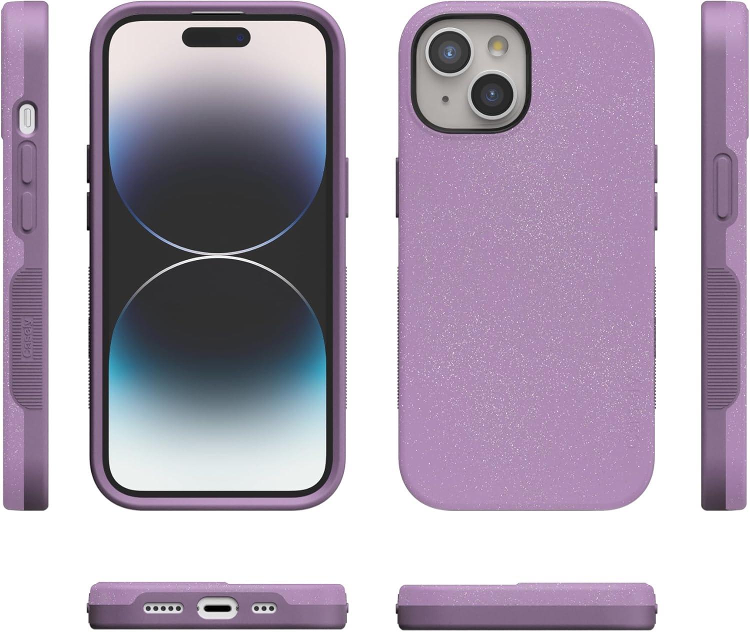 Casely iPhone 15 Case | Twilight Flora | Moody Monochrome | Bold Protective Design | Compatible with MagSafe(Lavender Waves | Purple Shimmer)