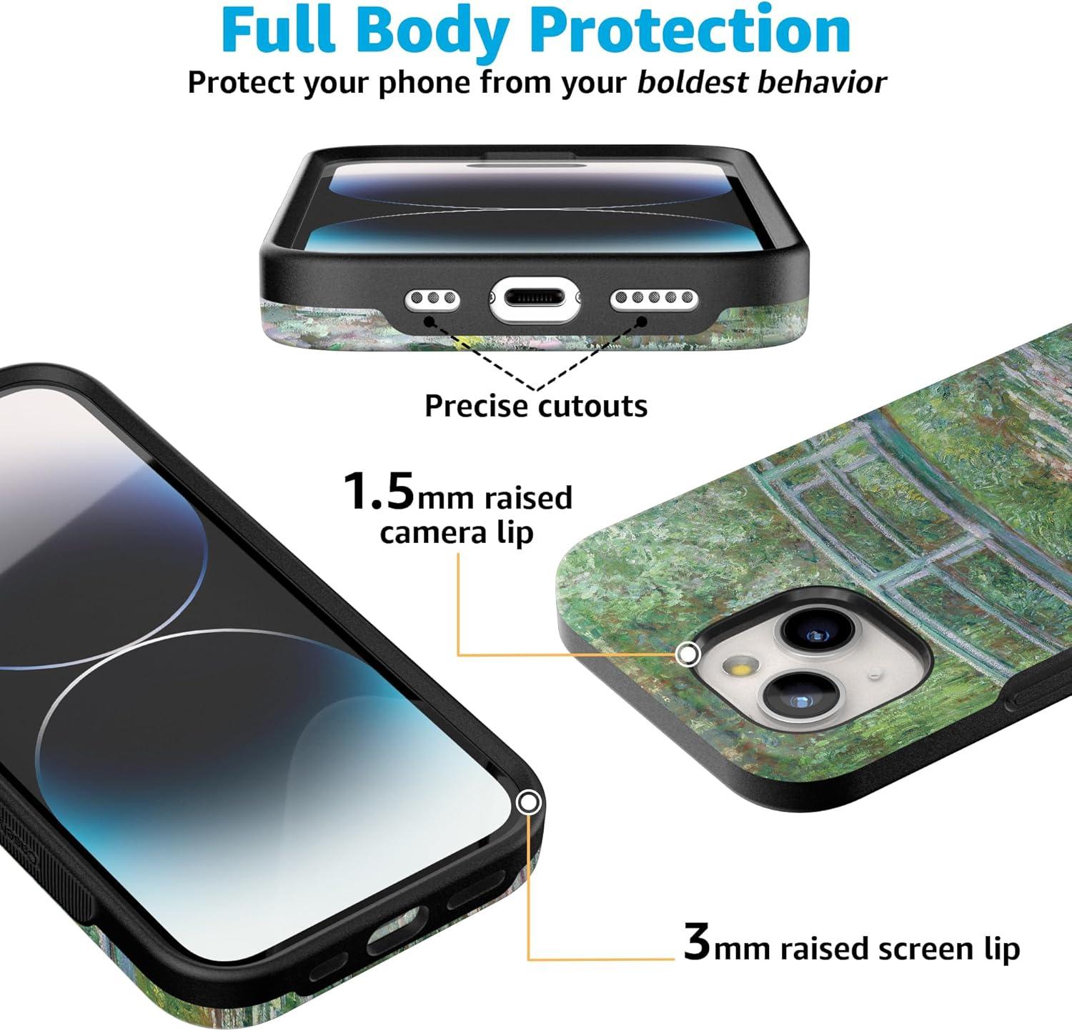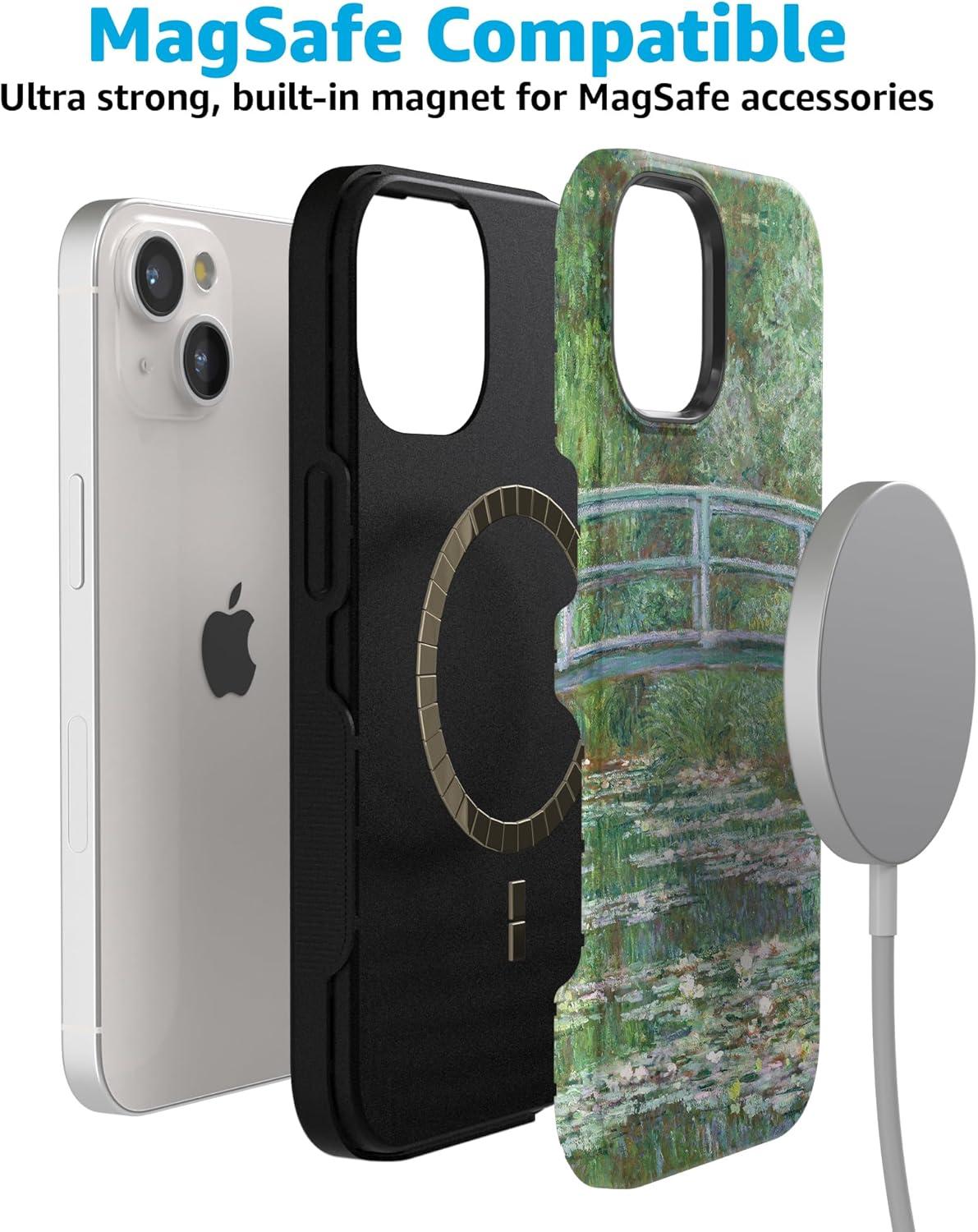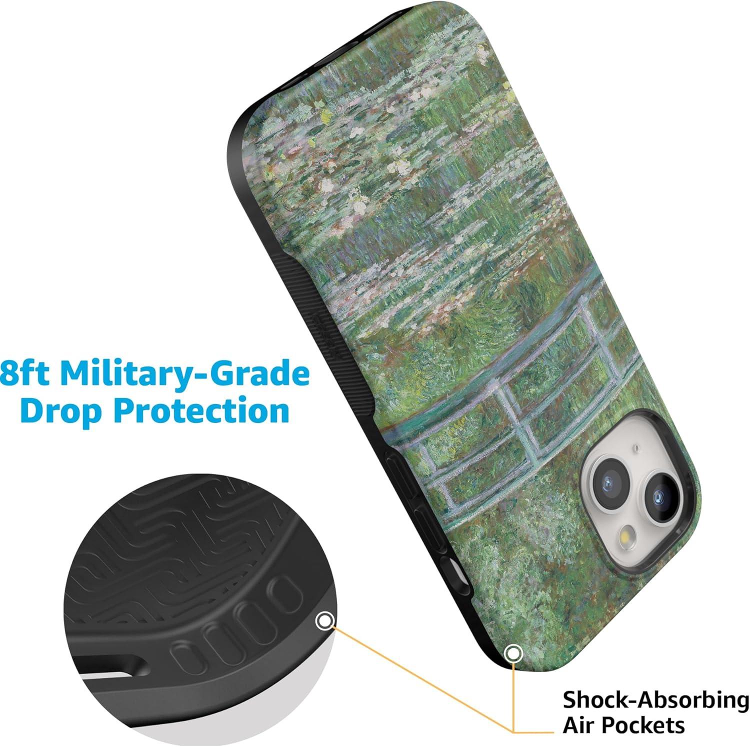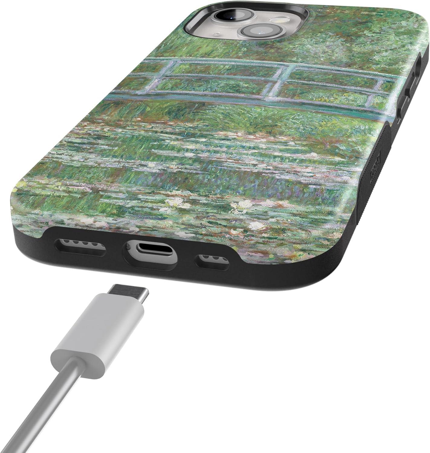 Casely iPhone 15 Case | Twilight Flora | Moody Monochrome | Bold Protective Design | Compatible with MagSafe(Monet’s Bridge | The Met Museum)