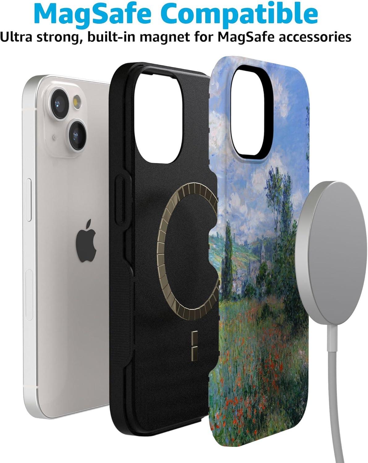 Casely iPhone 15 Case | Twilight Flora | Moody Monochrome | Bold Protective Design | Compatible with MagSafe(Monet’s View | The Met Museum)