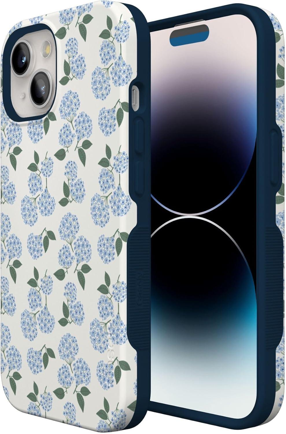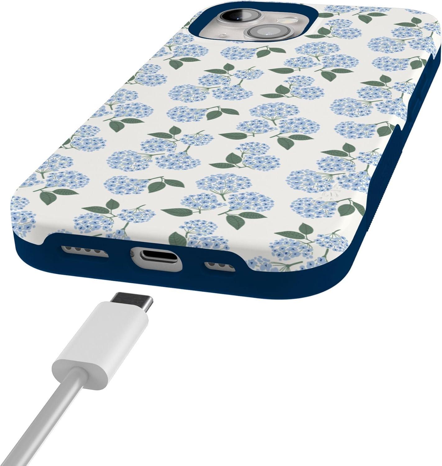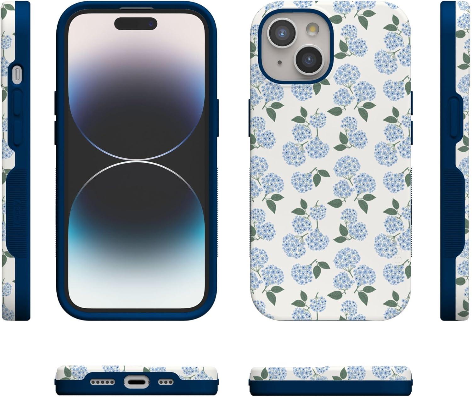 Casely iPhone 15 Case | Twilight Flora | Moody Monochrome | Bold Protective Design | Compatible with MagSafe(Nantucket Cottage | Blue Hydrangea)