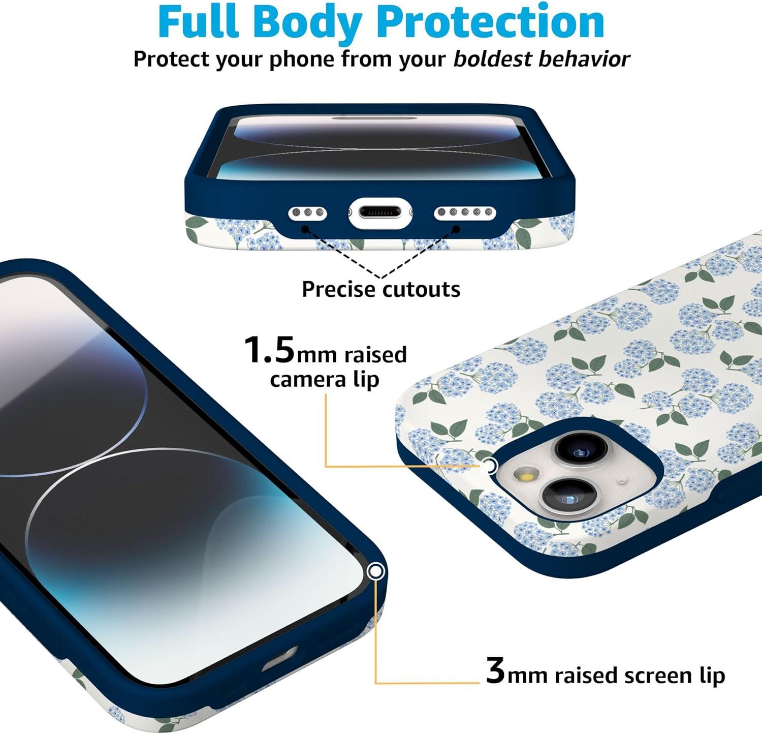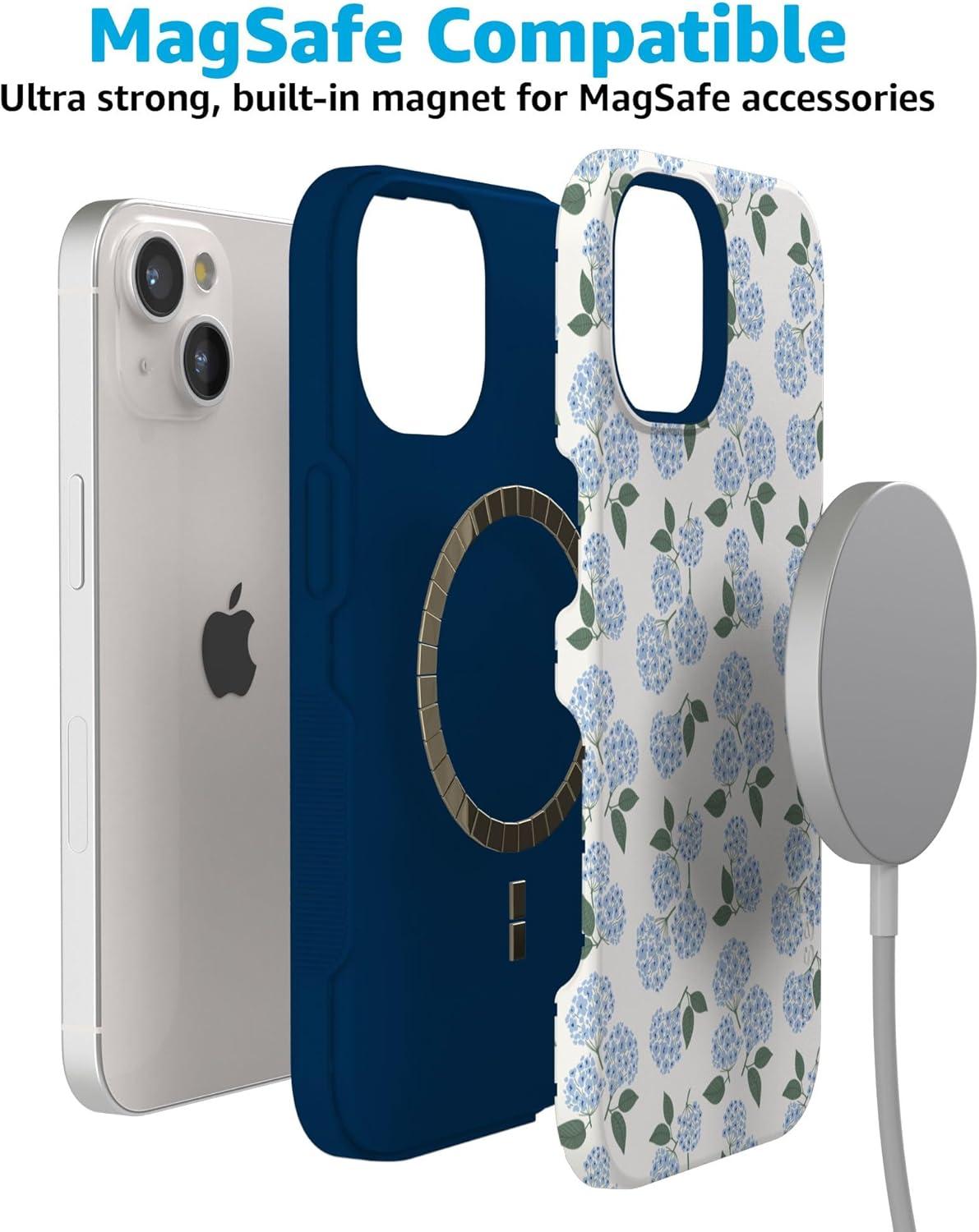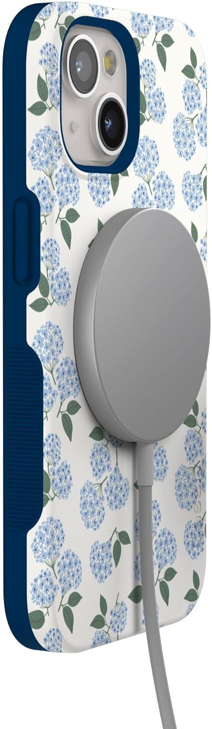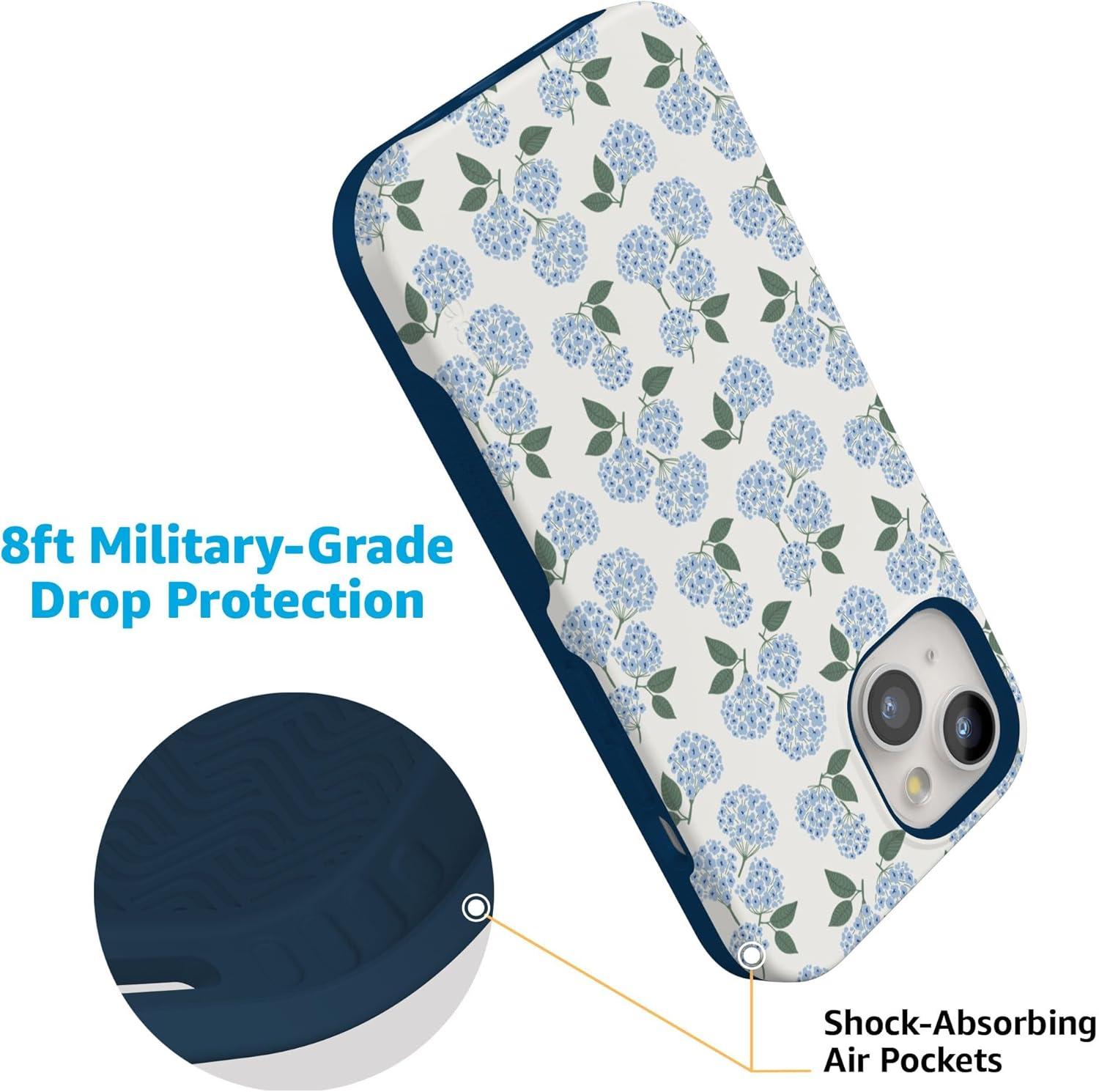 Casely iPhone 15 Case | Twilight Flora | Moody Monochrome | Bold Protective Design | Compatible with MagSafe(Nantucket Cottage | Blue Hydrangea)