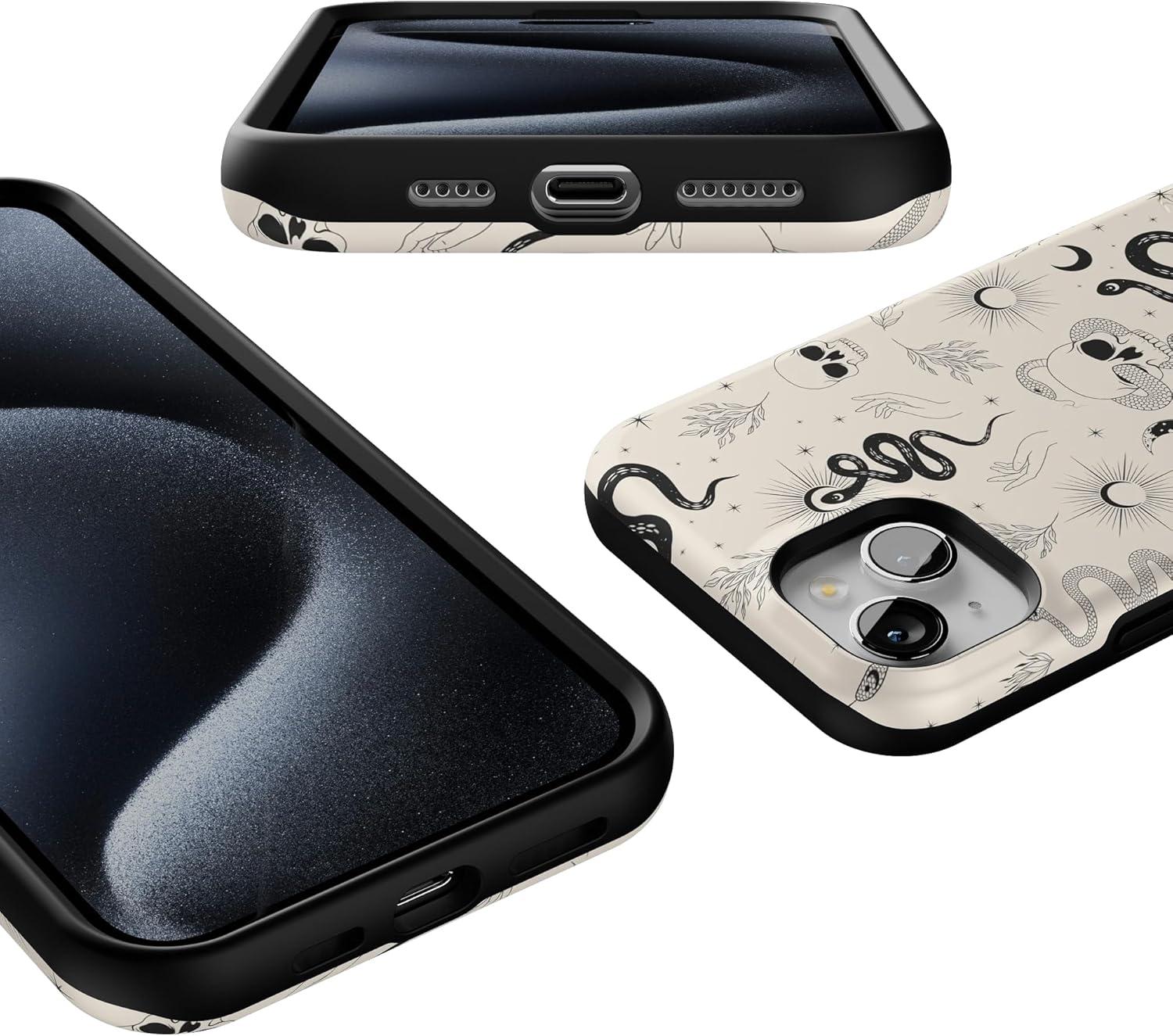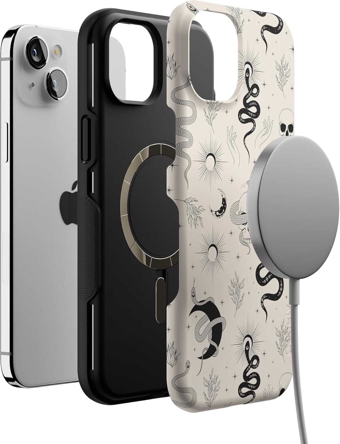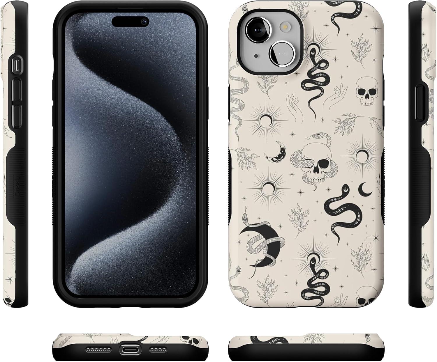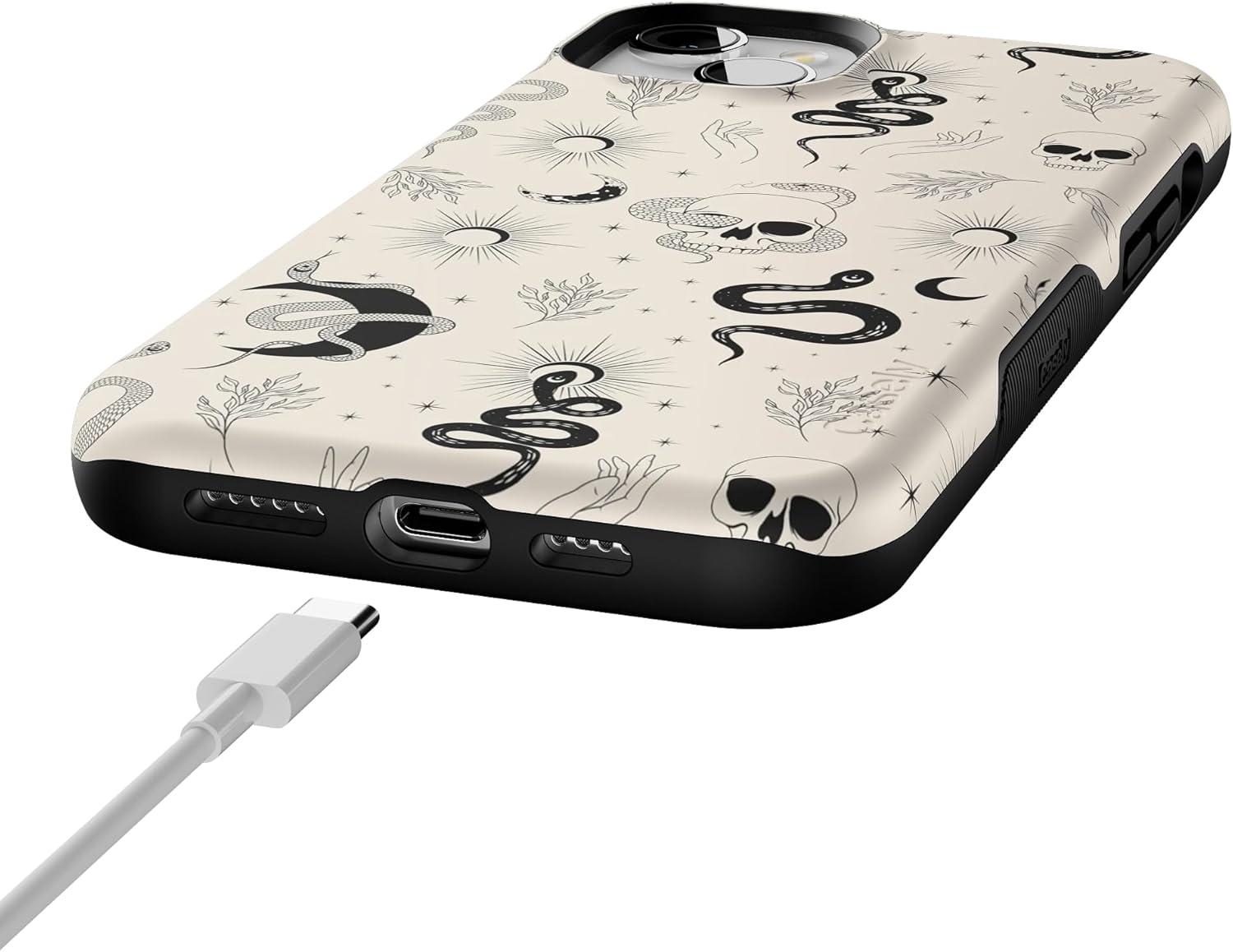 Casely iPhone 15 Case | Twilight Flora | Moody Monochrome | Bold Protective Design | Compatible with MagSafe(No Further Explanation | Snakes & Skulls)
