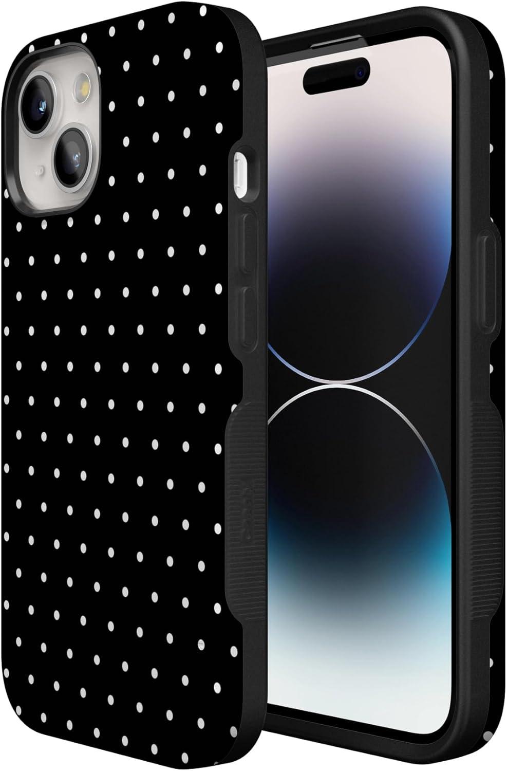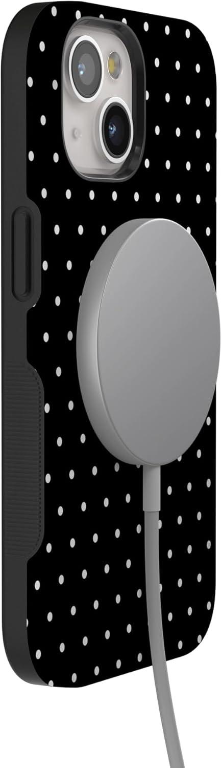 Casely iPhone 15 Case | Twilight Flora | Moody Monochrome | Bold Protective Design | Compatible with MagSafe(On the Dot | Black Polka Dot)