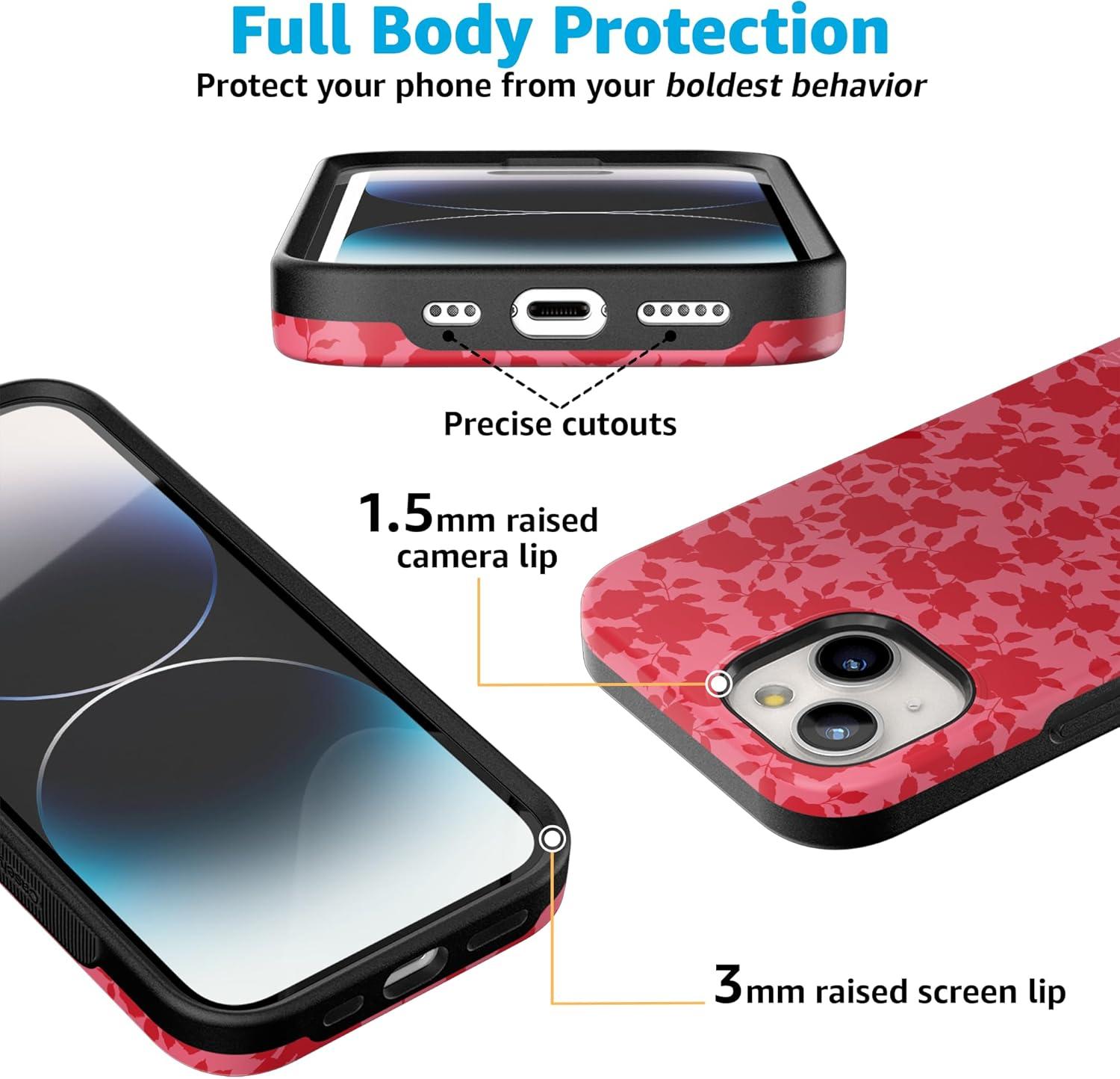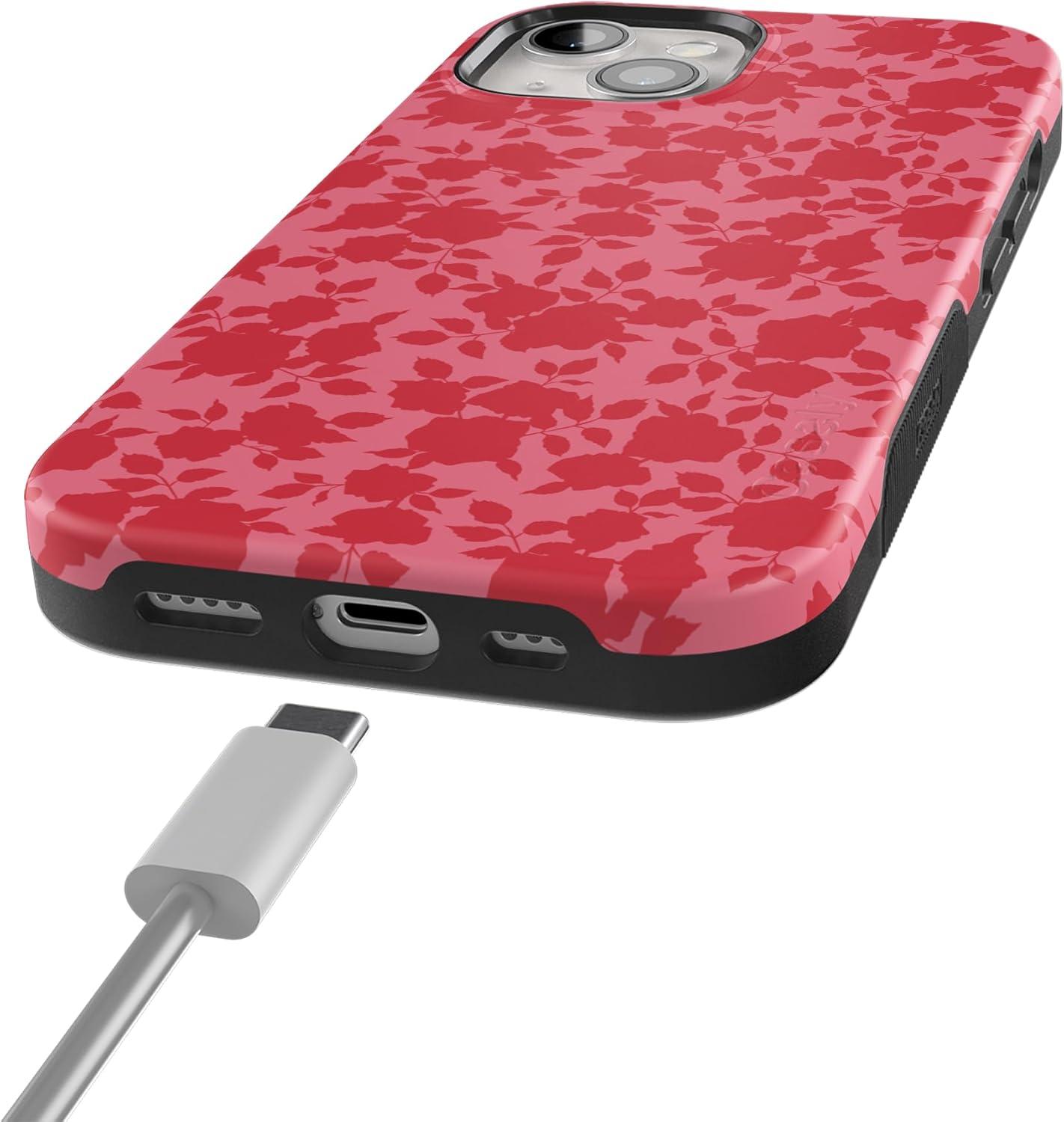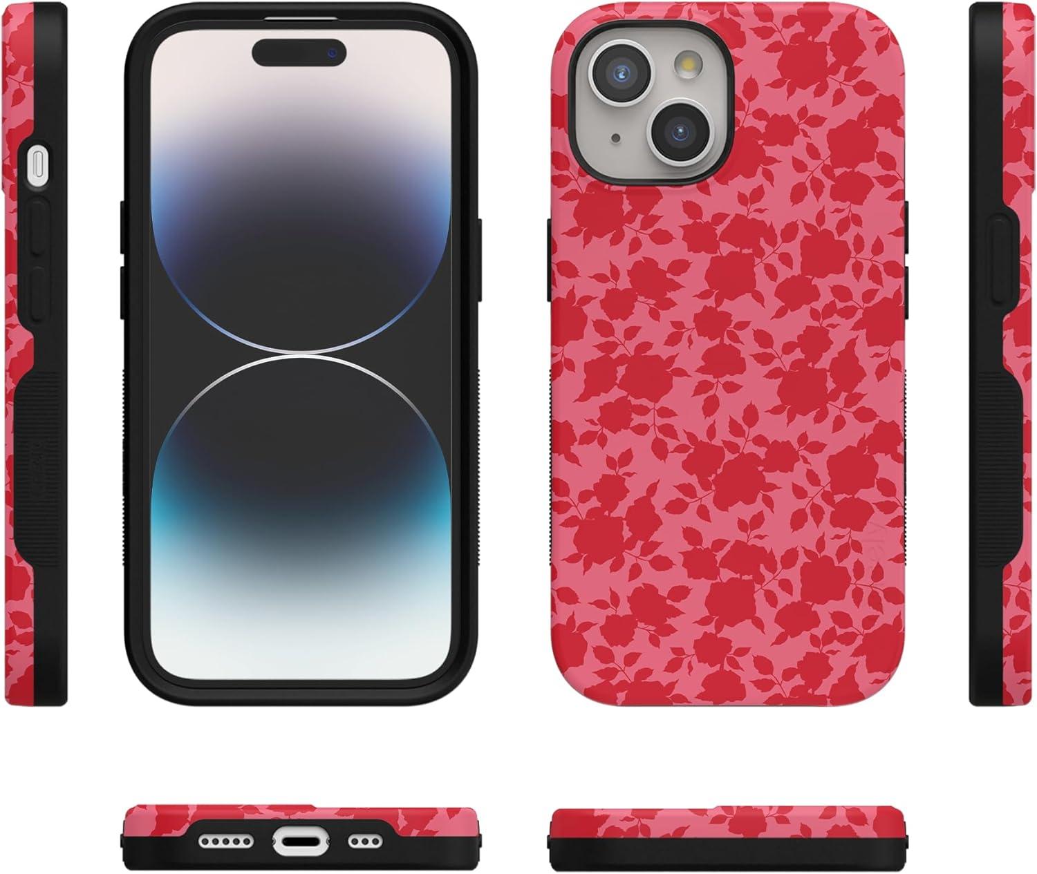Casely iPhone 15 Case | Twilight Flora | Moody Monochrome | Bold Protective Design | Compatible with MagSafe(Rose Garden | Red Aesthetic)