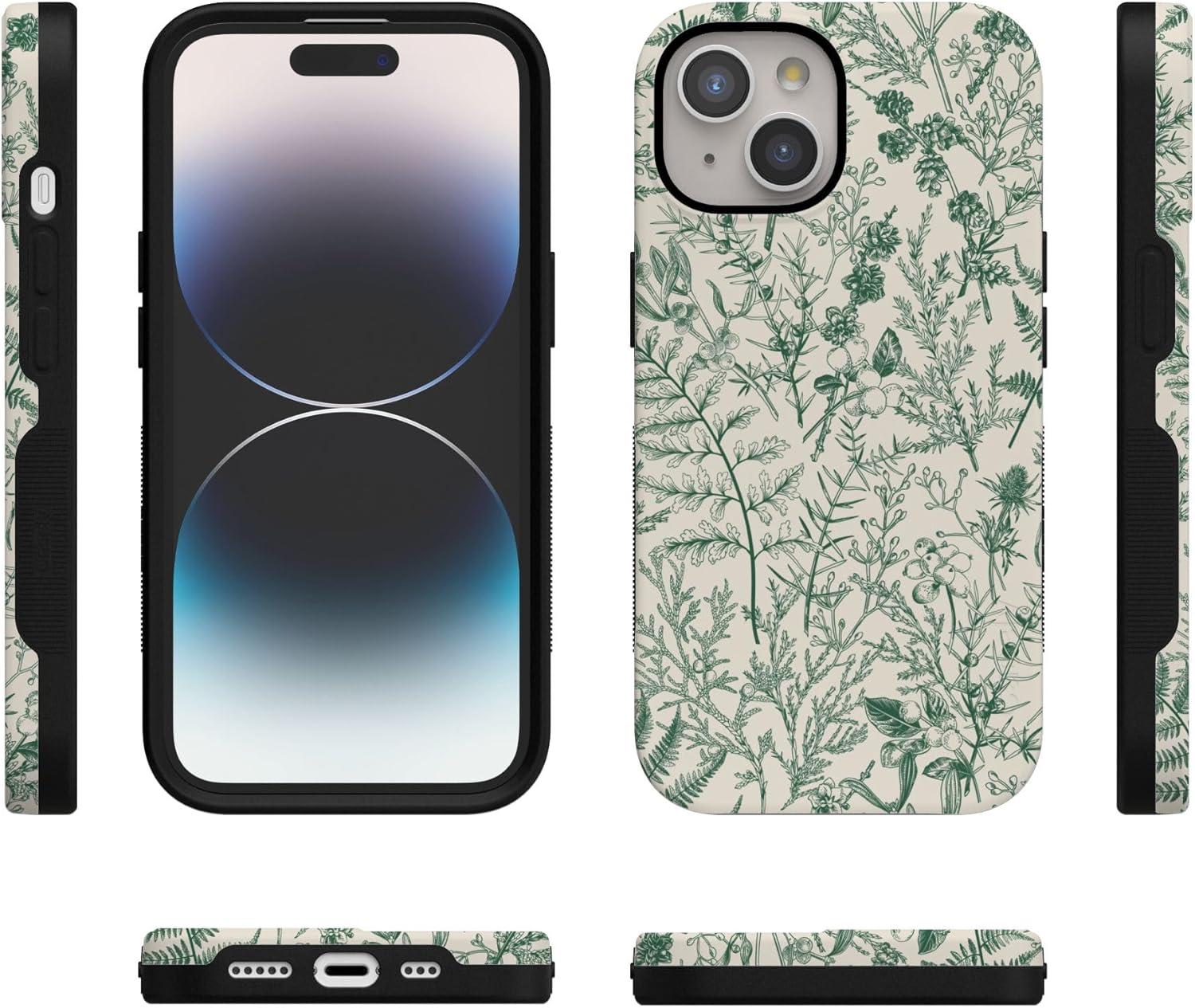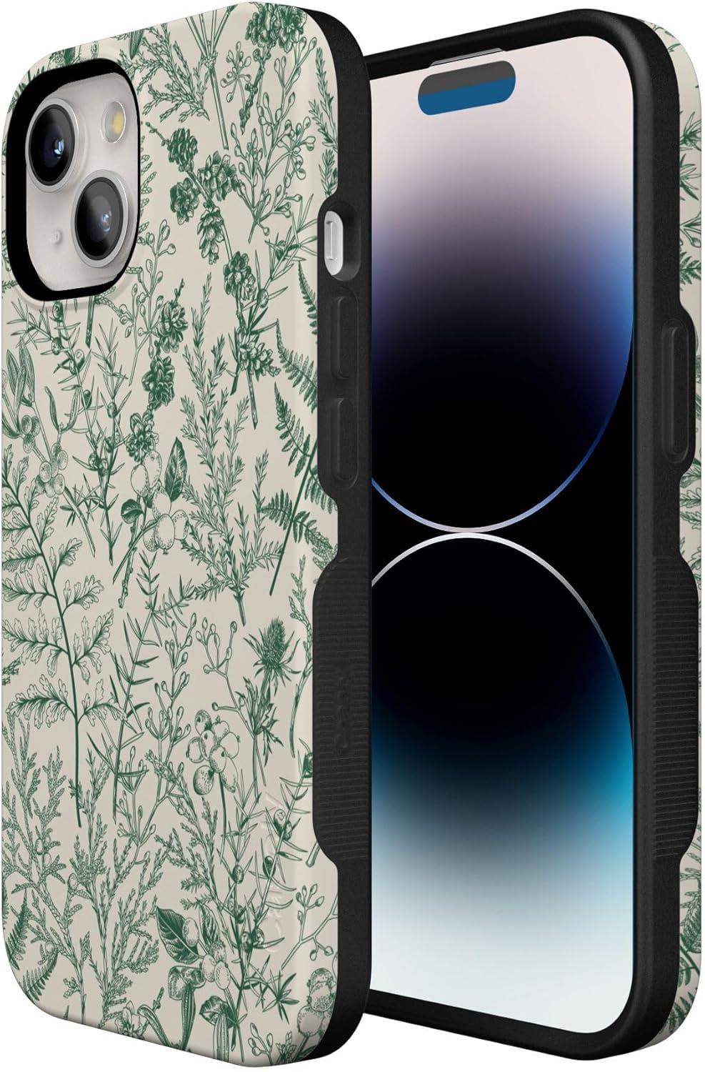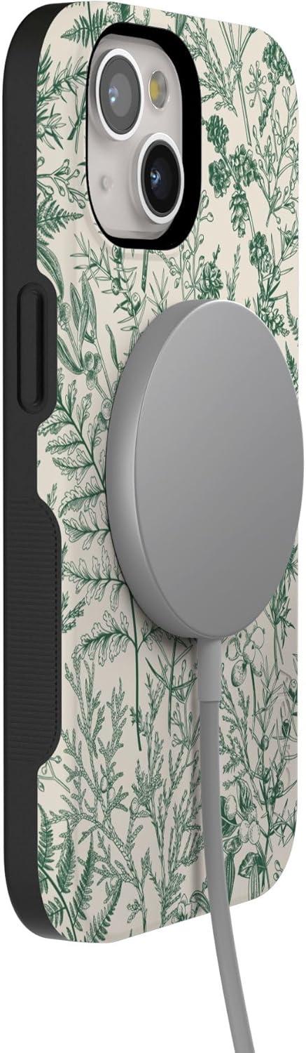 Casely iPhone 15 Case | Twilight Flora | Moody Monochrome | Bold Protective Design | Compatible with MagSafe(Sage Garden | Green Floral)