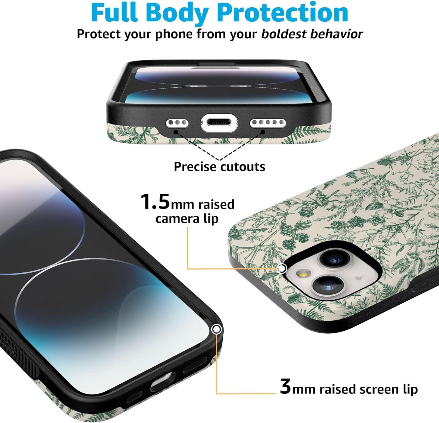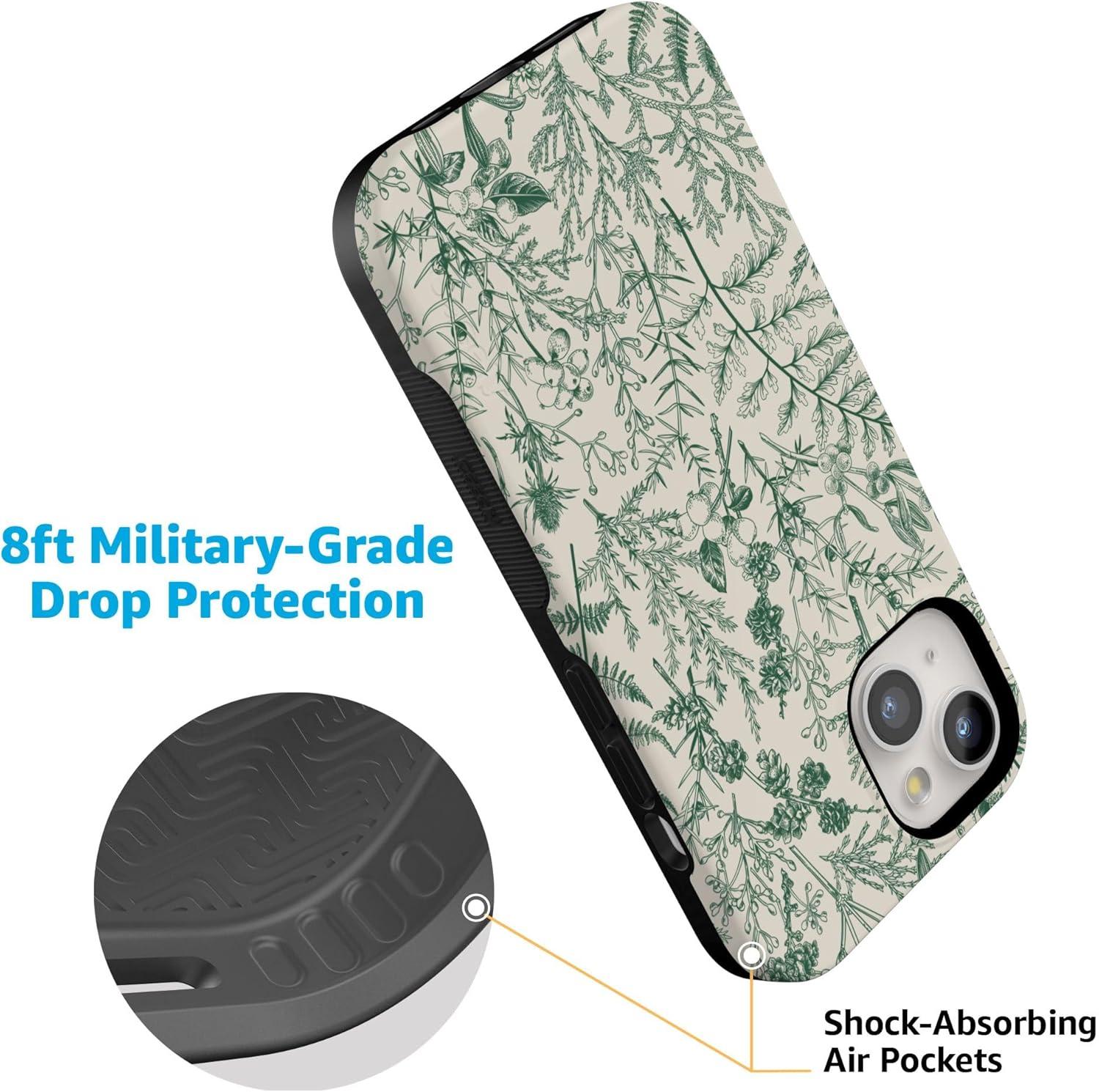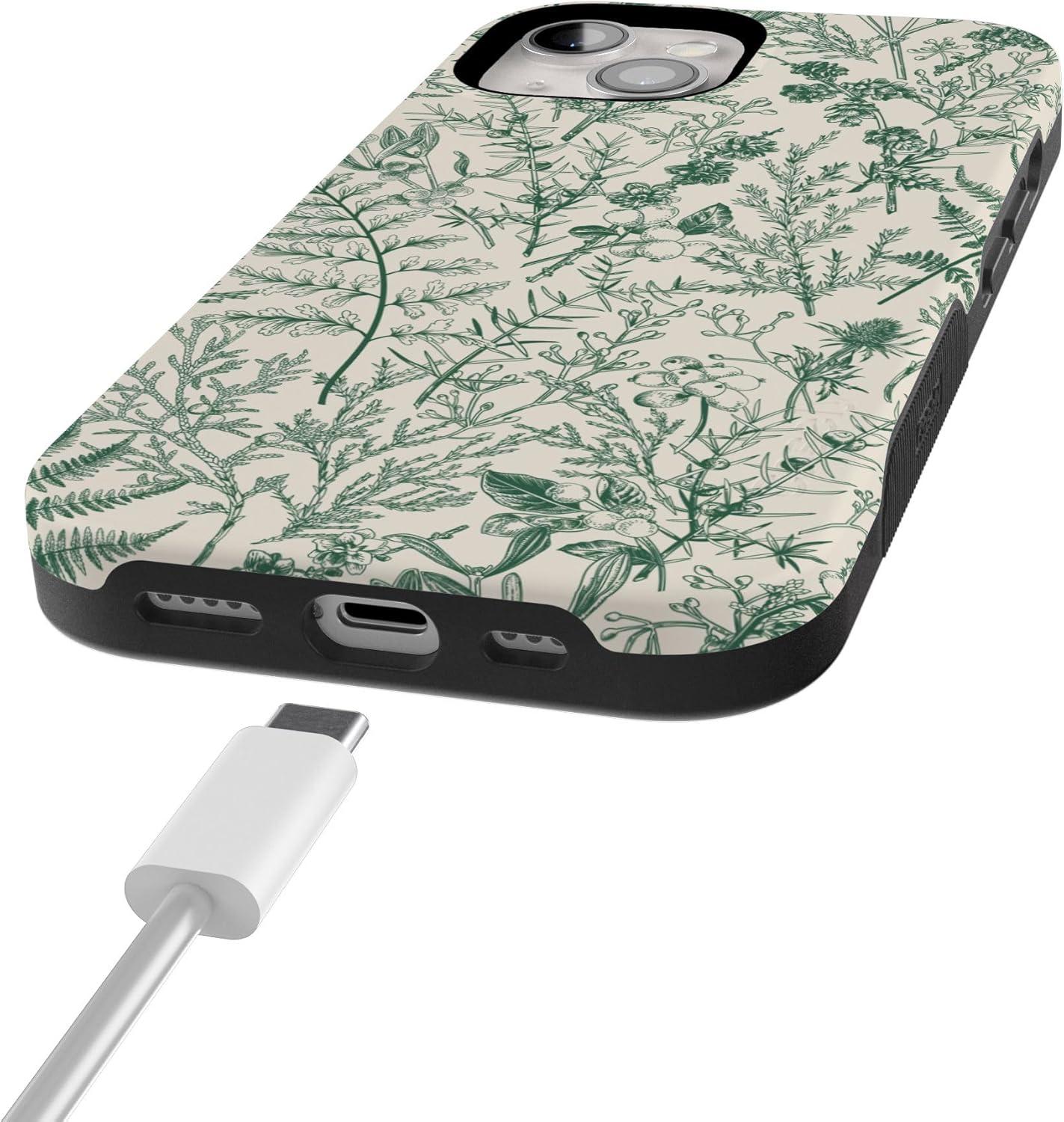 Casely iPhone 15 Case | Twilight Flora | Moody Monochrome | Bold Protective Design | Compatible with MagSafe(Sage Garden | Green Floral)