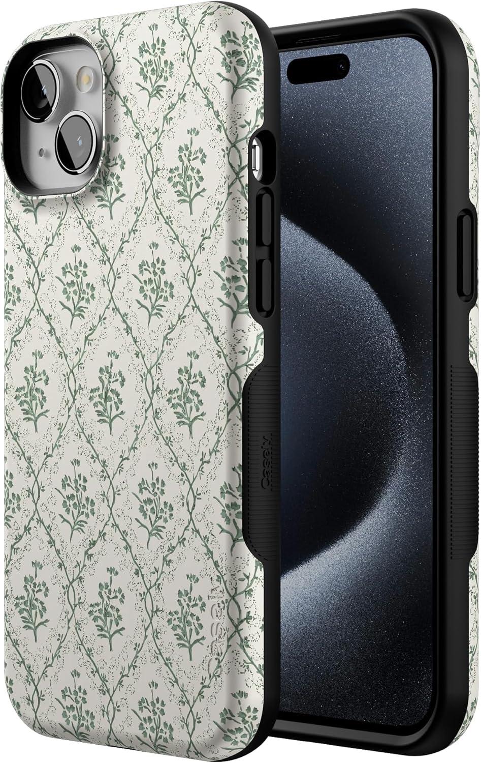 Casely iPhone 15 Case | Twilight Flora | Moody Monochrome | Bold Protective Design | Compatible with MagSafe(Sage Tapestry | Floral Vines)