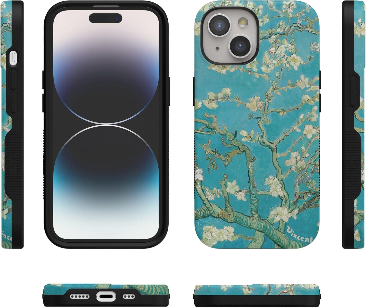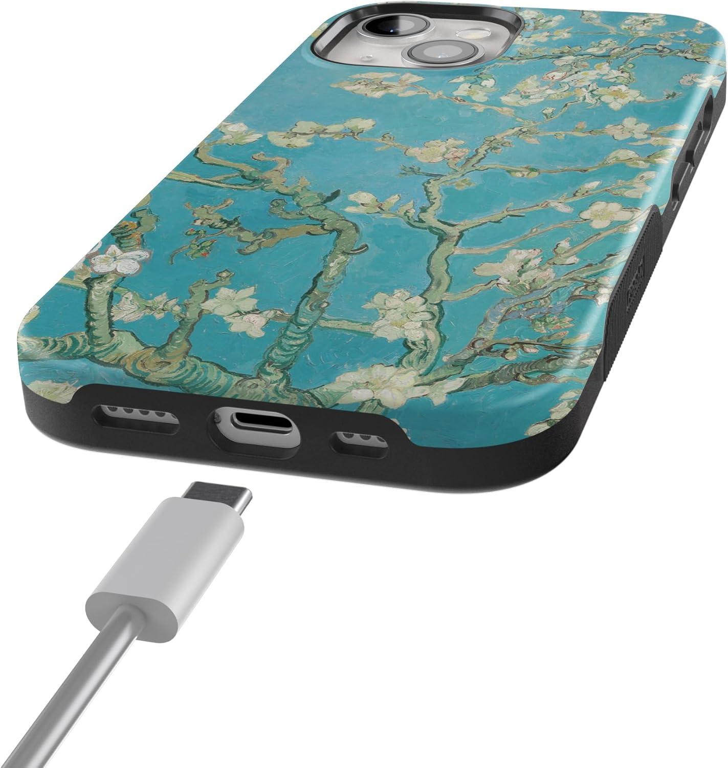 Casely iPhone 15 Case | Twilight Flora | Moody Monochrome | Bold Protective Design | Compatible with MagSafe(Van Gogh | Almond Blossom Floral)