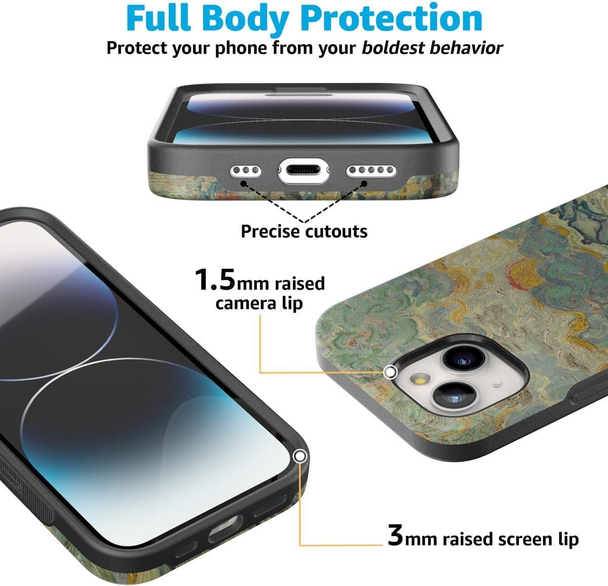 Casely iPhone 15 Case | Twilight Flora | Moody Monochrome | Bold Protective Design | Compatible with MagSafe(Van Gogh | Reminiscence of Vincent)