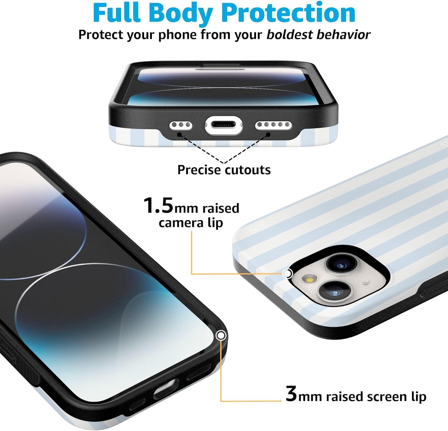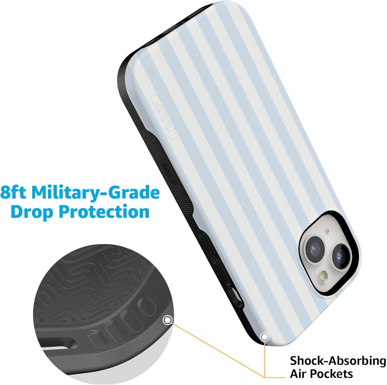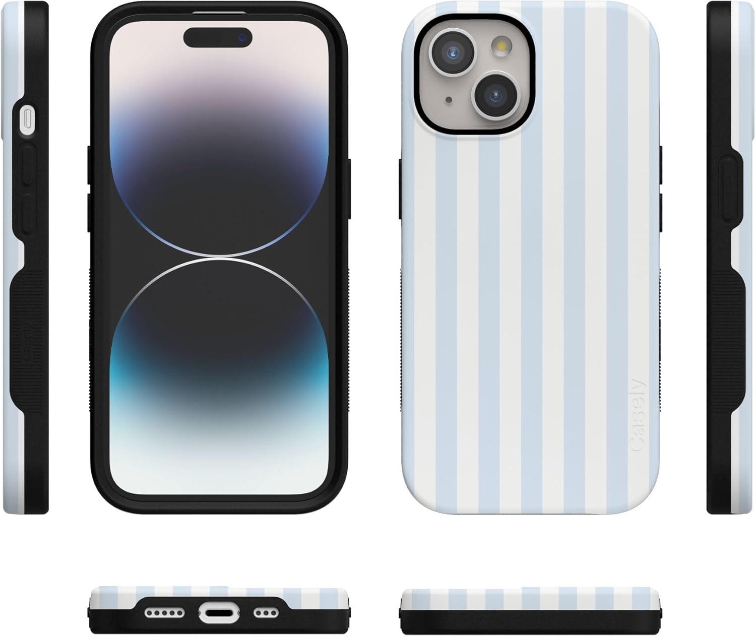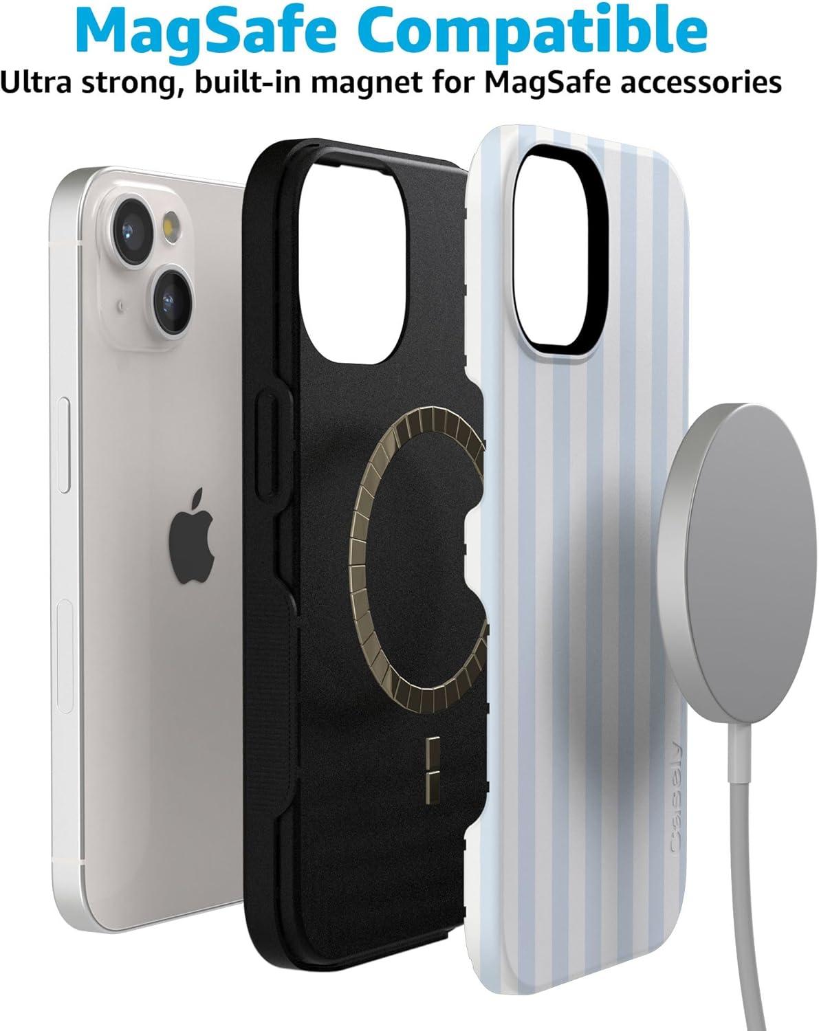 Casely iPhone 15 Plus Case | All The Fun Things | Fun on Weekdays | Bold Protective Design | Compatible with MagSafe(Blue Stripes | Sunday Best)