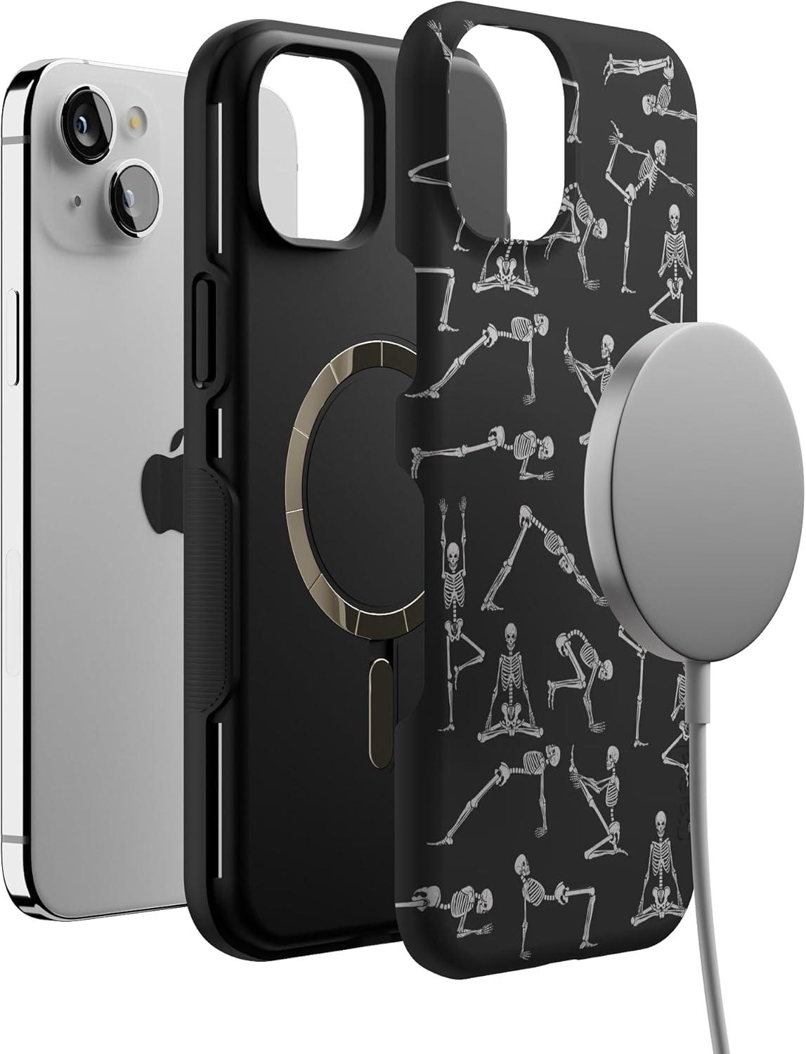 Casely iPhone 15 Plus Case | All The Fun Things | Fun on Weekdays | Bold Protective Design | Compatible with MagSafe(Corpse Pose | Skeleton Yoga)