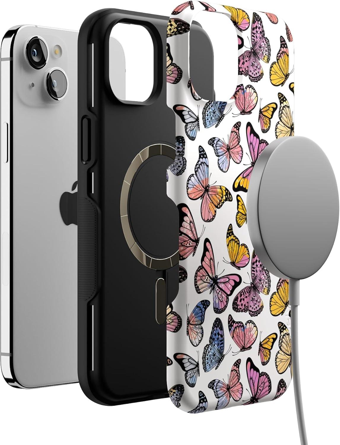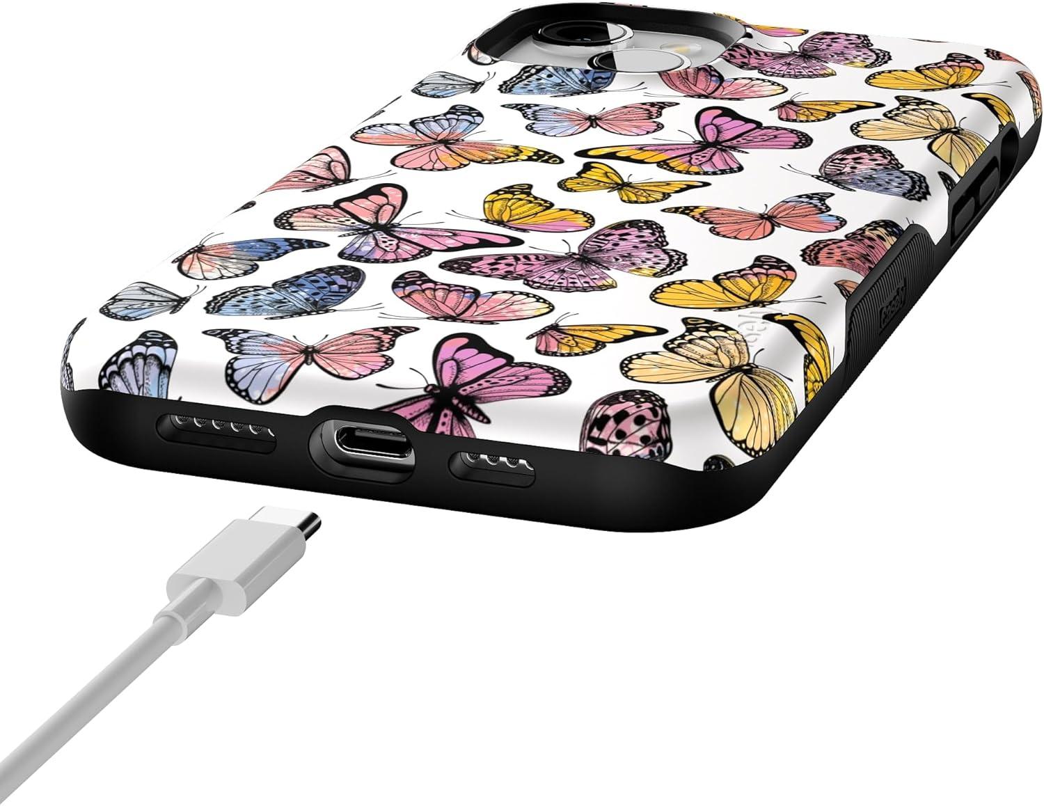 Casely iPhone 15 Plus Case | All The Fun Things | Fun on Weekdays | Bold Protective Design | Compatible with MagSafe(Free Spirit | Rainbow Butterfly)