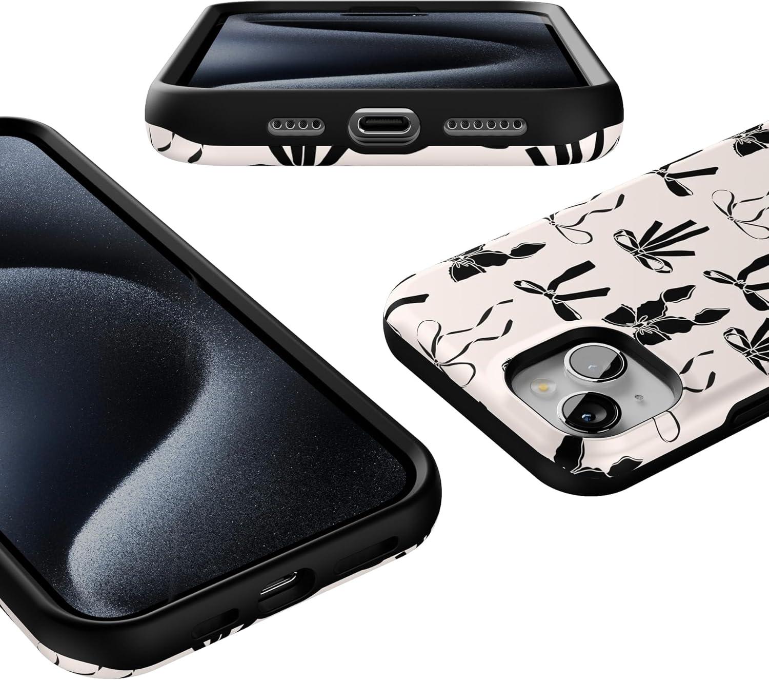 Casely iPhone 15 Plus Case | All The Fun Things | Fun on Weekdays | Bold Protective Design | Compatible with MagSafe(Goth Girlie | Black Bows)