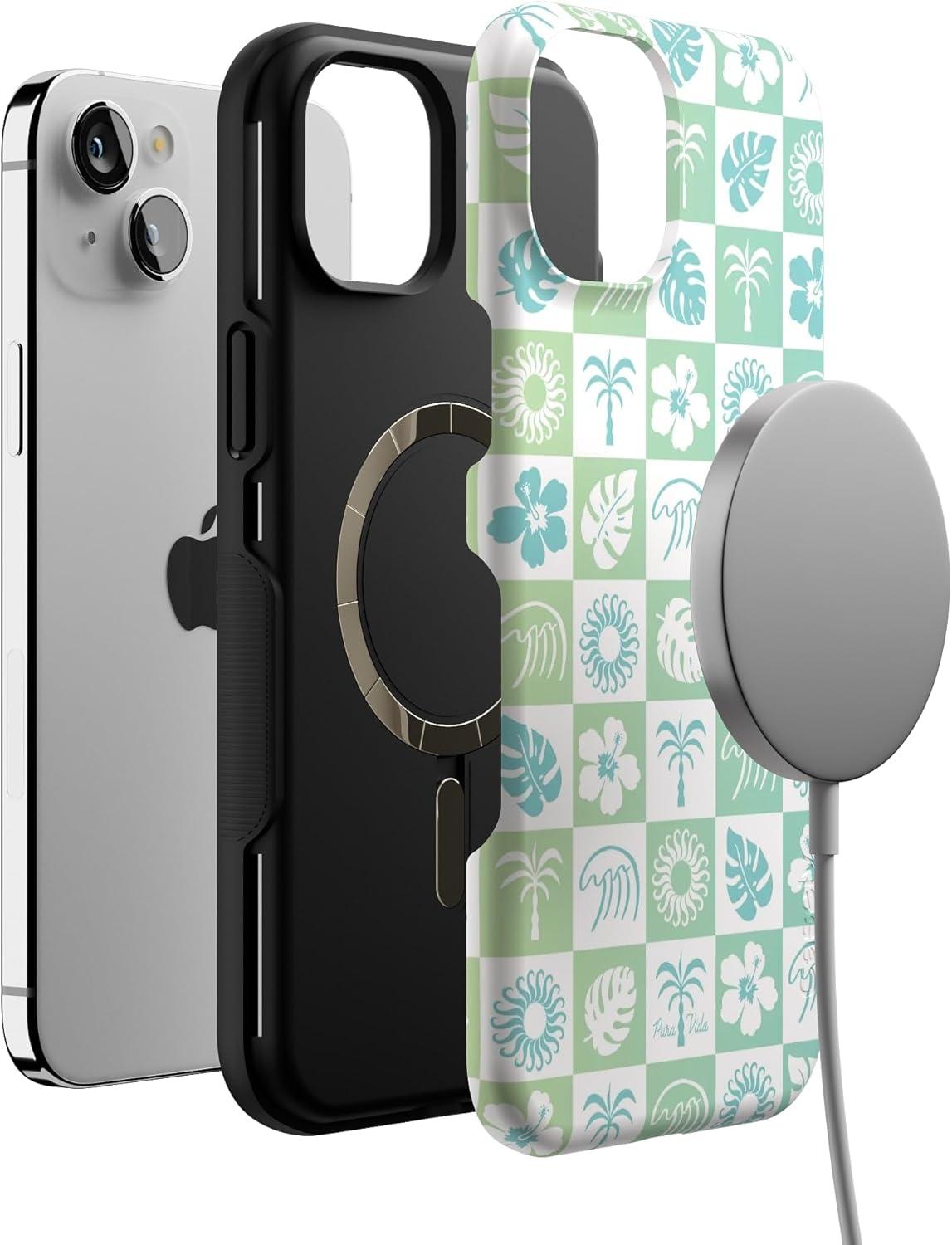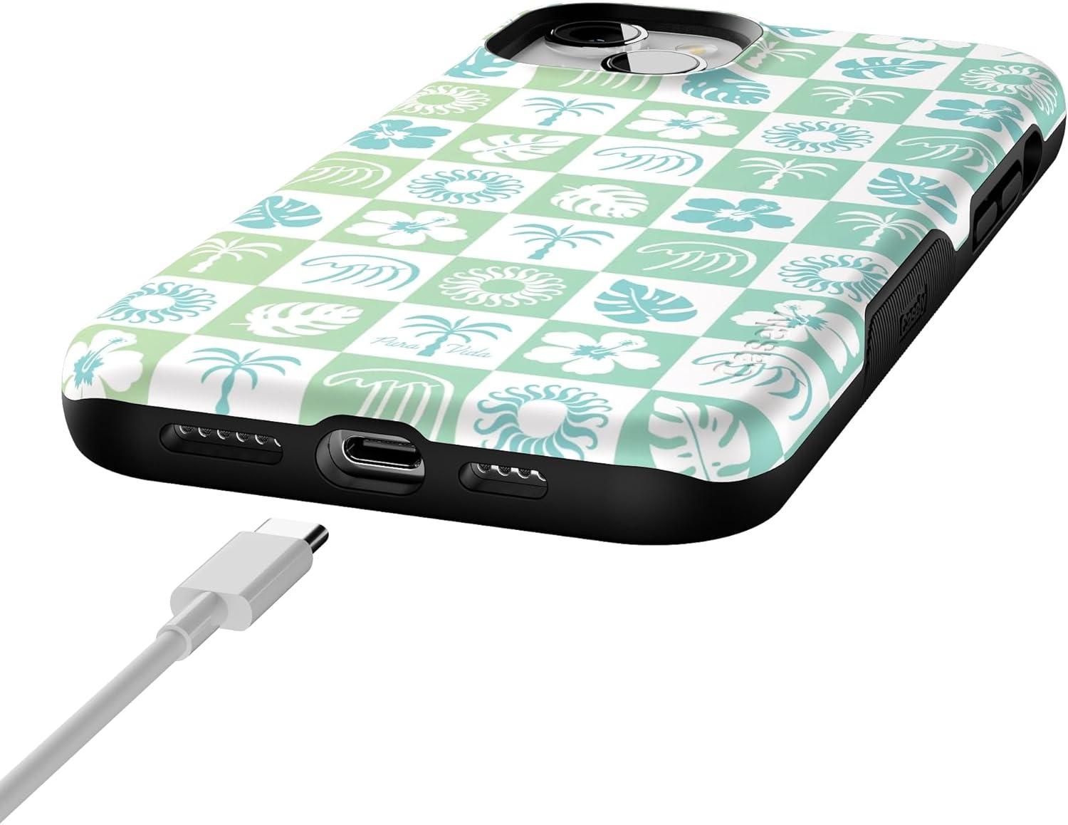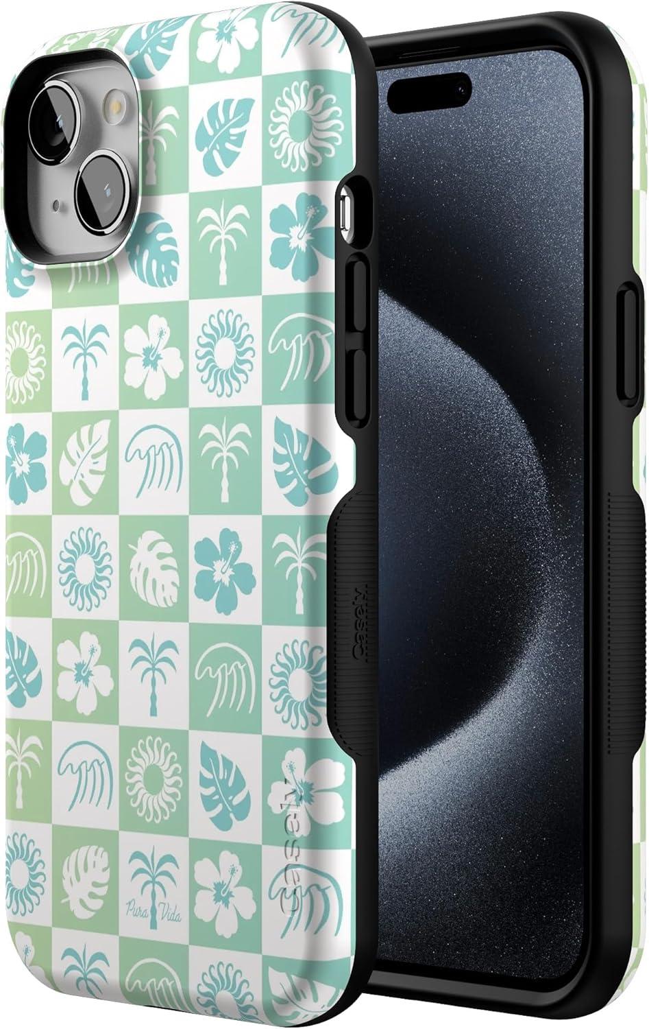 Casely iPhone 15 Plus Case | All The Fun Things | Fun on Weekdays | Bold Protective Design | Compatible with MagSafe(Pura Vida | Coastal Checkers)