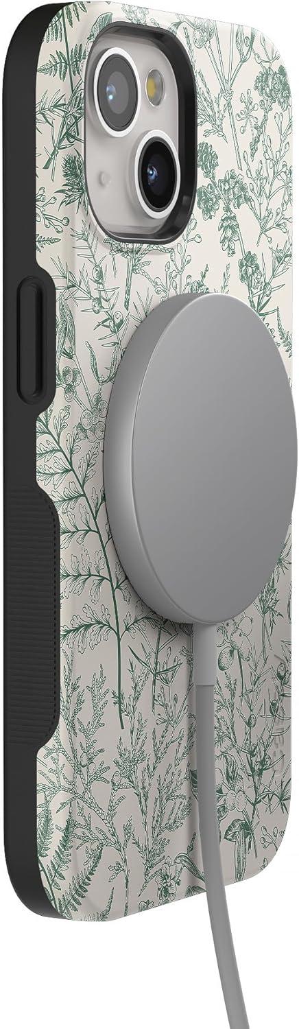 Casely iPhone 15 Plus Case | All The Fun Things | Fun on Weekdays | Bold Protective Design | Compatible with MagSafe(Sage Garden | Green Floral Case)