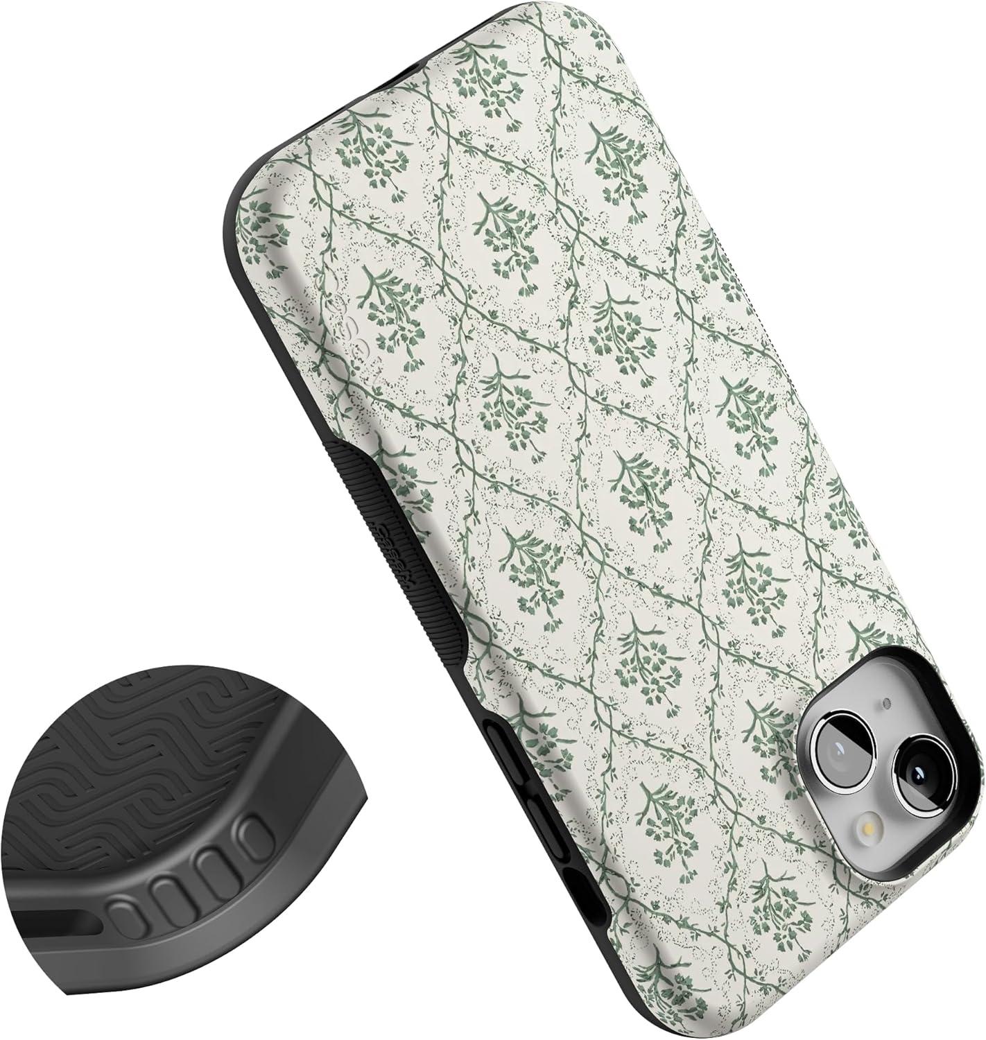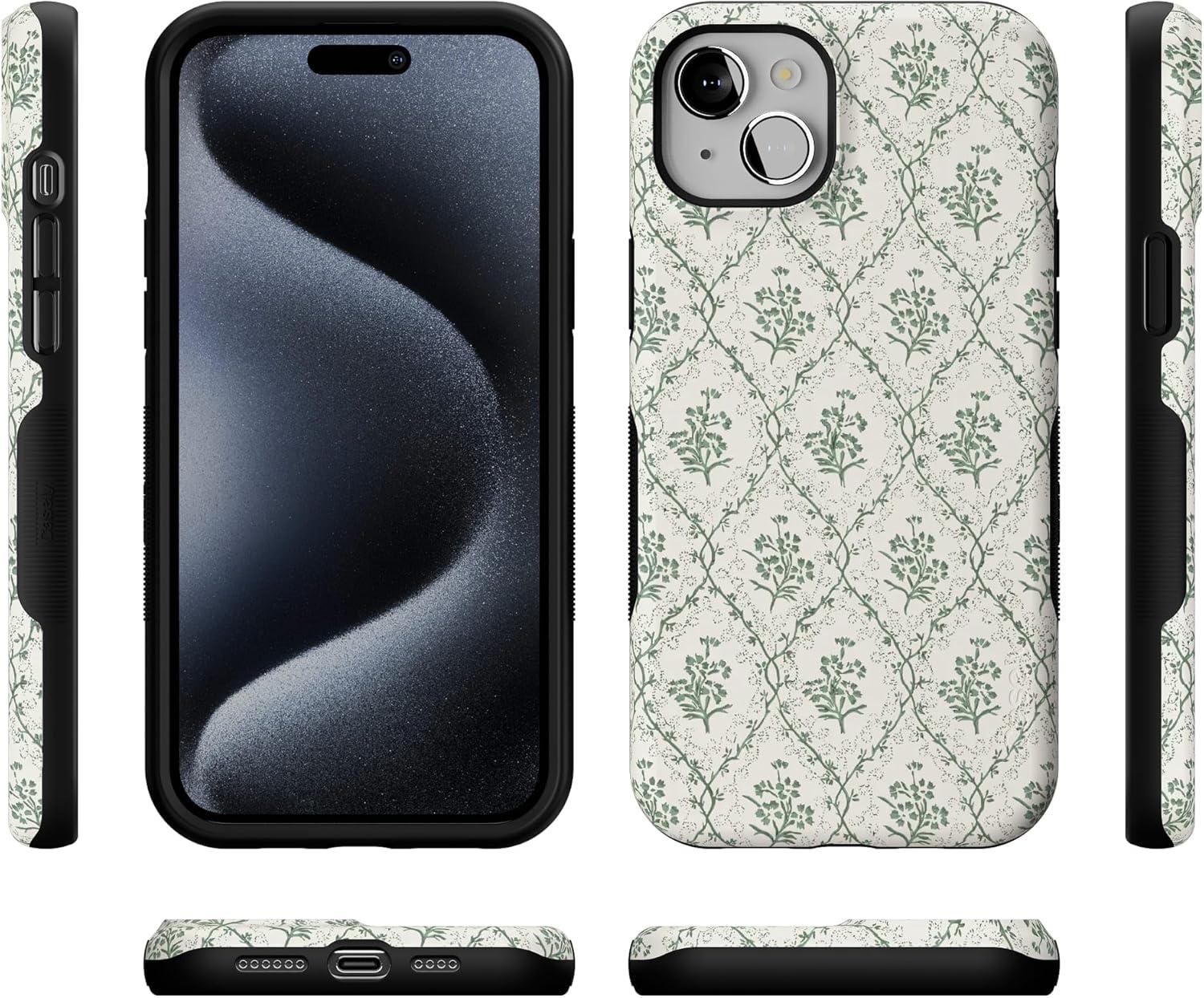 Casely iPhone 15 Plus Case | All The Fun Things | Fun on Weekdays | Bold Protective Design | Compatible with MagSafe(Sage Tapestry | Floral Vines)