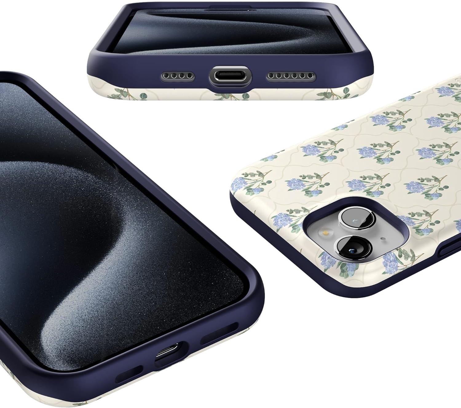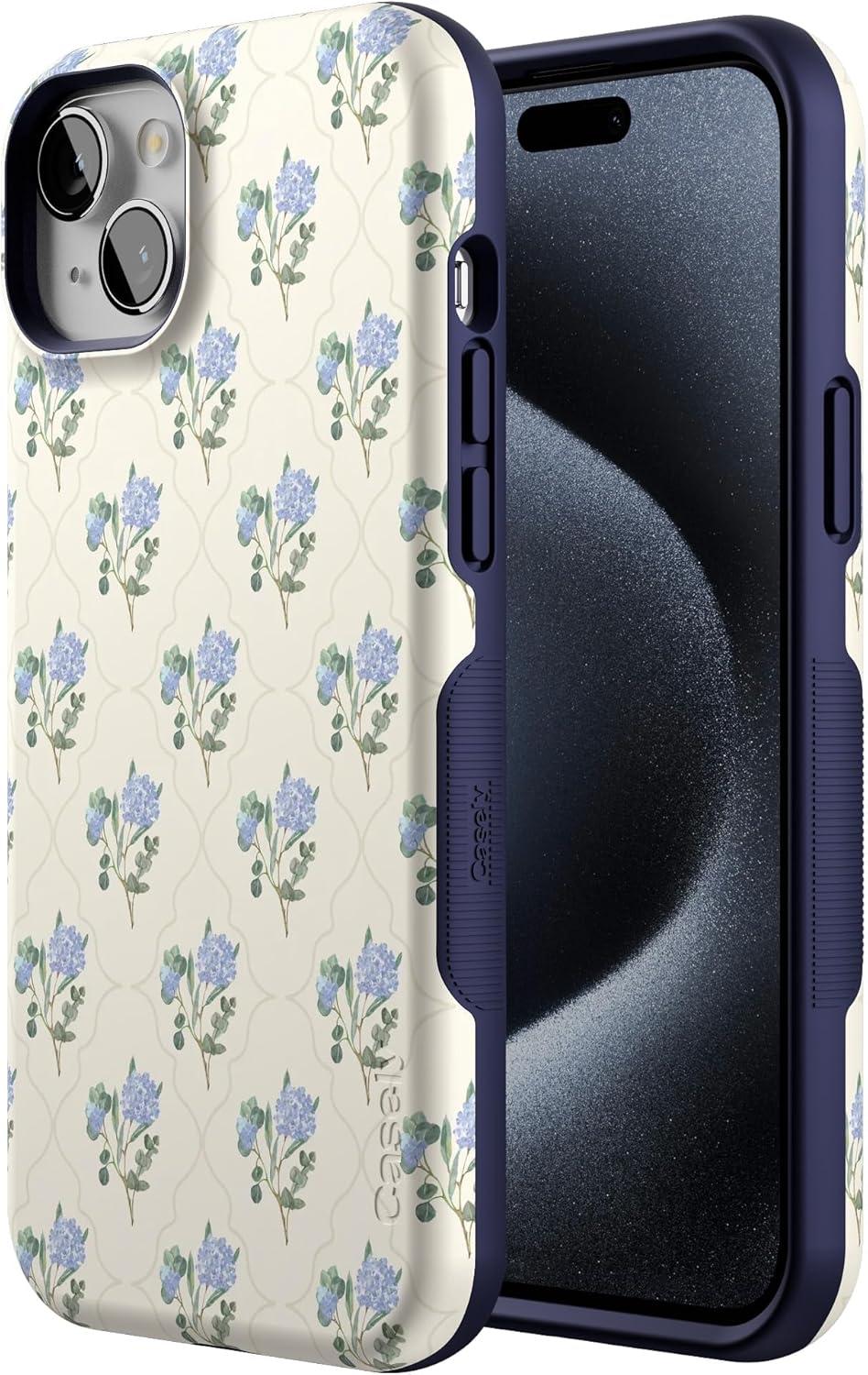 Casely iPhone 15 Plus Case | All The Fun Things | Fun on Weekdays | Bold Protective Design | Compatible with MagSafe(Vintage Garden | Blue Hydrangea)